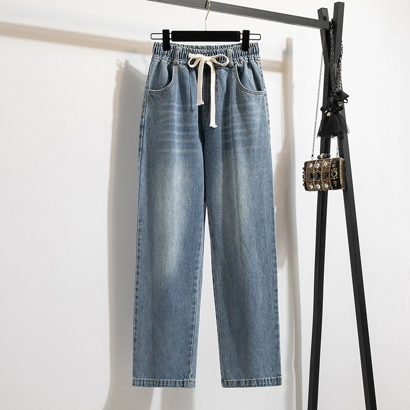 여성용 신축성 있는 허리 드로스트링 청바지 2025 여름 한국 패션 하이웨이스트 루즈한 살을 커버하고 슬리밍한 와이드 팬츠 제조업체스토어 가기