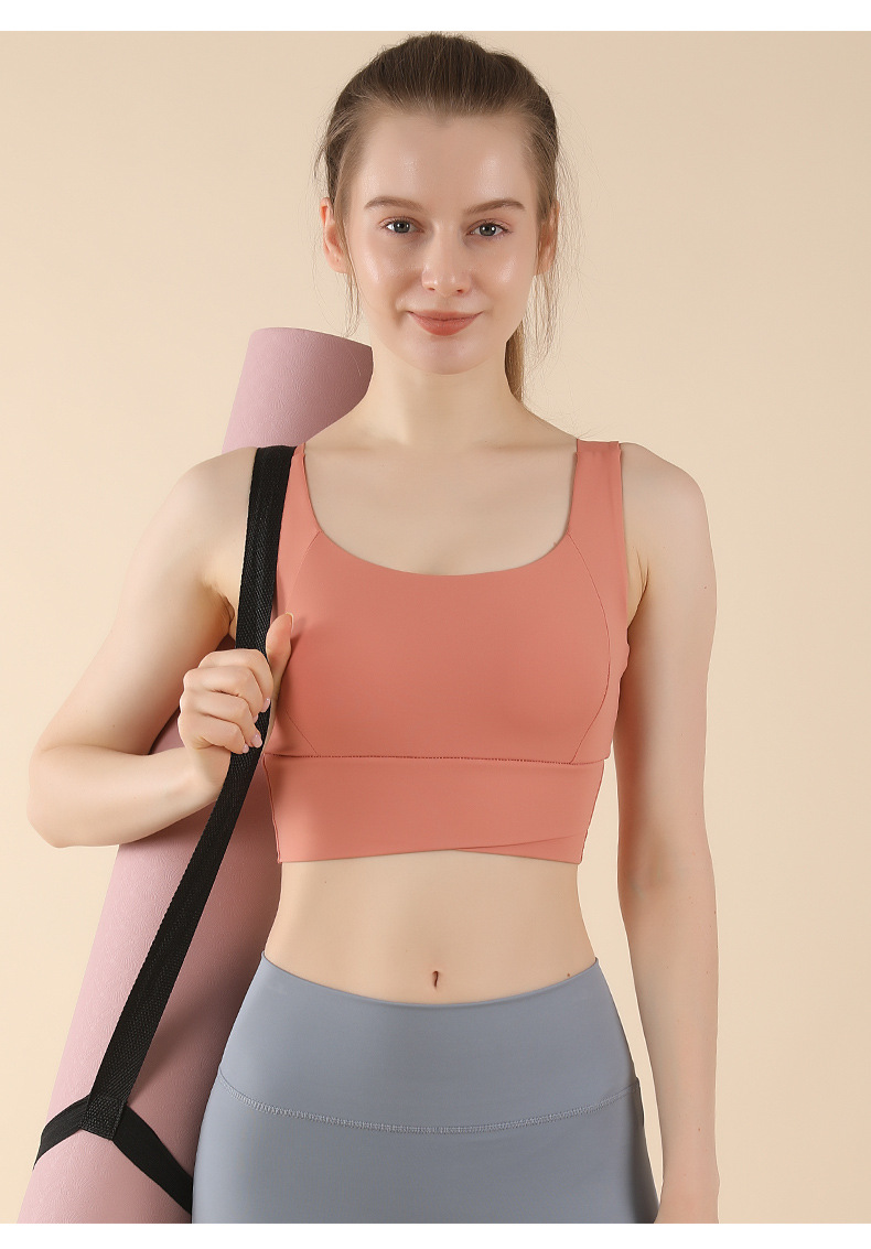 일체형 푸쉬업 충격 방지 스포츠 브라, 고강도 요가 피트니스 백 브라, 통기성이 좋고 편안하며 슬리밍 조끼