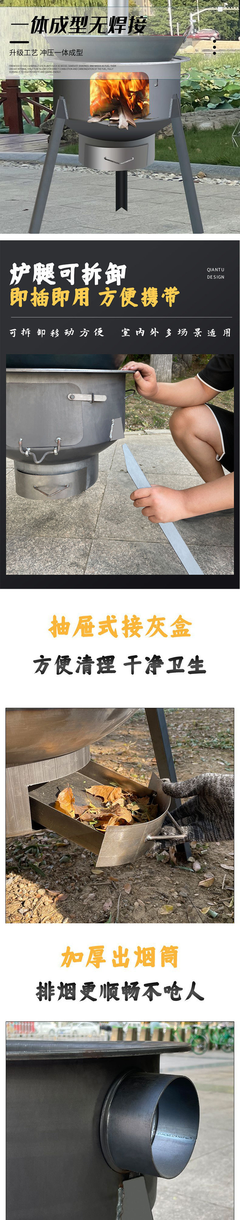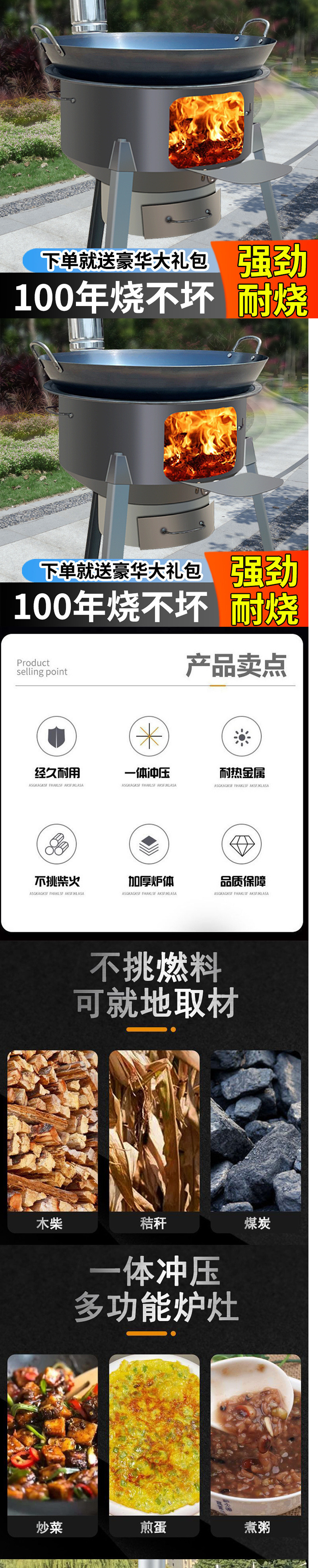 대형 신형 장작 난로, 농촌 가정용 장작, 야외 휴대용 바닥 냄비, 일체형 장작 난로, 이동식