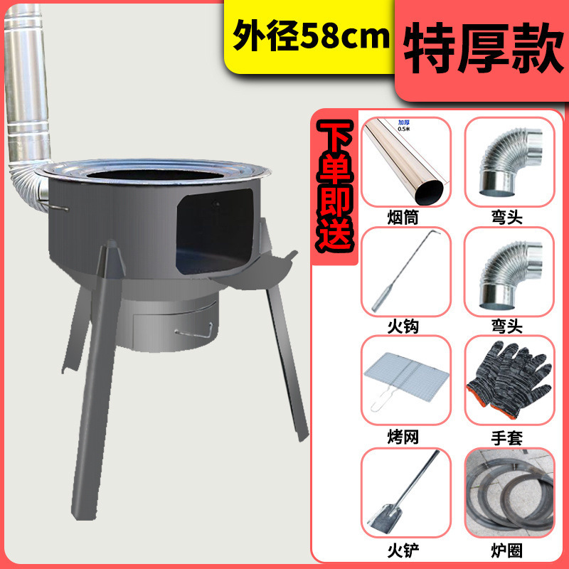 • [Yuanong Huichao 매장] 초대형 두꺼운 강판 스토브 - 내구성이 뛰어나고 타지 않음 - 외경 59cm, 두꺼운 [44-61 냄비에 적합]