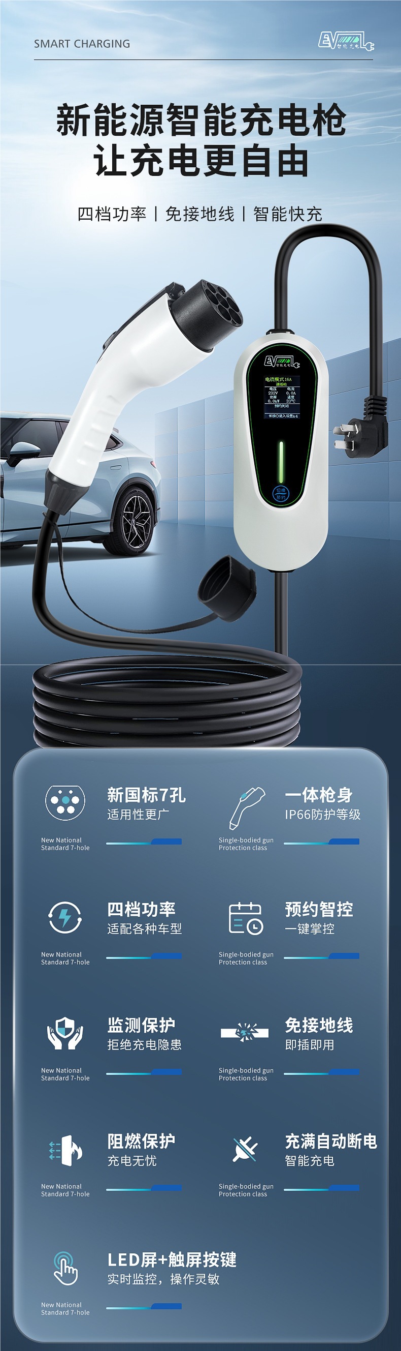 신에너지 전기 자동차 충전 건 라인 16A/32A 차량 탑재 휴대용 접지선 없는 범용 모델