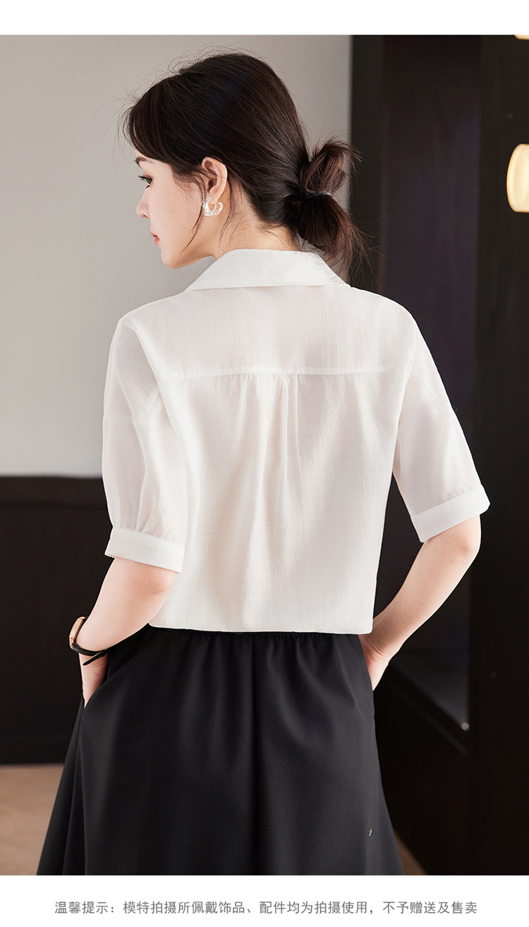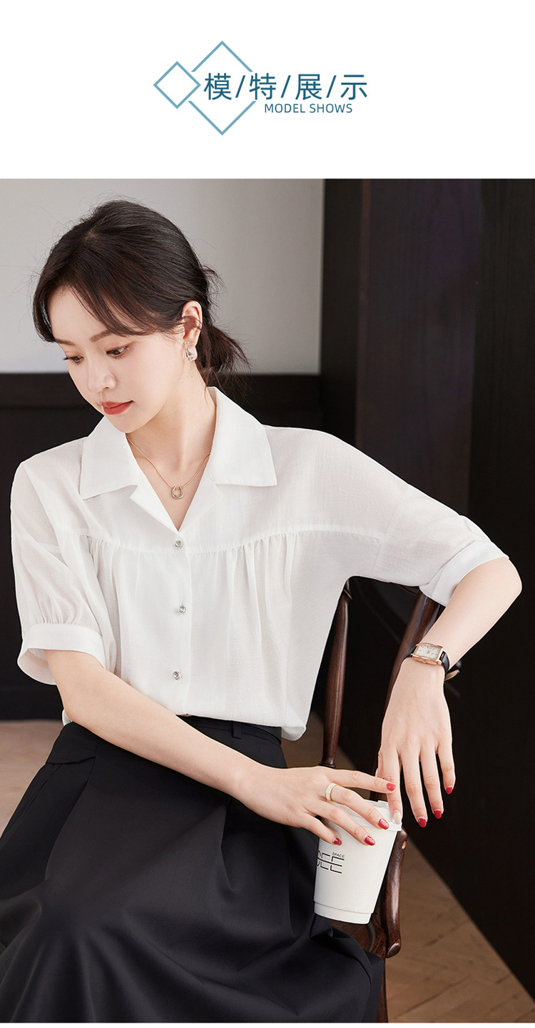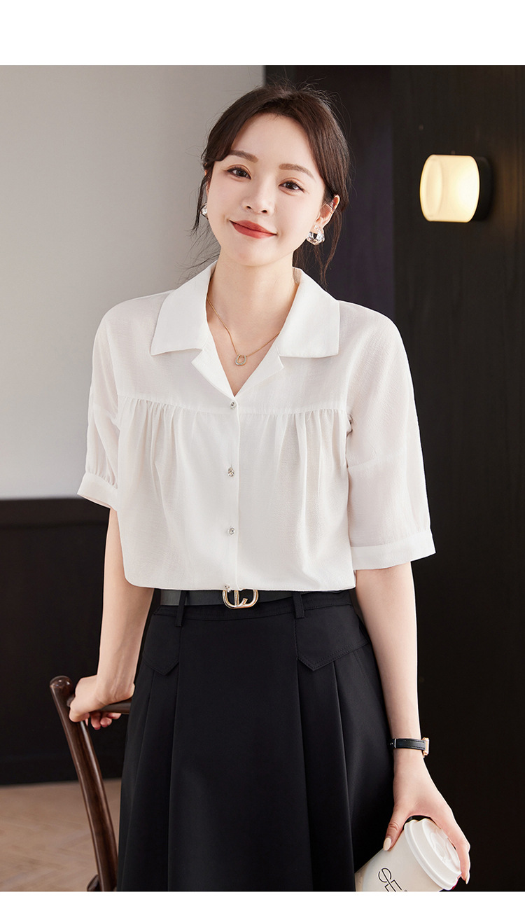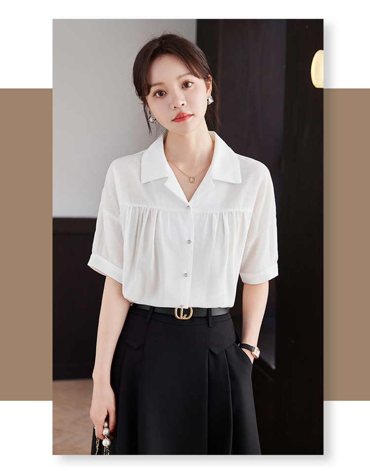 여성을위한 쉬폰 화이트 셔츠 여름 2024 새로운 하이 엔드 느슨한 슬림 셔츠 여름 반팔 얇은 탑