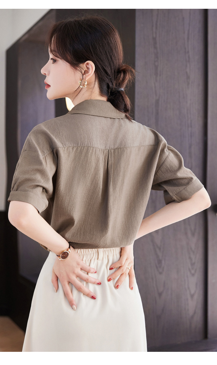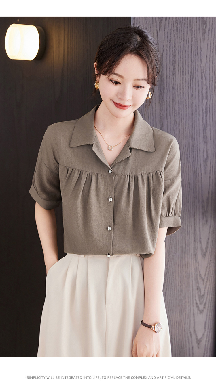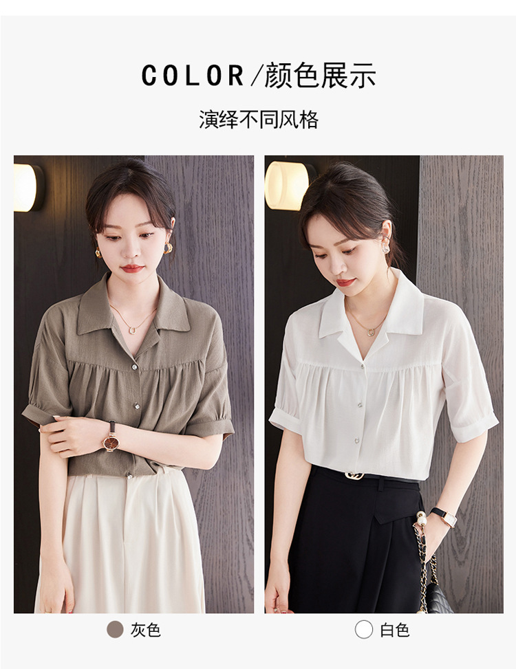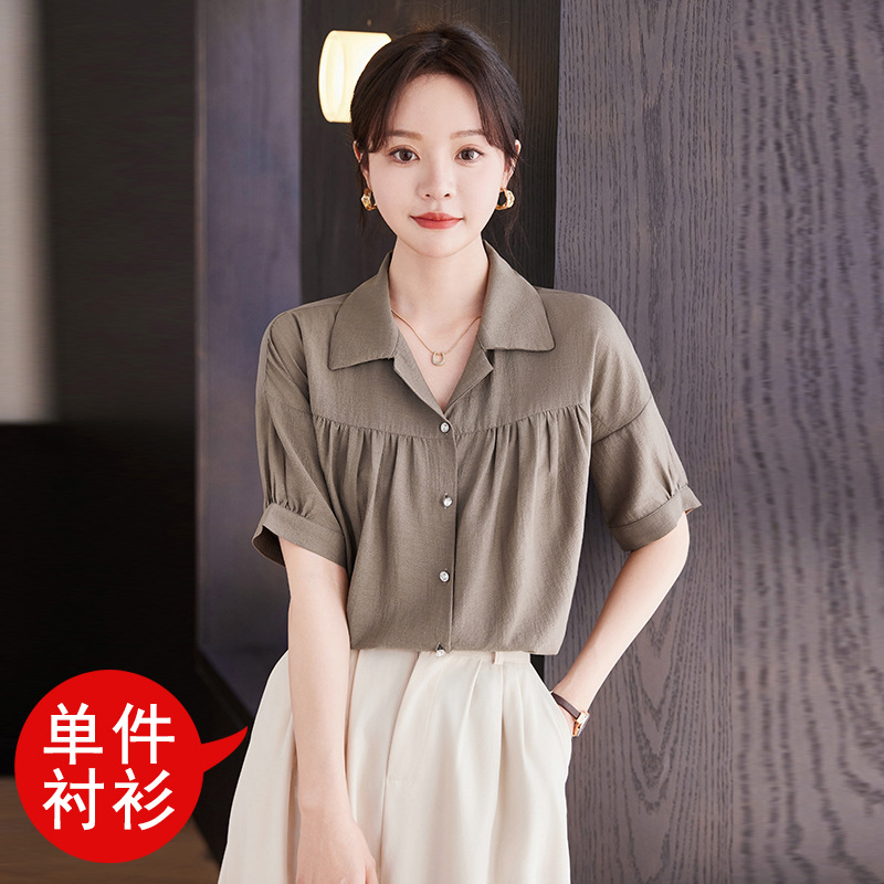 여성을위한 쉬폰 화이트 셔츠 여름 2024 새로운 하이 엔드 느슨한 슬림 셔츠 여름 반팔 얇은 탑