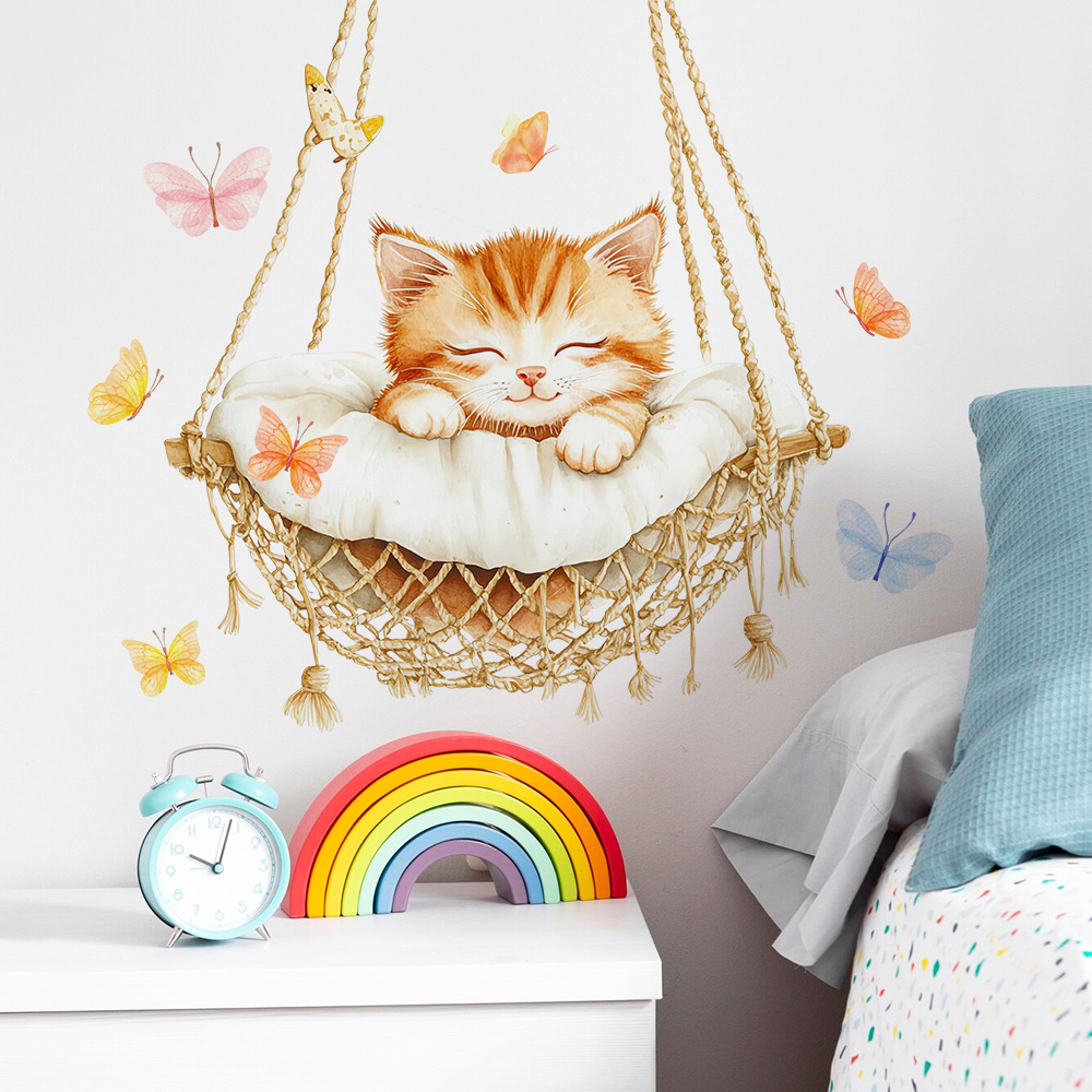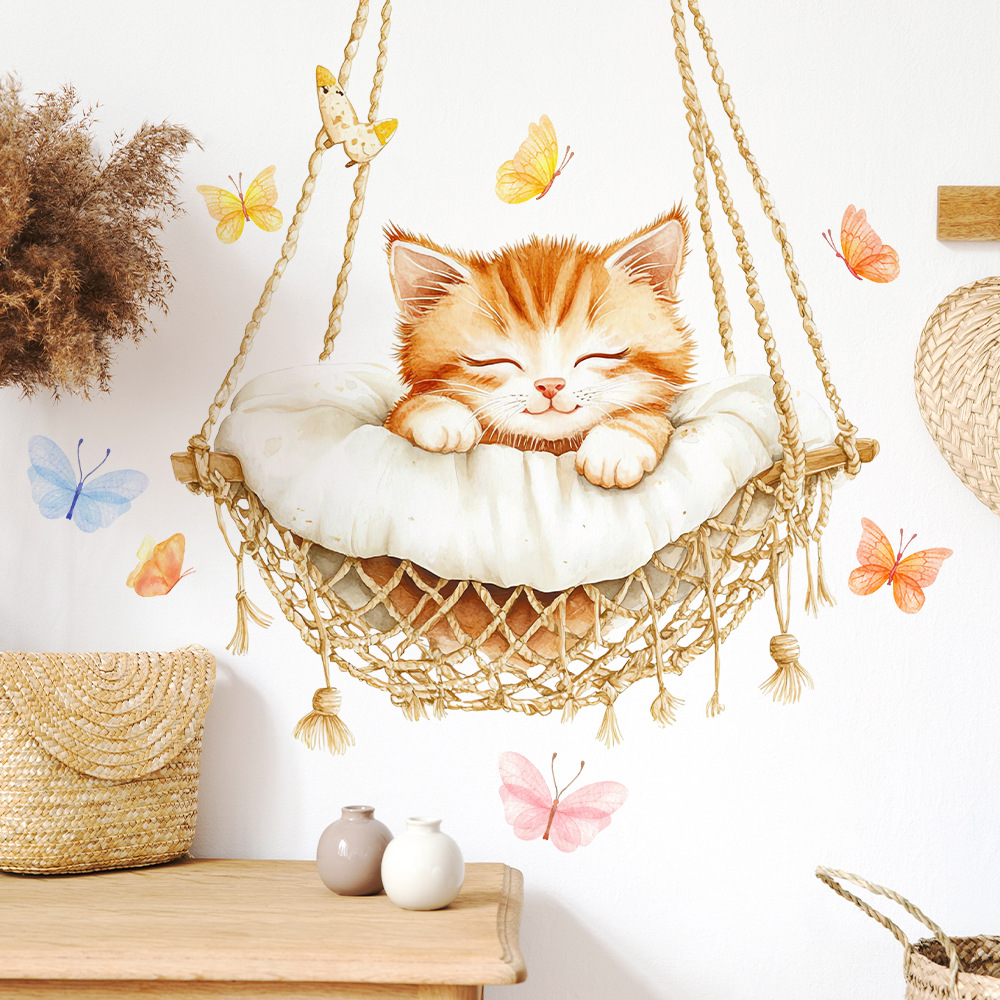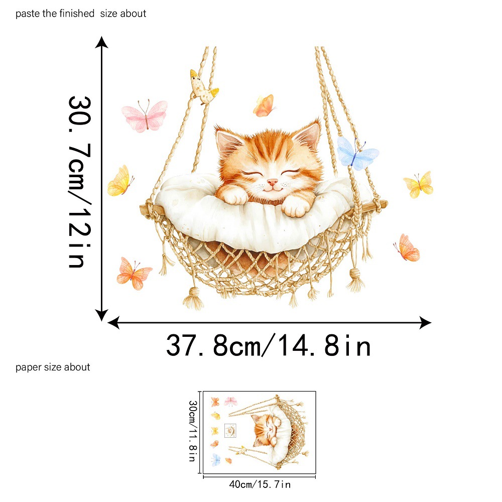 Yiyao DD34100 귀여운 새끼 고양이 수면 바구니 조합 장식 벽 스티커 방 레이아웃 미화 장식 자체 접착 스티커