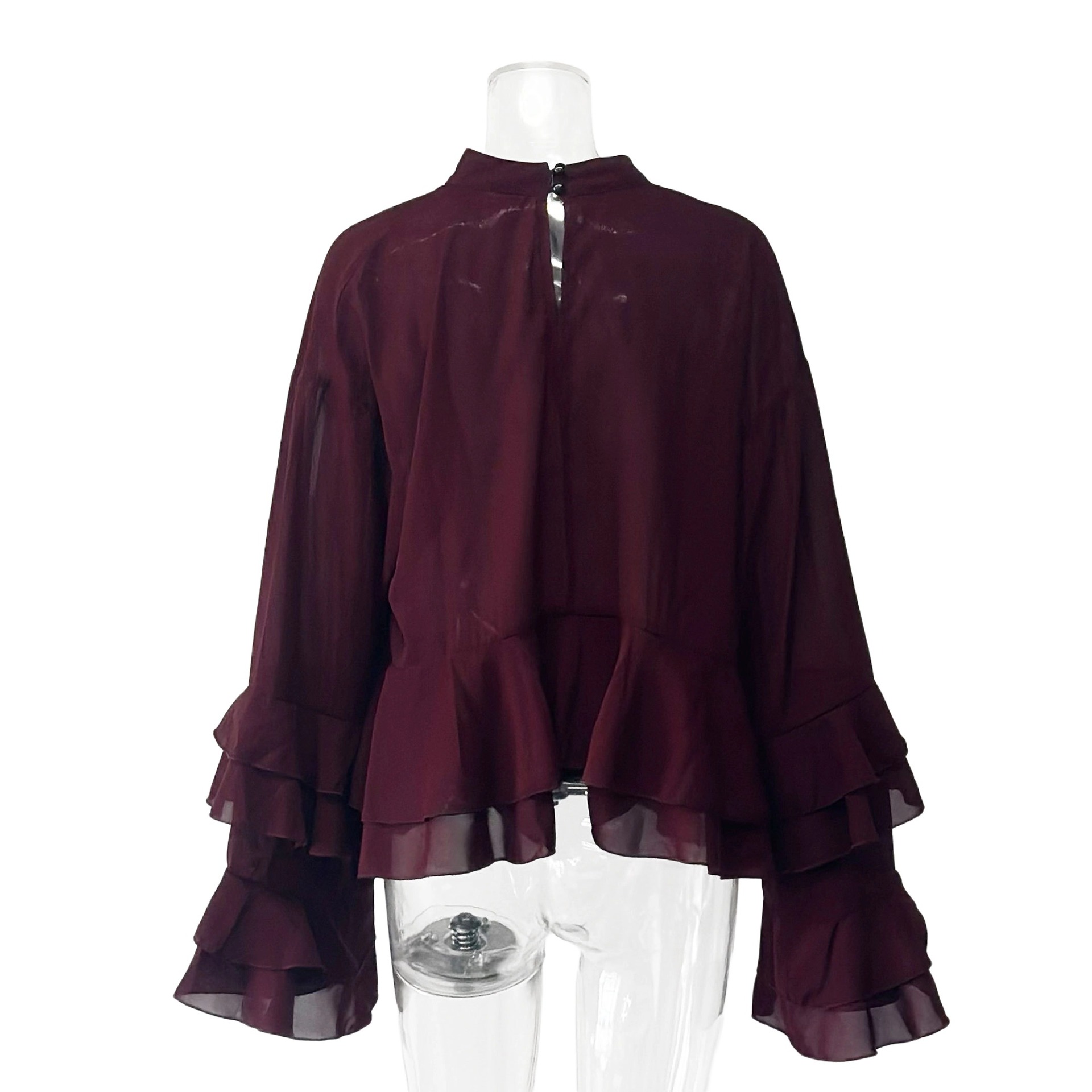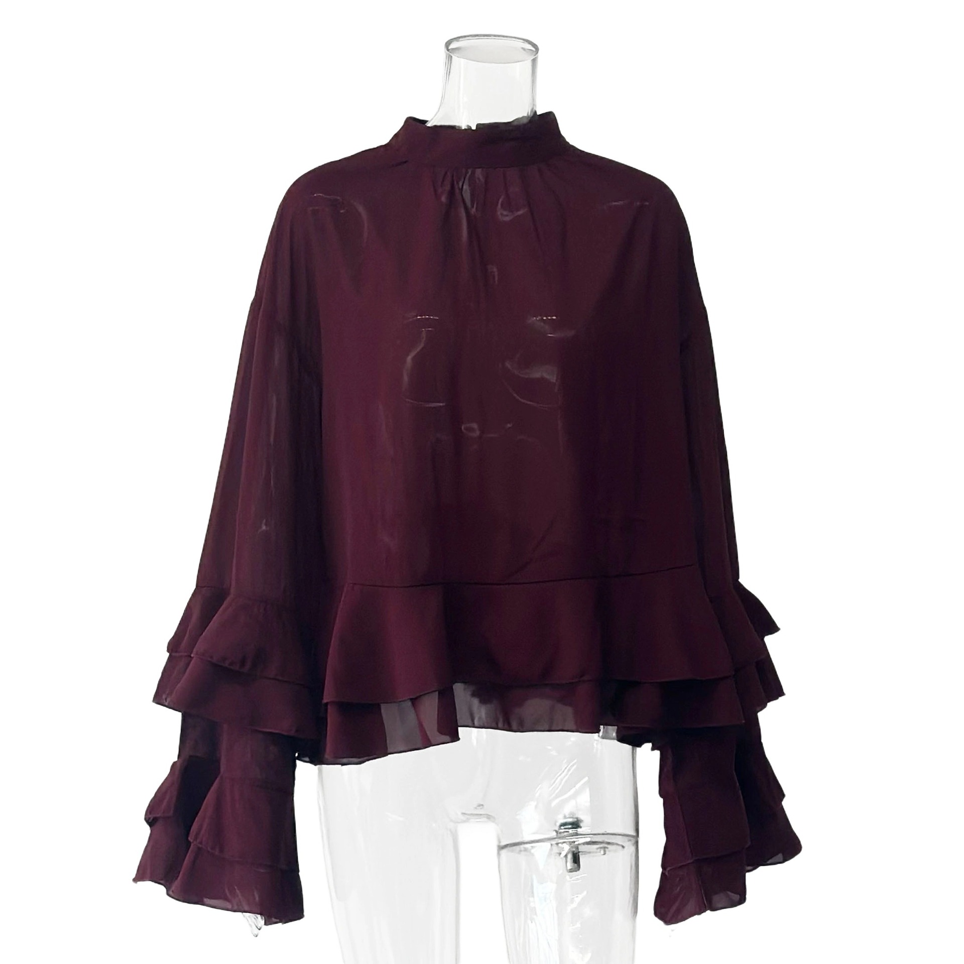 국경 간 유럽과 미국 2025 새로운 가을 여성 솔리드 컬러 쉬폰 탑 프릴 긴팔 레이어드 캐주얼 셔츠스토어 가기