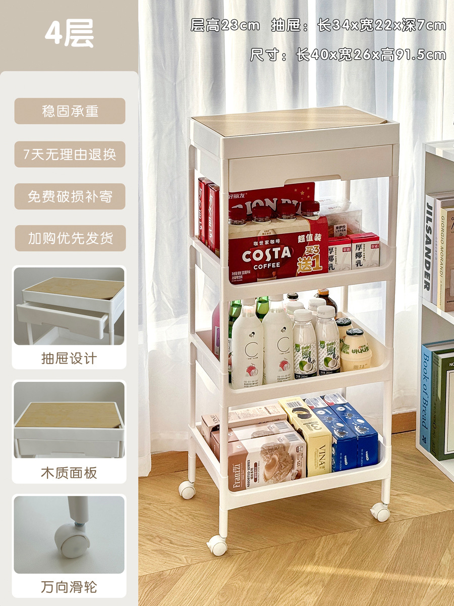 • [럭셔리 업그레이드 모델 - 냄새 없음] 원목 상판 카트 - 서랍 포함 4단