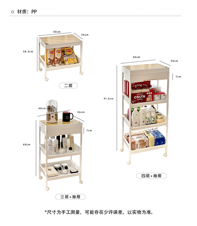 • [표준형 두꺼운 모델 - 냄새 없음] 나무 상판 카트 - 4겹