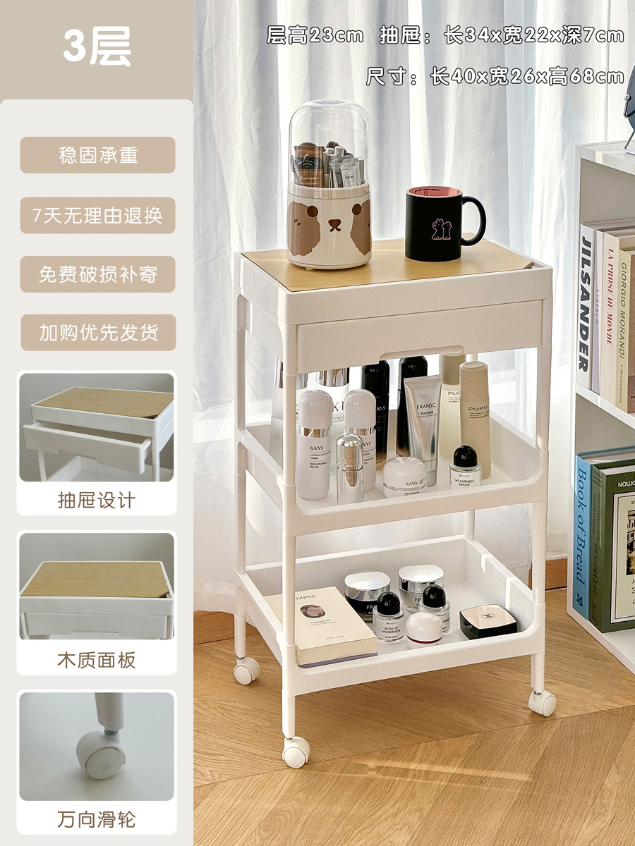 • [럭셔리 업그레이드 모델 - 냄새 없음] 원목 상판 카트 - 서랍 포함 3단