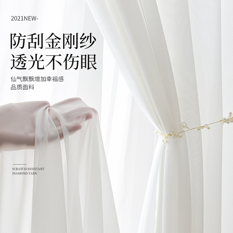 팬텀 거즈 다이아몬드 거즈 커튼 현대적인 긁힘 방지 완제품 거실 발코니 거즈 솔리드 컬러 화이트 거즈 커튼은 빛을 투과하지 않고 거즈를 투과하지 않습니다.