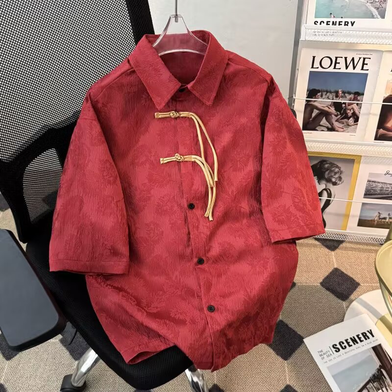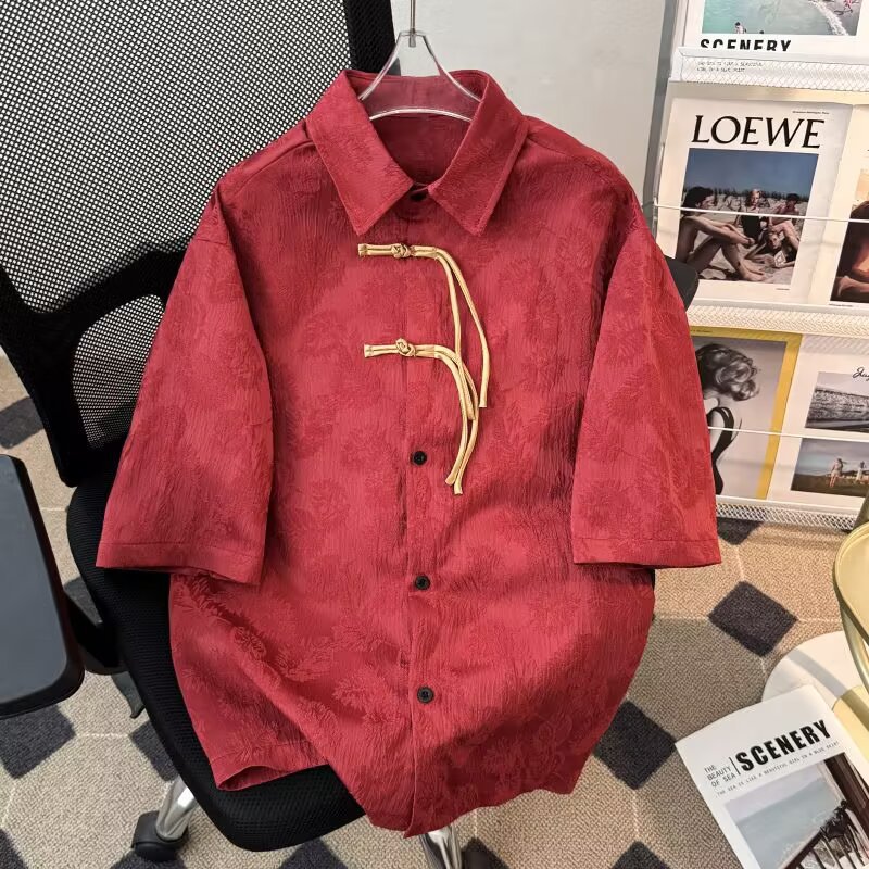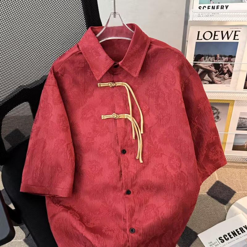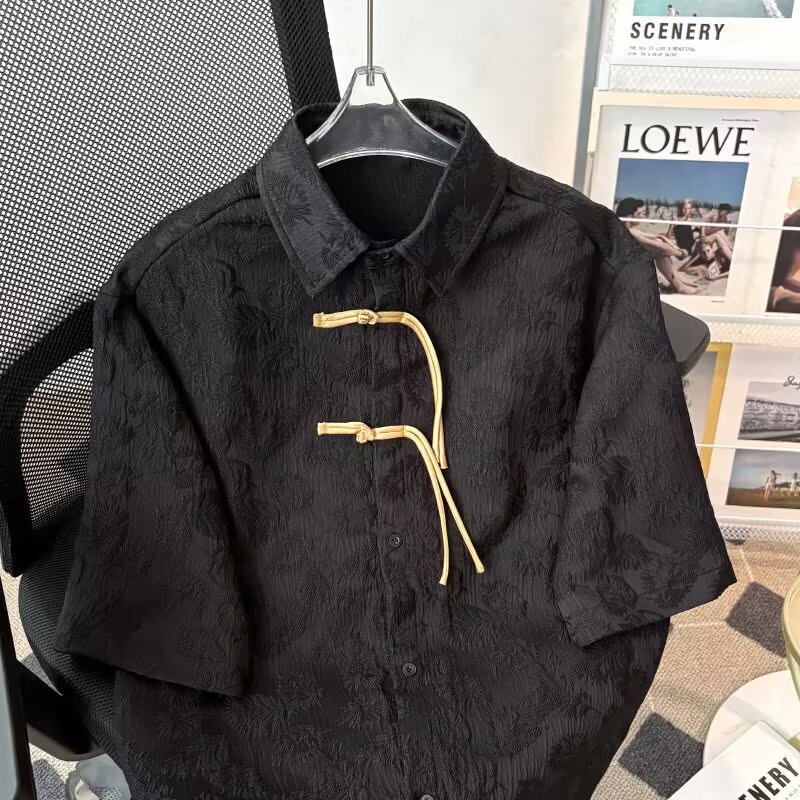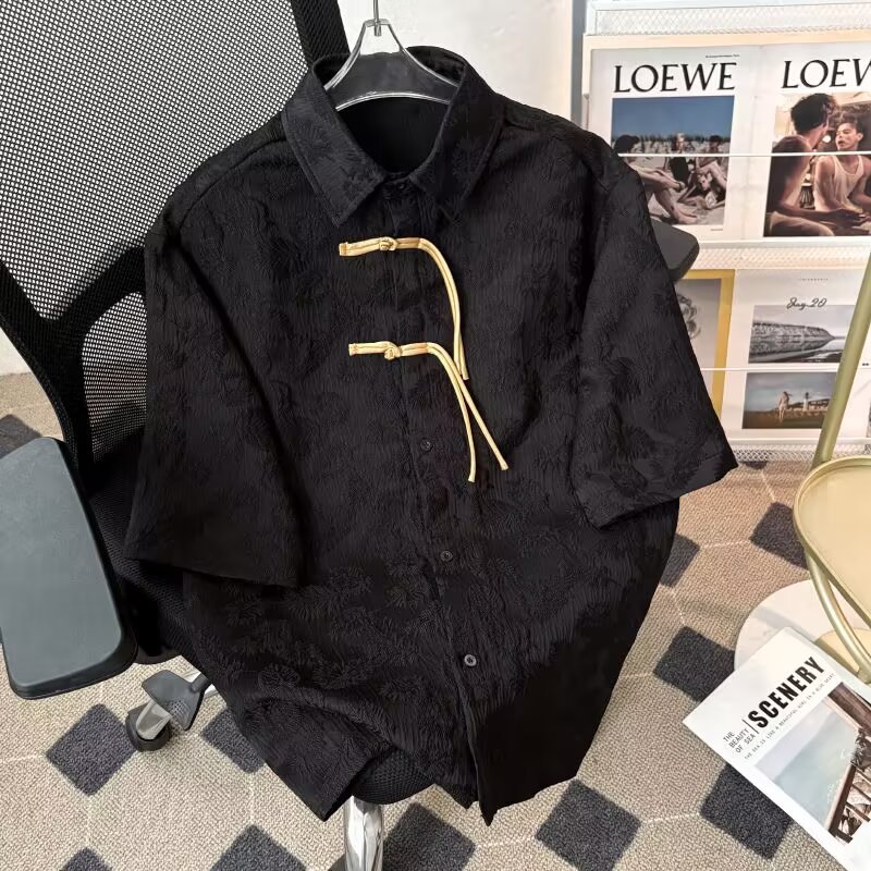중국 스타일 여름 새로운 자카드 반팔 버튼 셔츠 남성용 루즈한 디자인 트렌디한 다용도 셔츠 크로스보더스토어 가기