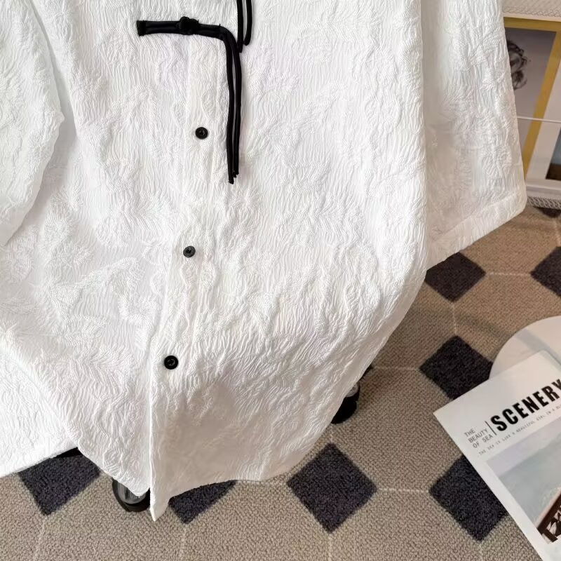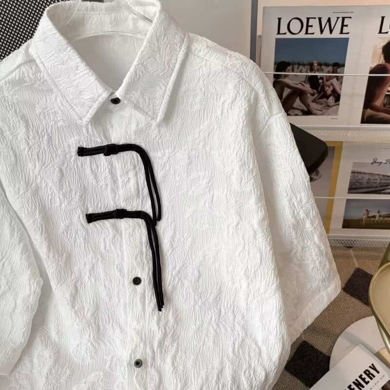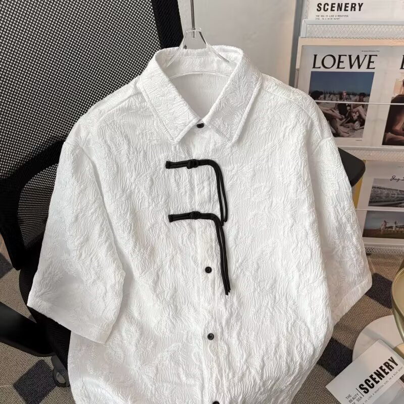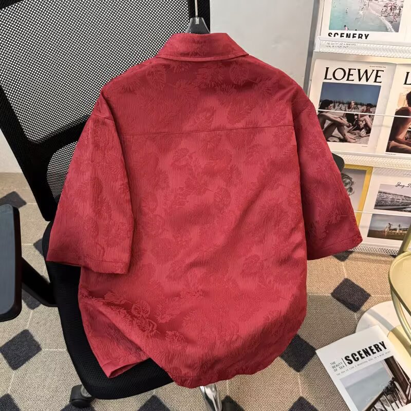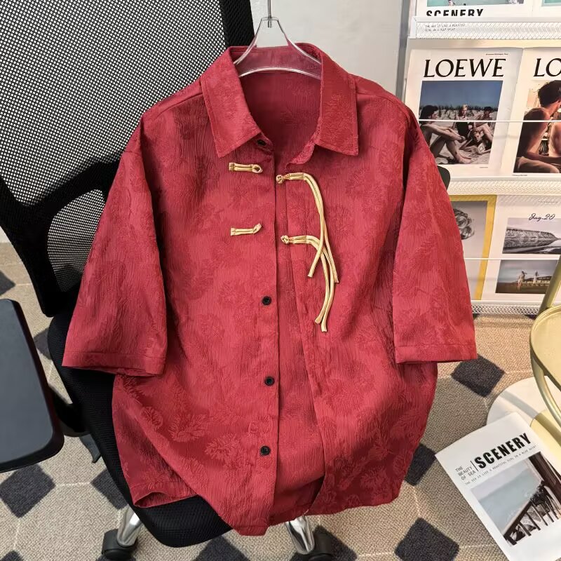 중국 스타일 여름 새로운 자카드 반팔 버튼 셔츠 남성용 루즈한 디자인 트렌디한 다용도 셔츠 크로스보더스토어 가기