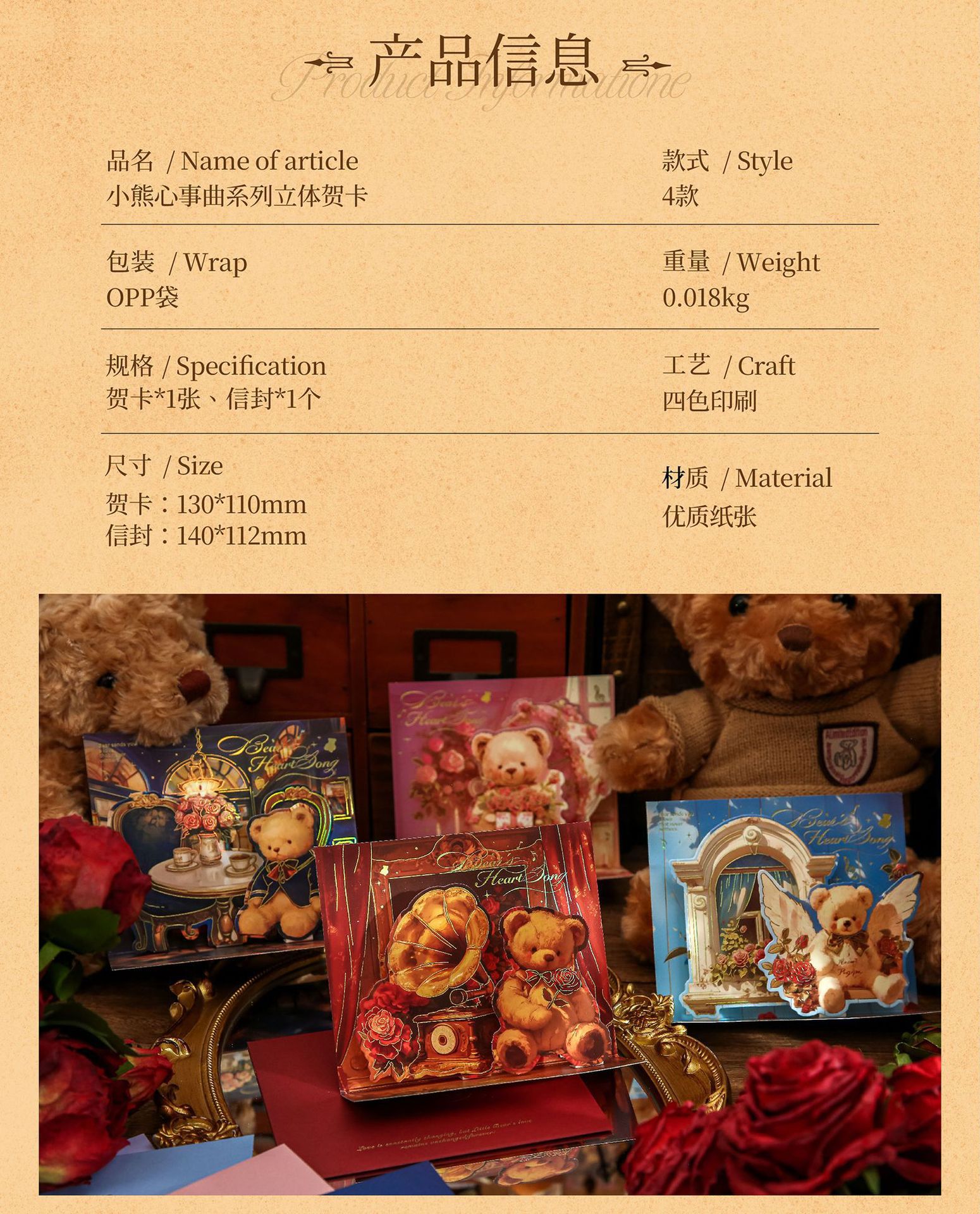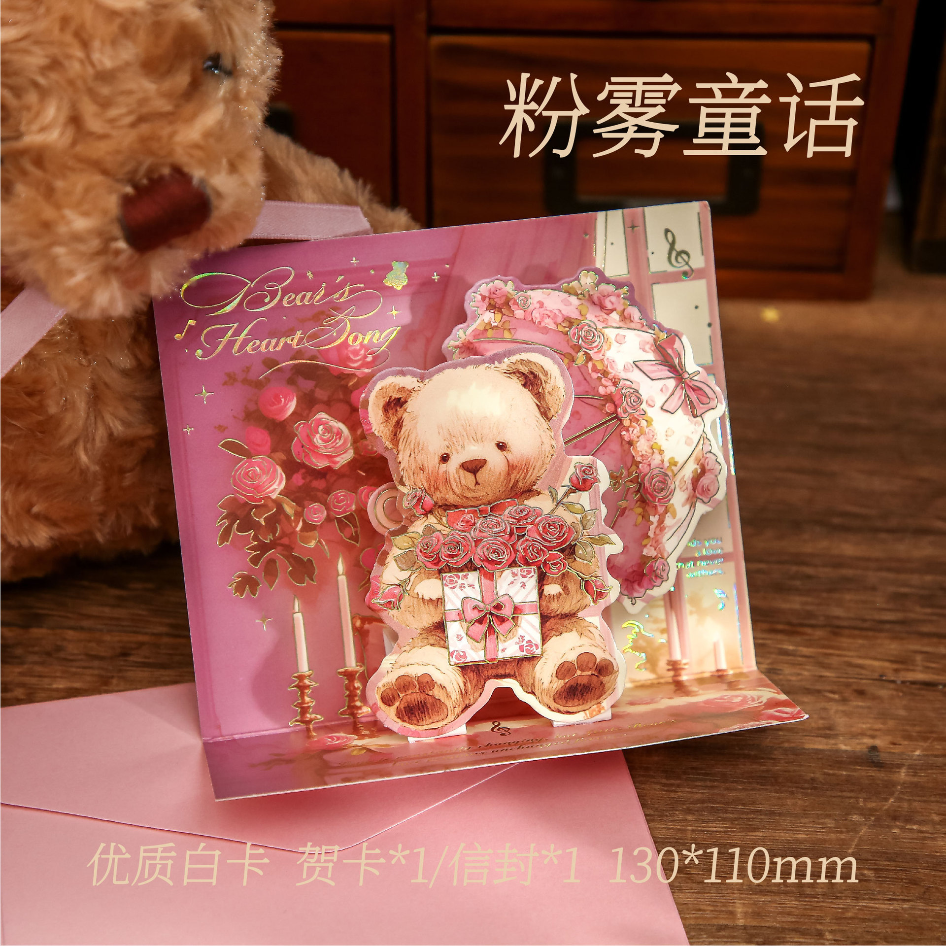 Mr. Paper 입체 인사말 카드 Bear Thoughts 시리즈 학생 명절 선물 생일 손으로 쓴 축복 메시지 카드