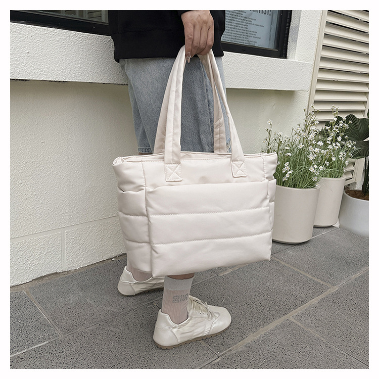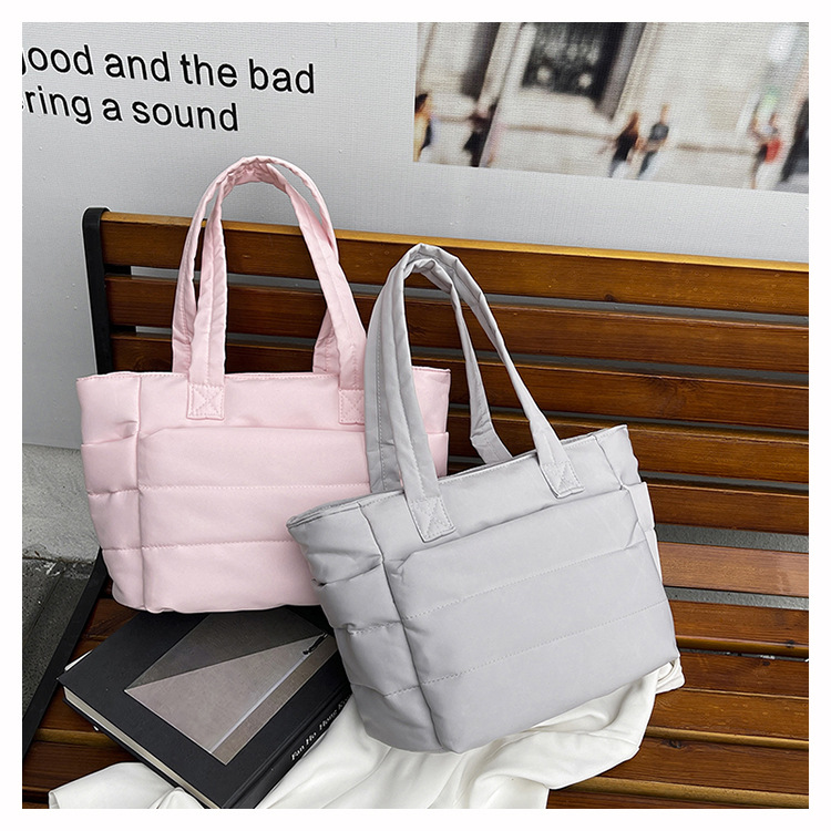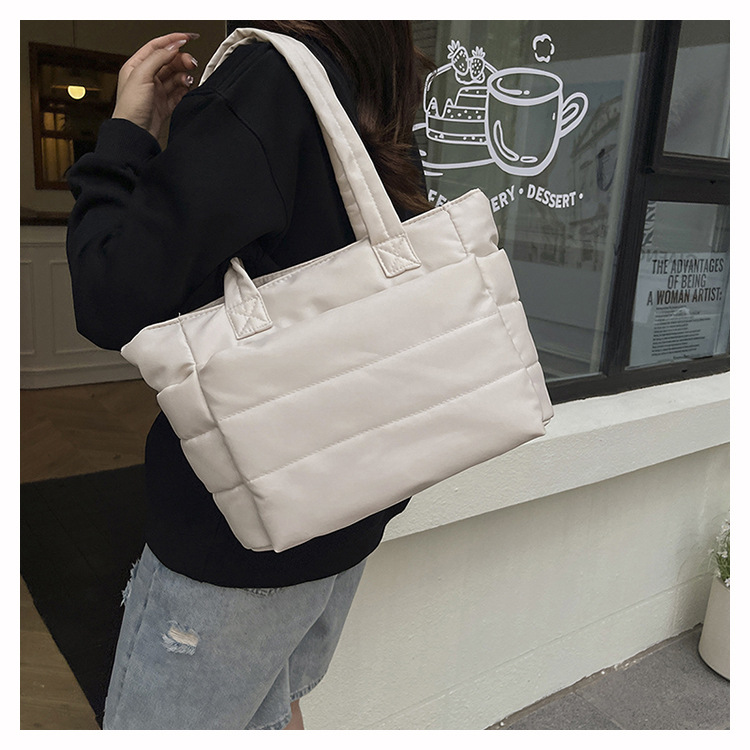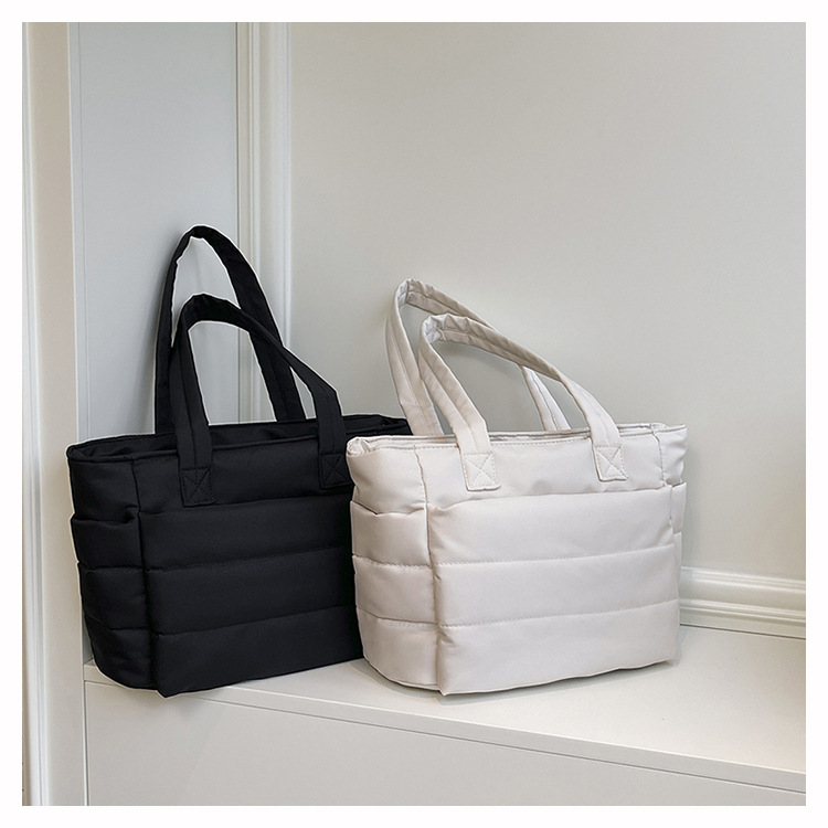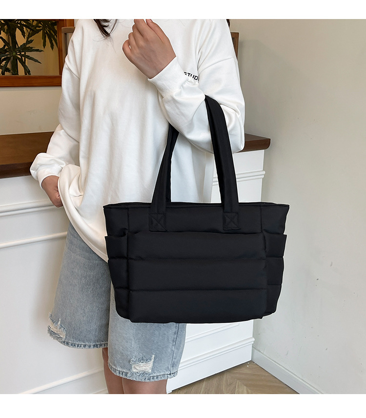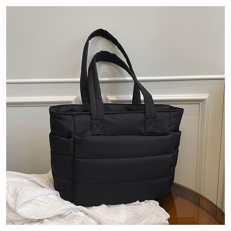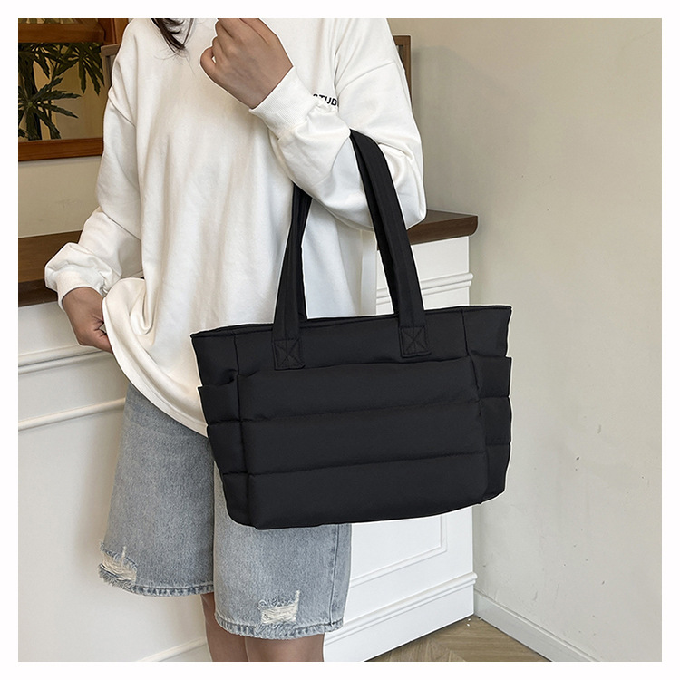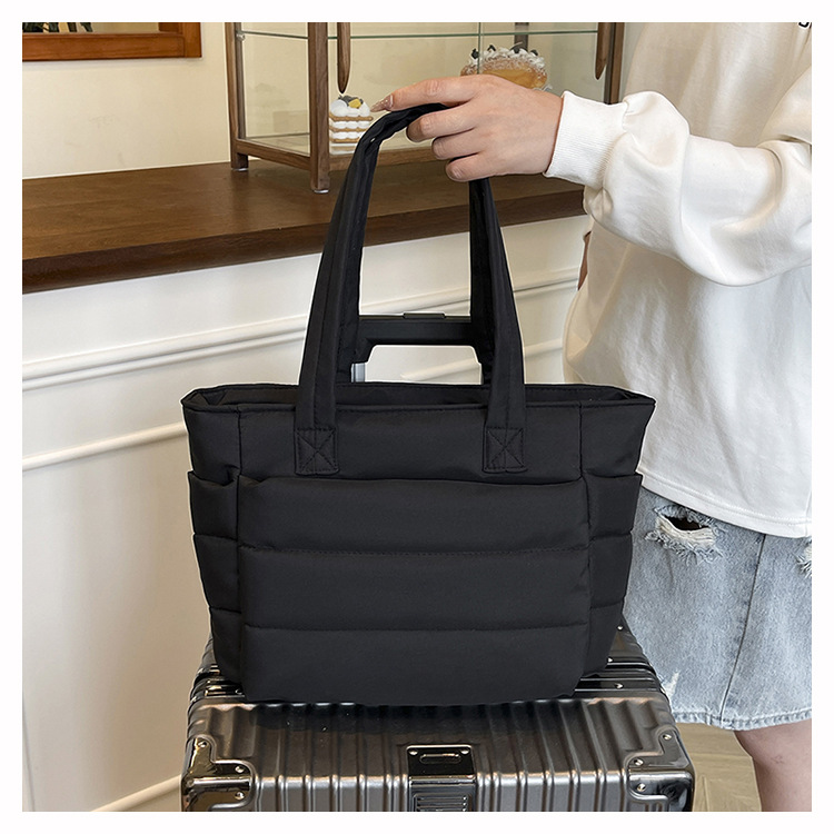 심플하고 활용도가 높은 자수 핸드백, 단색 캐주얼 통근 여행 숄더백, 여대생 멀티 수납 토트백