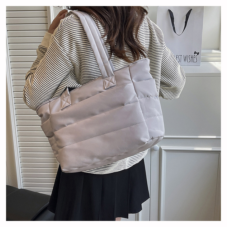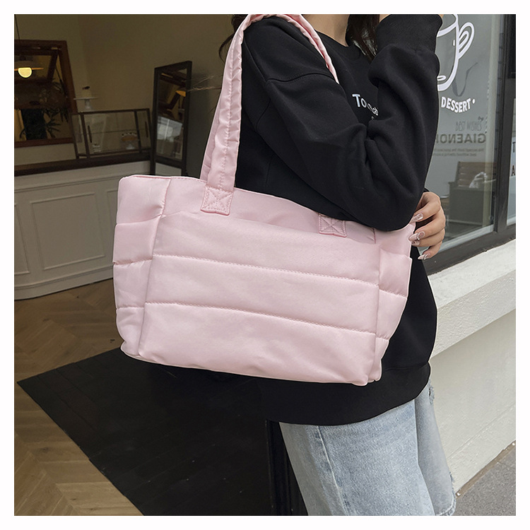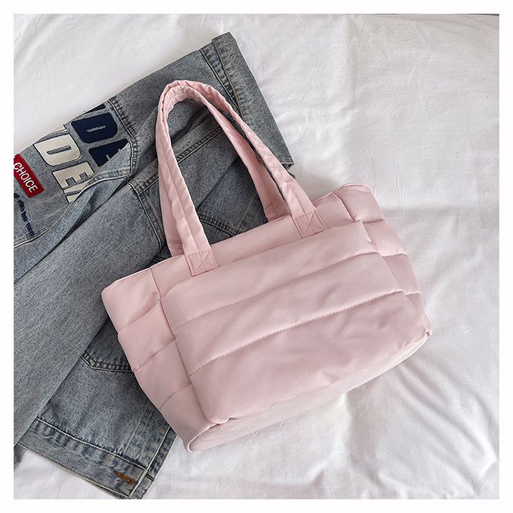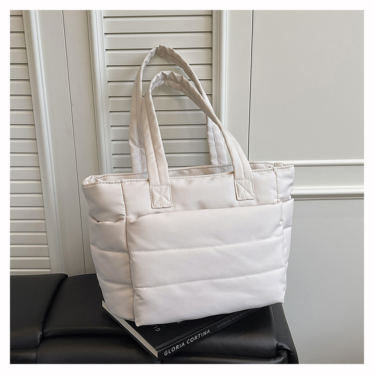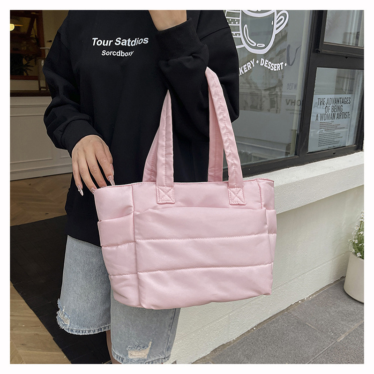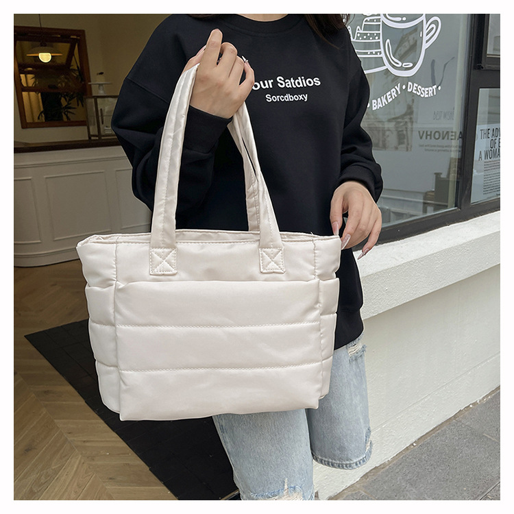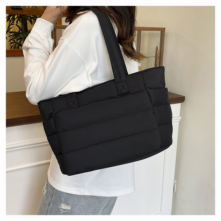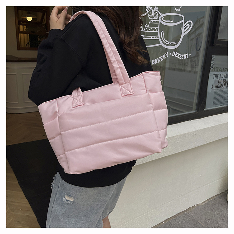 심플하고 활용도가 높은 자수 핸드백, 단색 캐주얼 통근 여행 숄더백, 여대생 멀티 수납 토트백