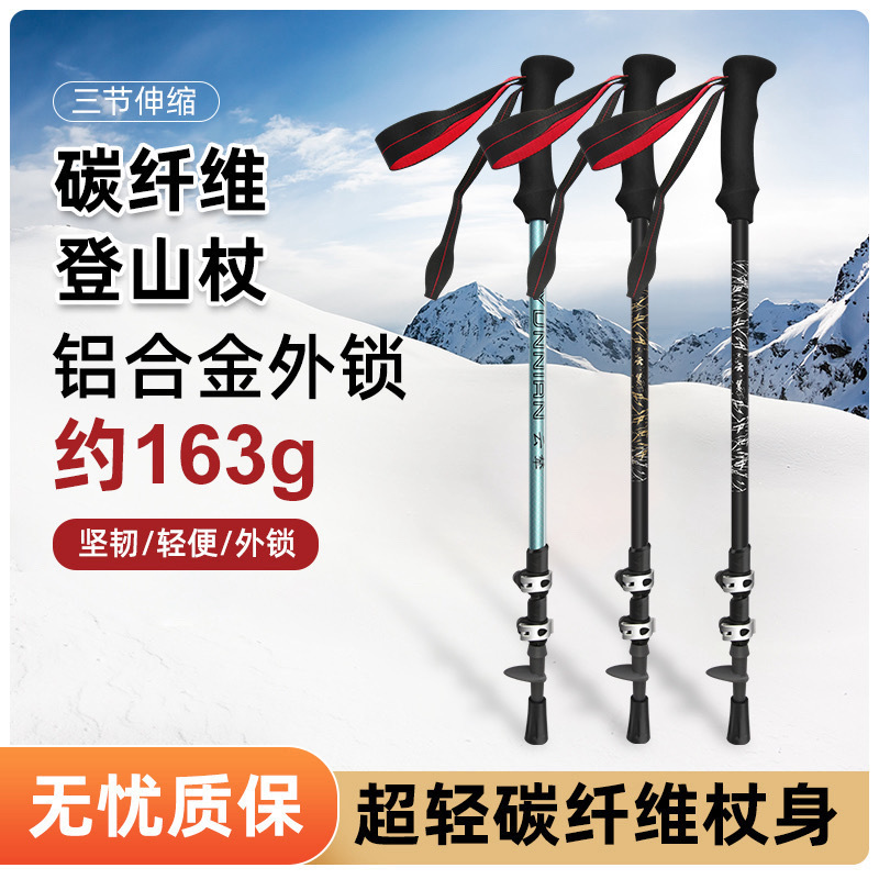 탄소섬유 야외 등산 스틱 3단 외부 잠금식 텔레스코픽 등산 스틱 탄소섬유 지팡이 초경량 공장 직판 도매스토어 가기