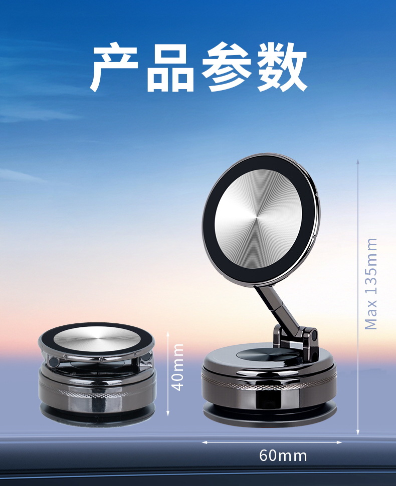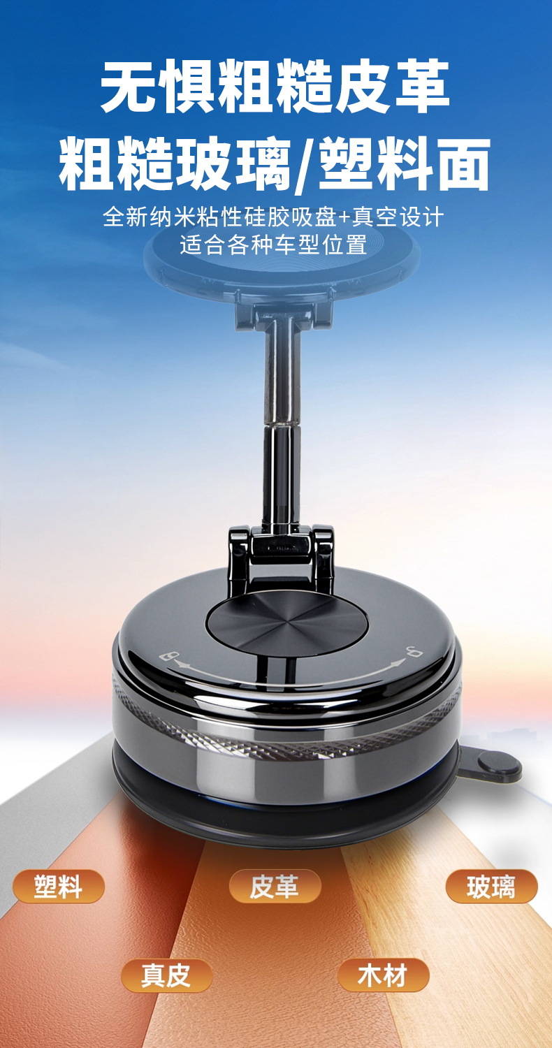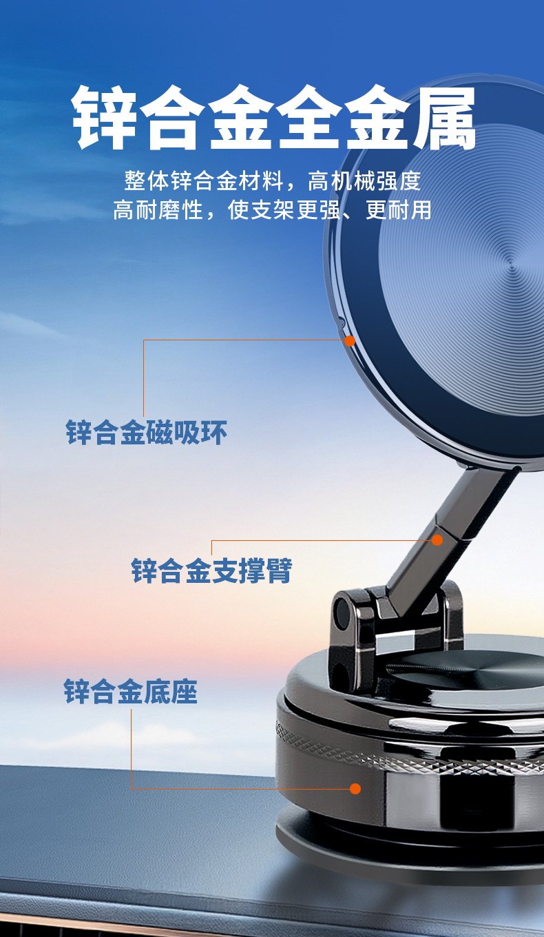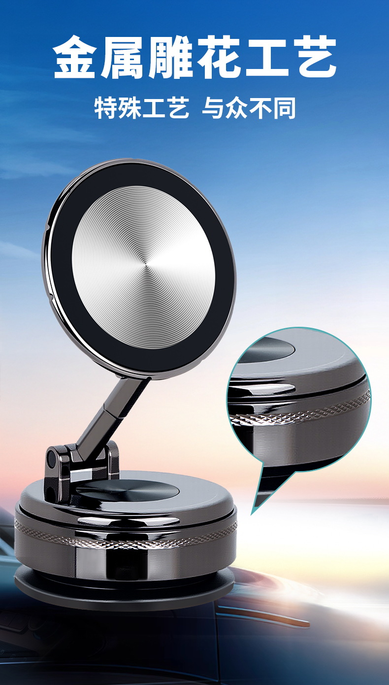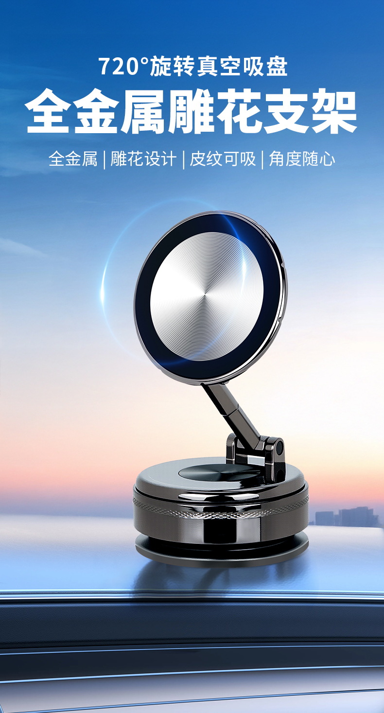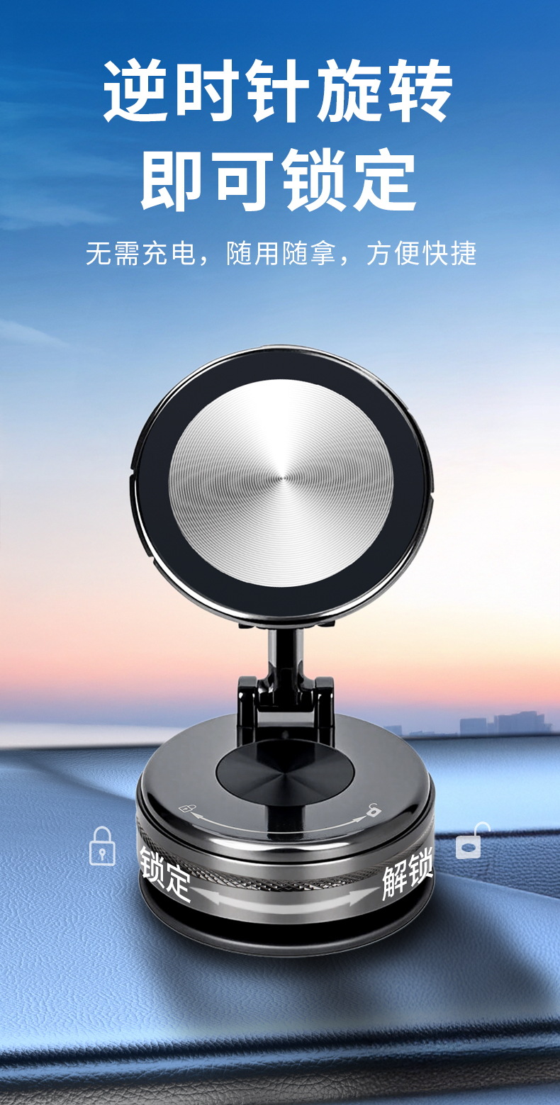 2025新款全金属真空磁吸支架 纳米滴胶真空吸盘车载手机磁吸支架