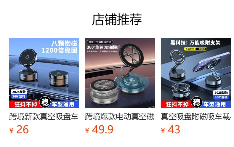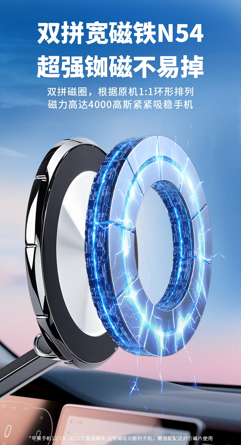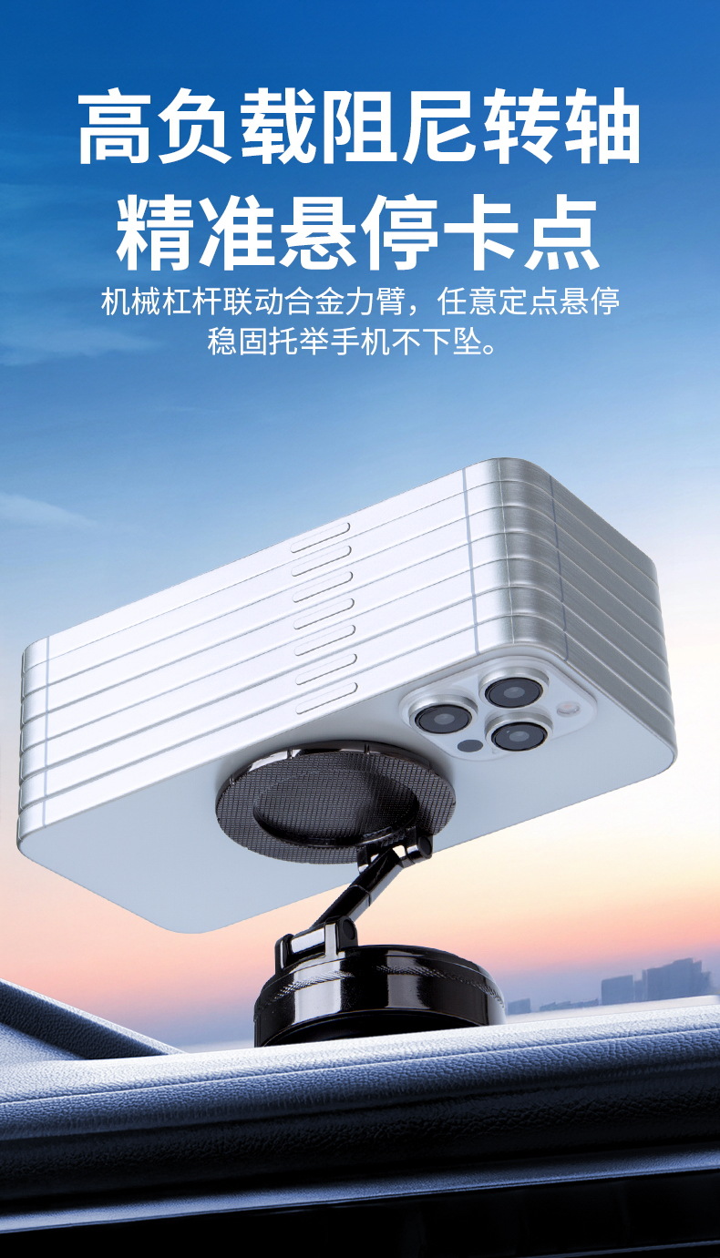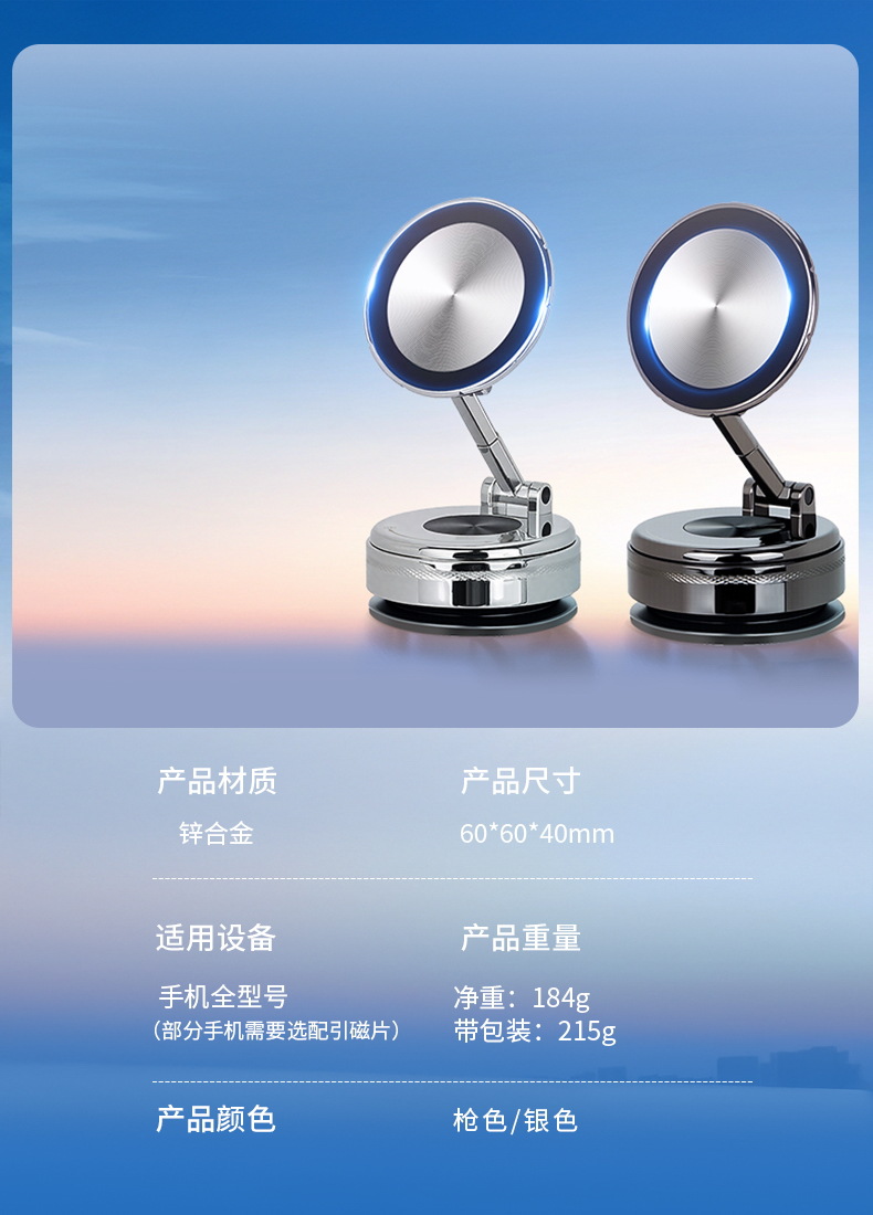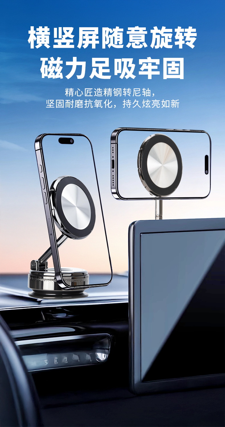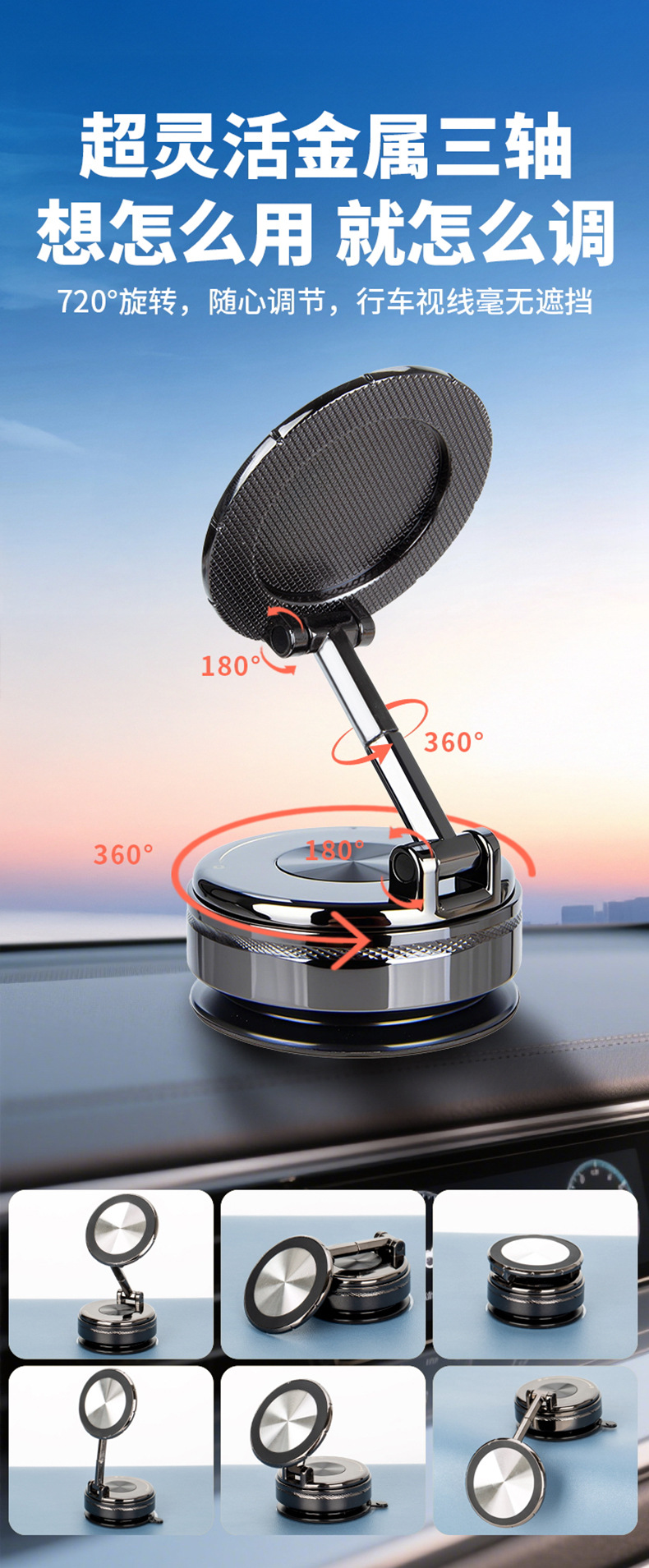 2025新款全金属真空磁吸支架 纳米滴胶真空吸盘车载手机磁吸支架