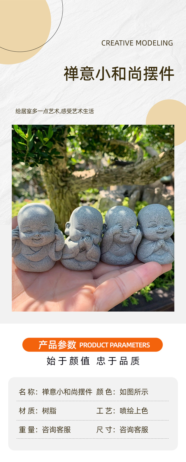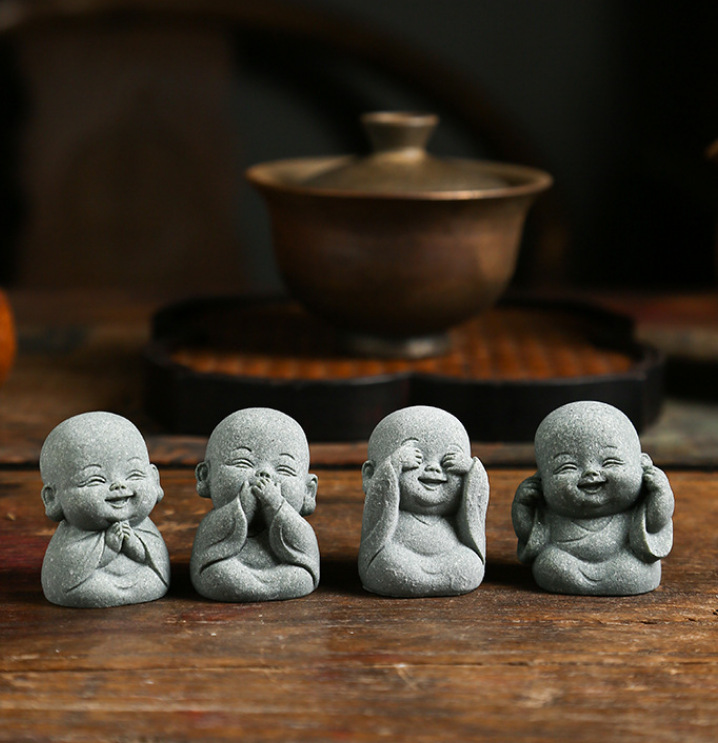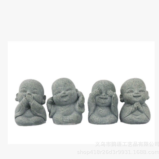 새로운 중국 스타일의 인기 판매 선 기도 작은 스님 장식품 4 개의 작은 스님 데스크탑 장식품 사무실 데스크탑 장식품스토어 가기