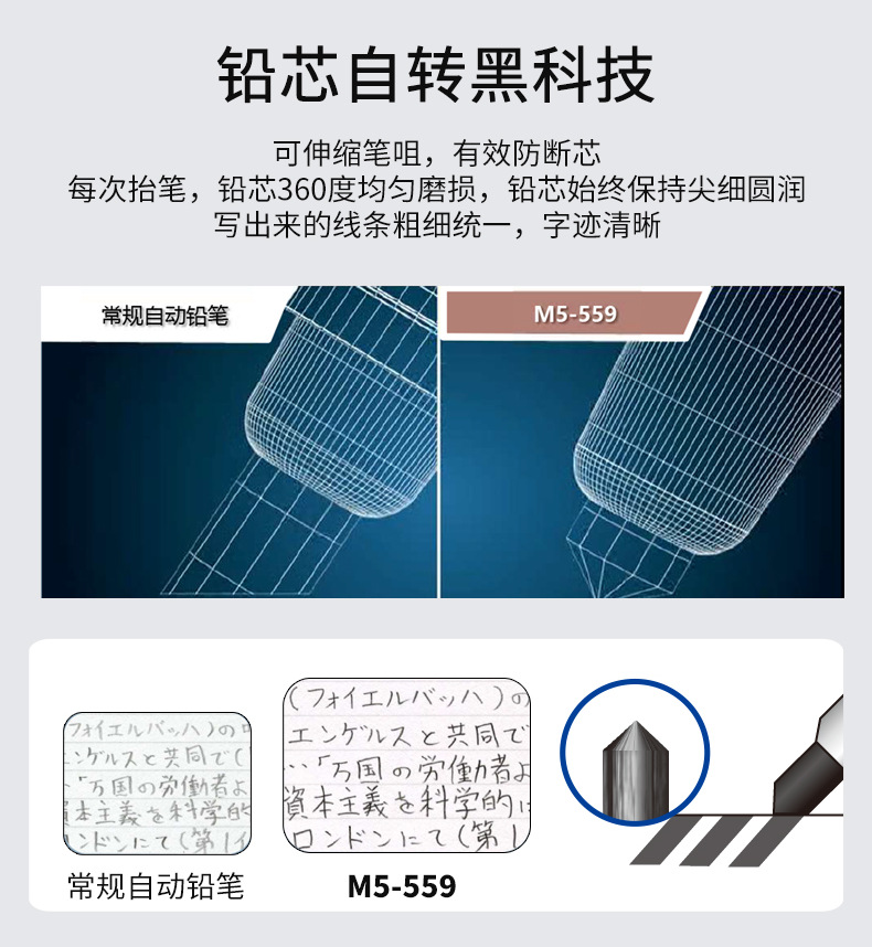 일본 유니 미쓰비시 M5-559 자동 연필심 자동 회전 샤프펜슬 쿠루토가 연속심