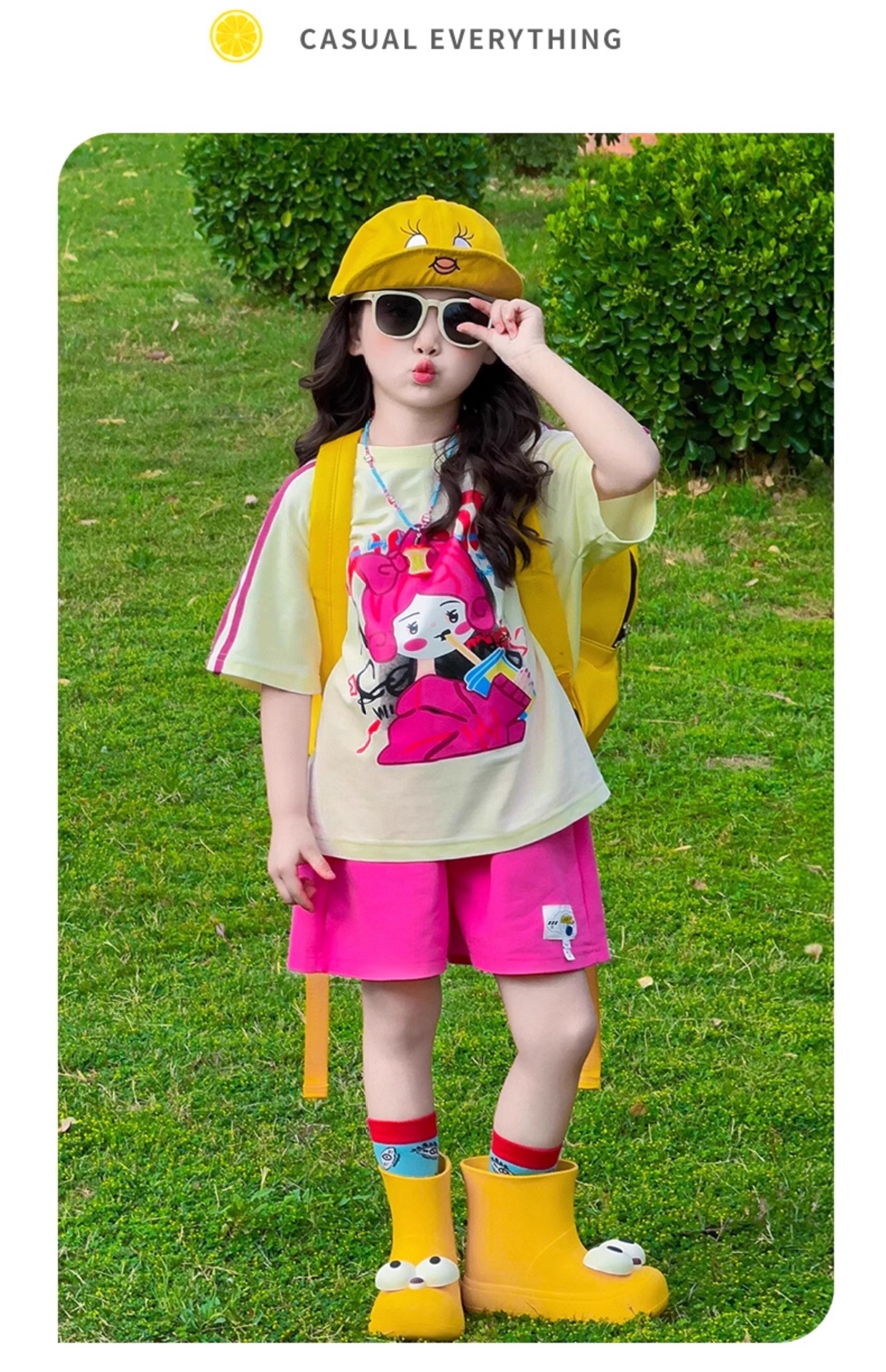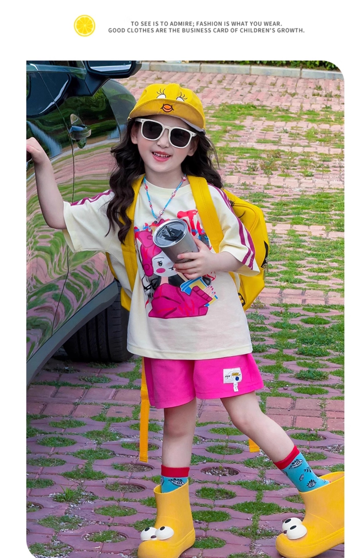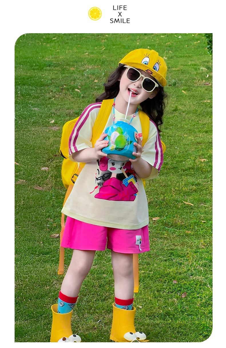 여자 정장 2025 새로운 스타일 여자 도파민 반바지 여름 어린이 한국 스타일 캐주얼 투피스 세트 Dropshipping