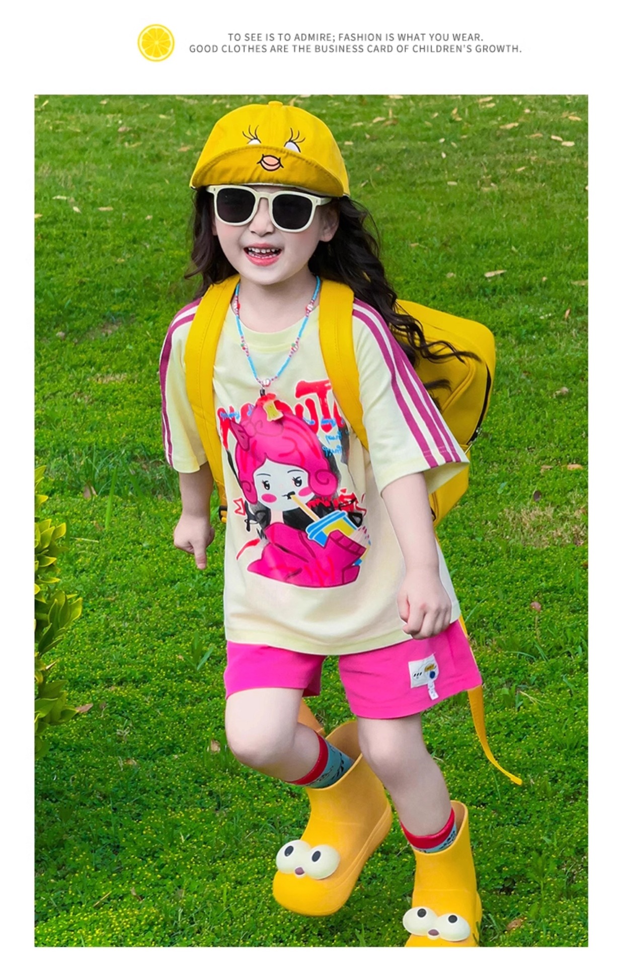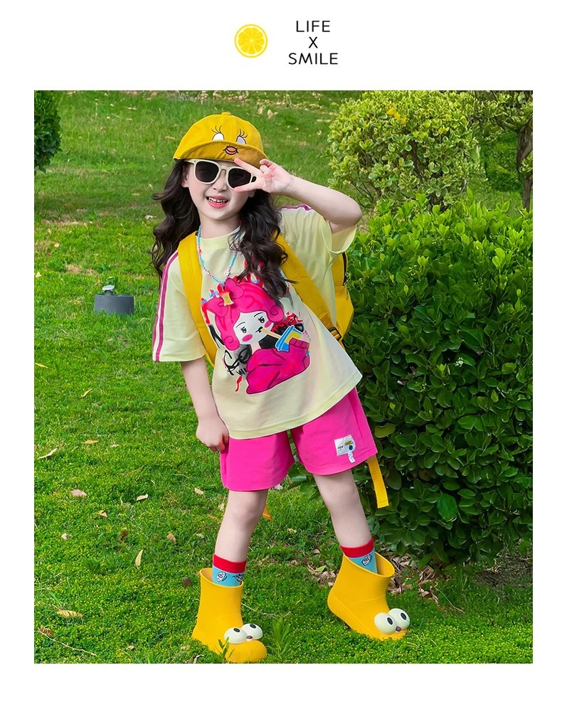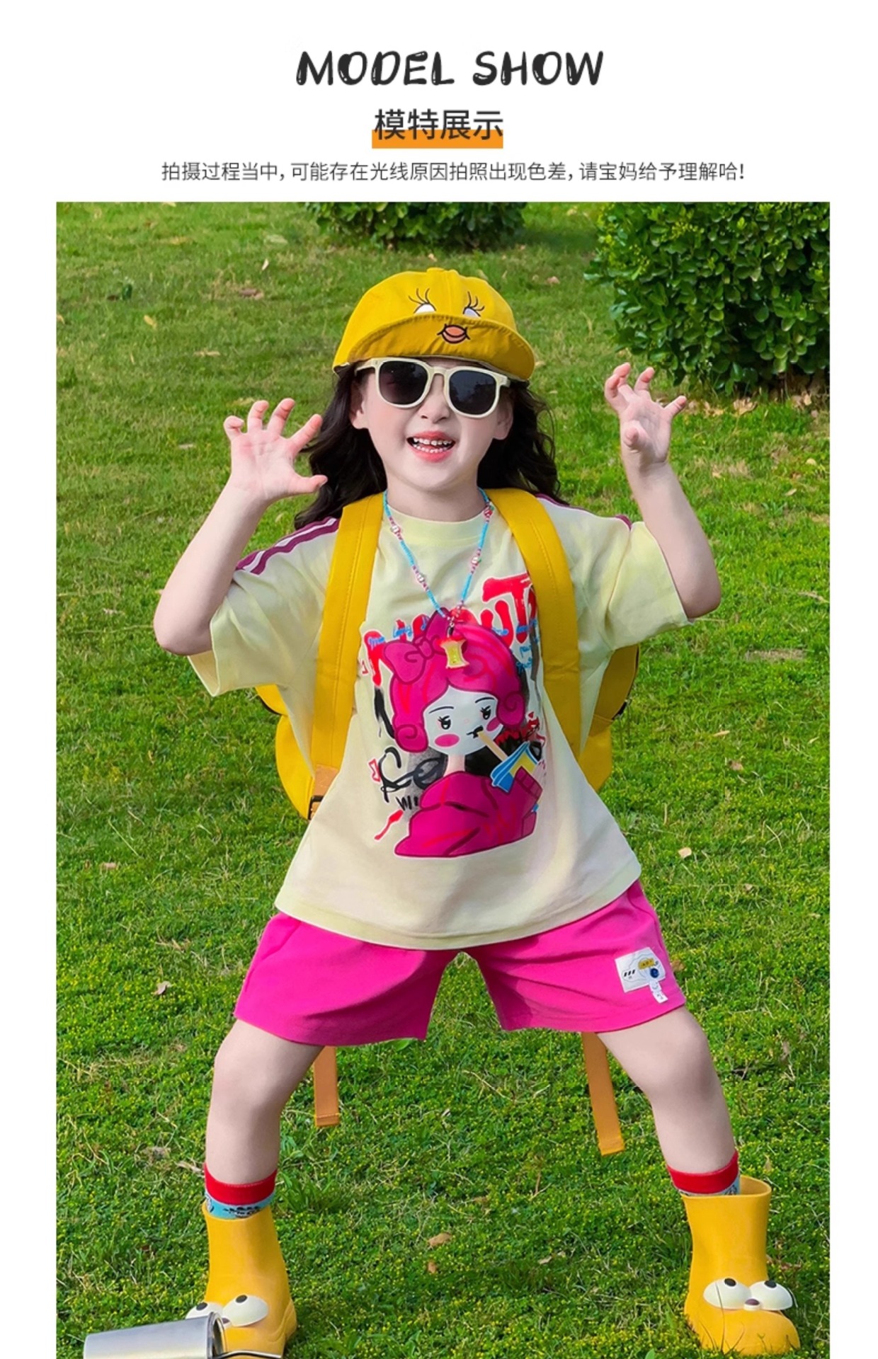 여자 정장 2025 새로운 스타일 여자 도파민 반바지 여름 어린이 한국 스타일 캐주얼 투피스 세트 Dropshipping