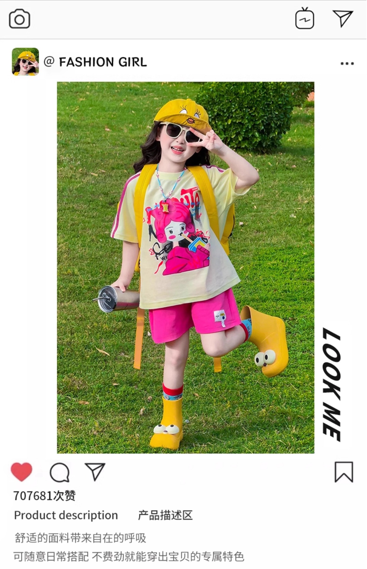 여자 정장 2025 새로운 스타일 여자 도파민 반바지 여름 어린이 한국 스타일 캐주얼 투피스 세트 Dropshipping스토어 가기