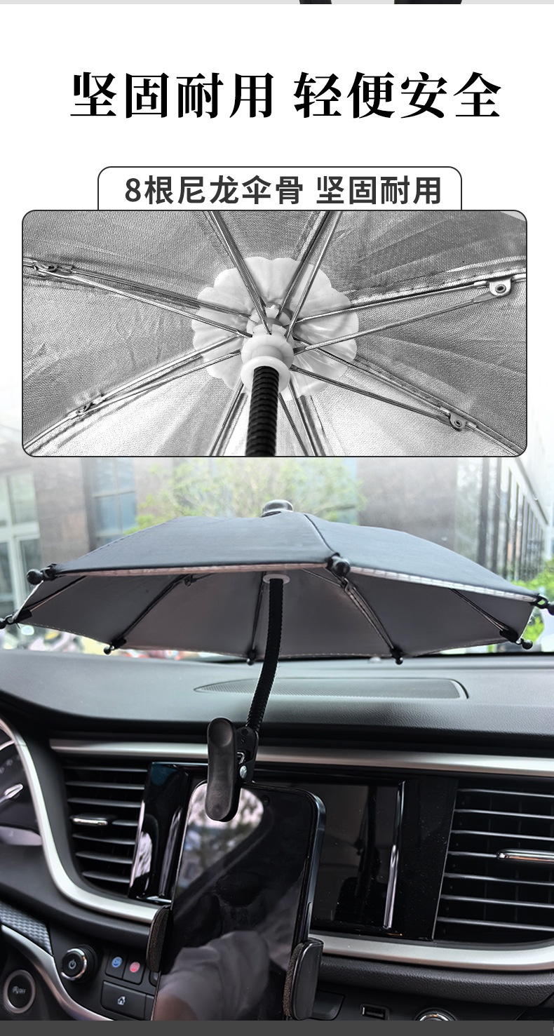 금속 호스 구부릴 수있는 미니 우산 실버 접착제 태양 보호 클립 장난감 우산 야외 라이브 방송 휴대 전화 우산