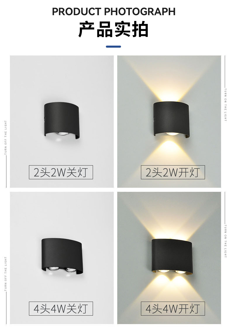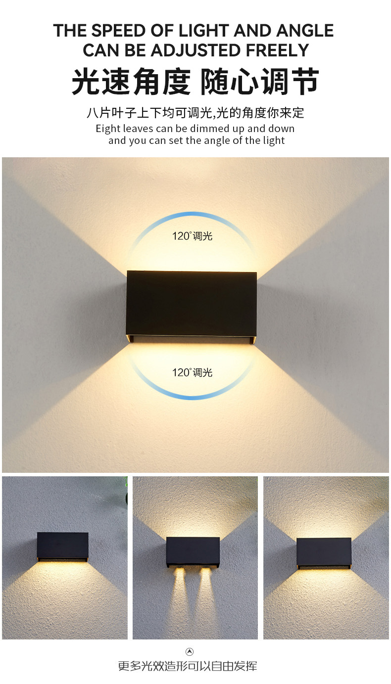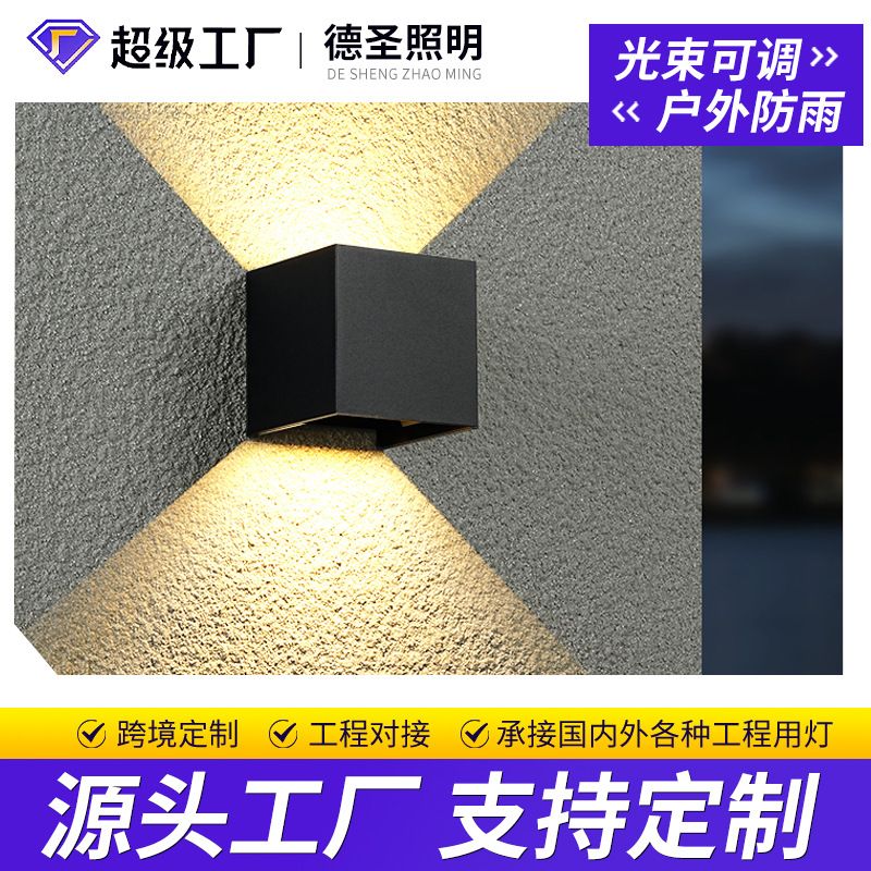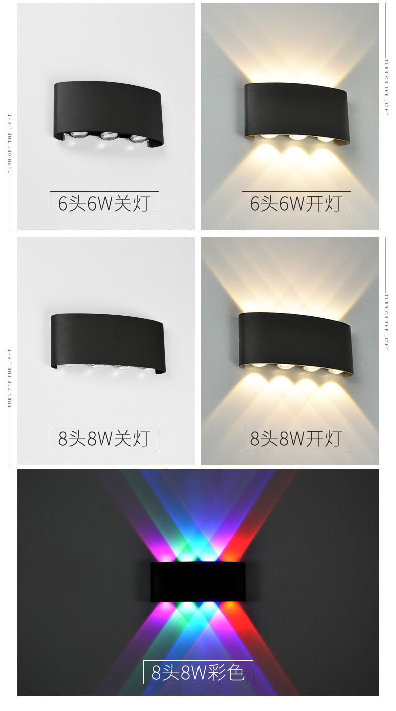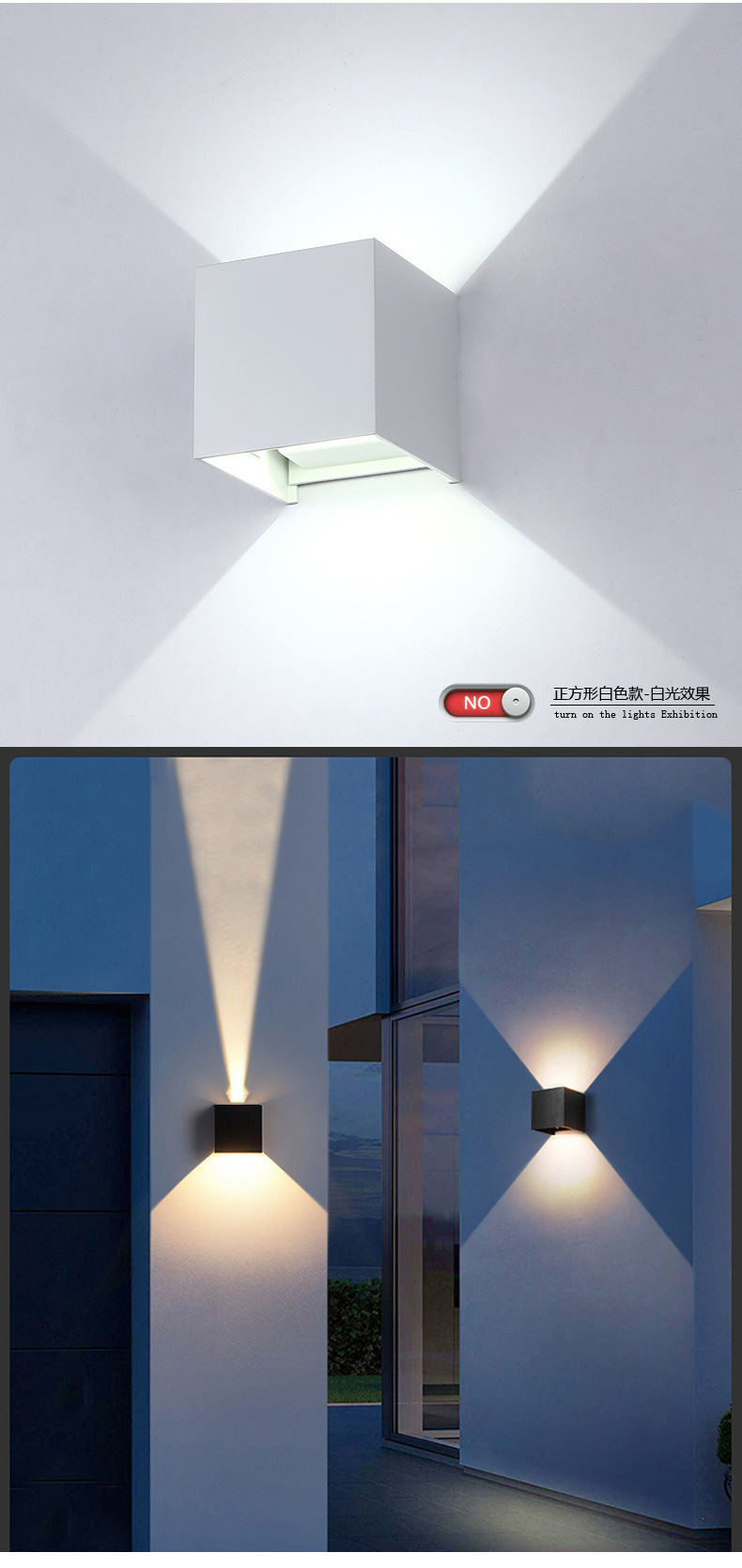 국경 간 LED 야외 방수 벽 램프 안뜰 복도 통로 스포트라이트 더블 헤드 위아래로 빛나는 미니멀리스트 야외 벽 램프