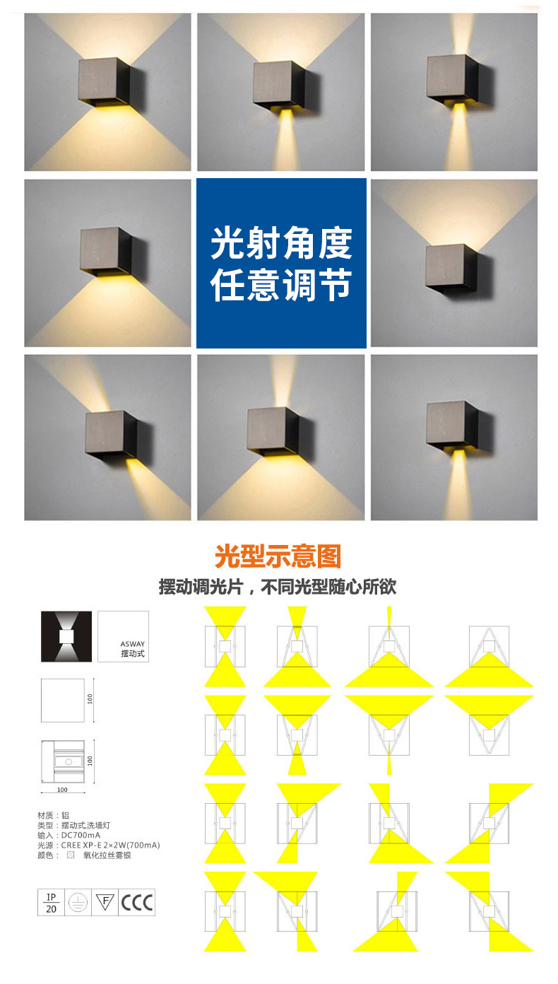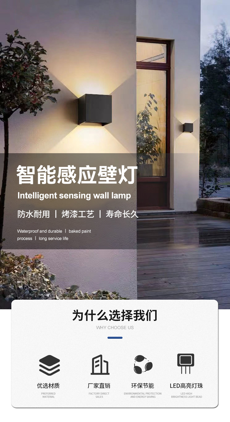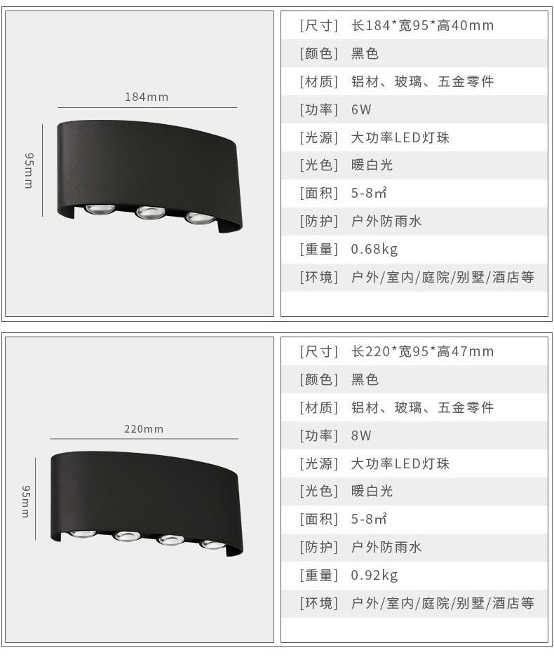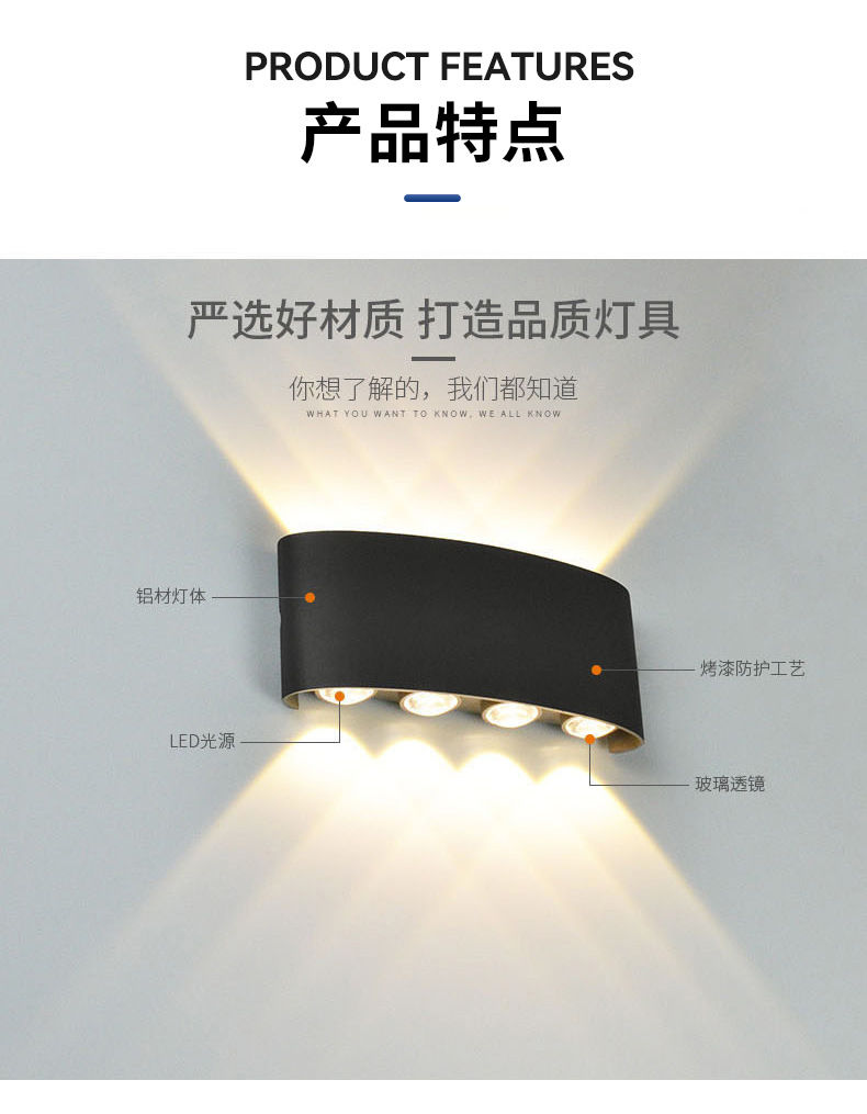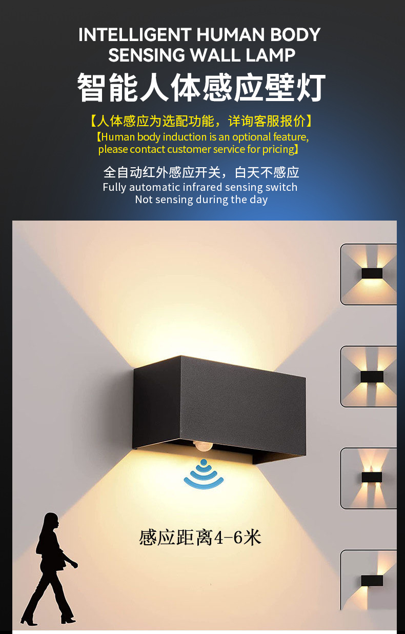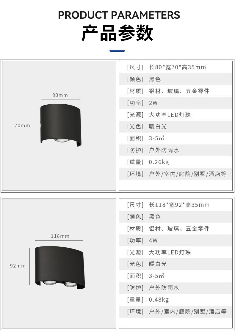 국경 간 LED 야외 방수 벽 램프 안뜰 복도 통로 스포트라이트 더블 헤드 위아래로 빛나는 미니멀리스트 야외 벽 램프