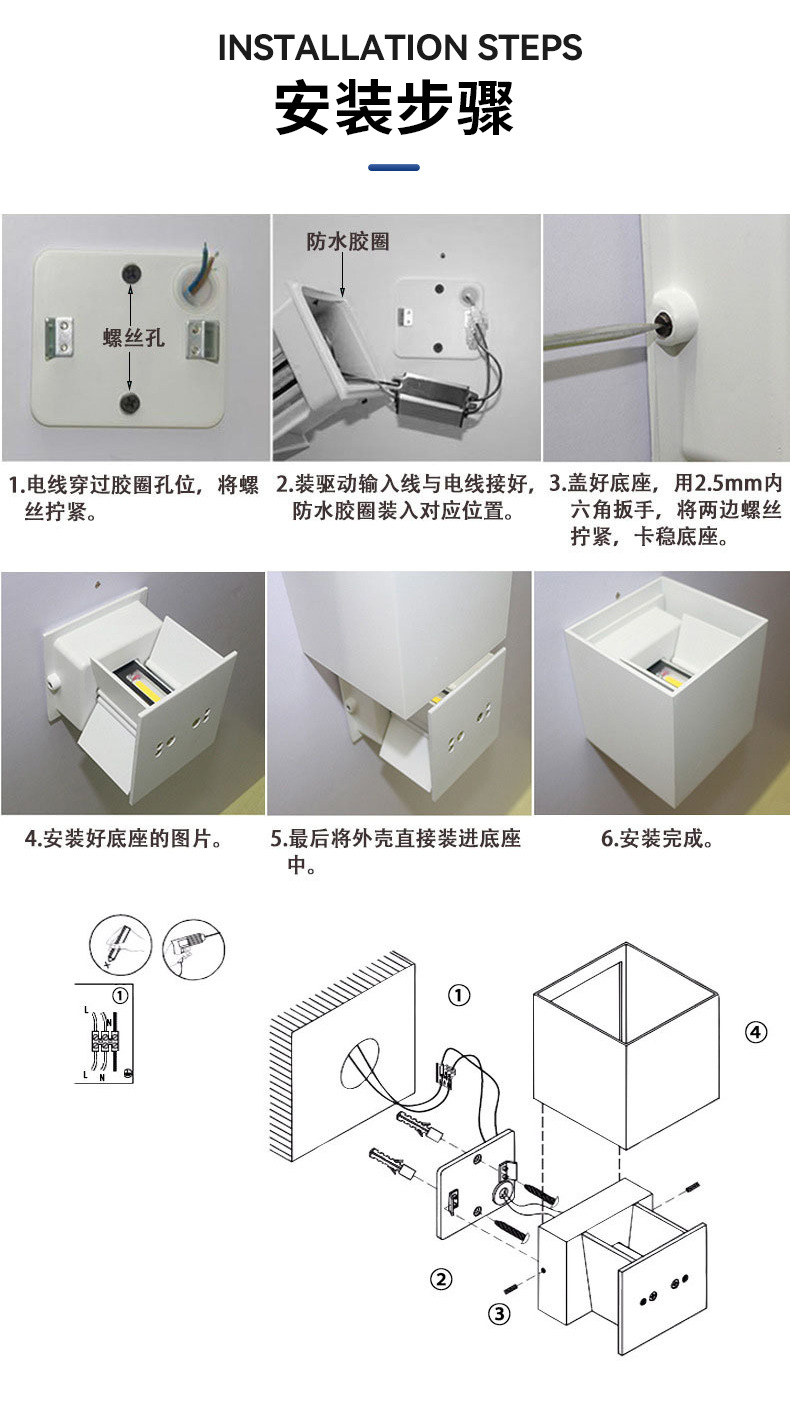 국경 간 LED 야외 방수 벽 램프 안뜰 복도 통로 스포트라이트 더블 헤드 위아래로 빛나는 미니멀리스트 야외 벽 램프스토어 가기
