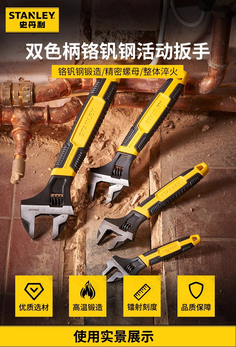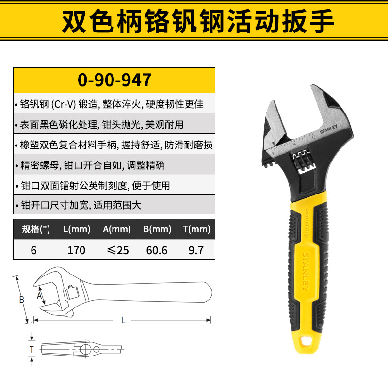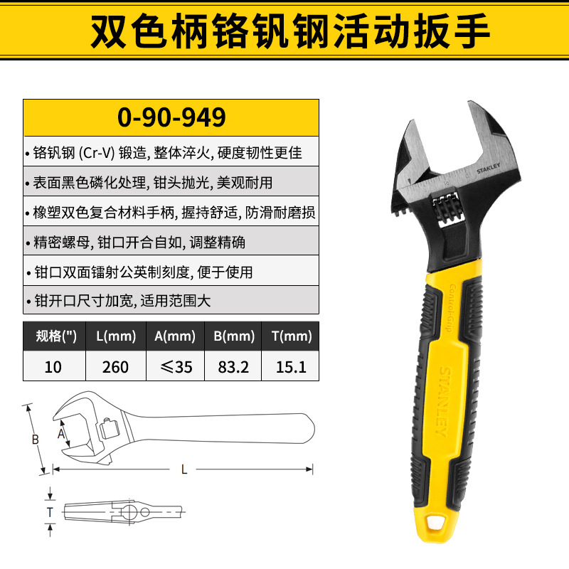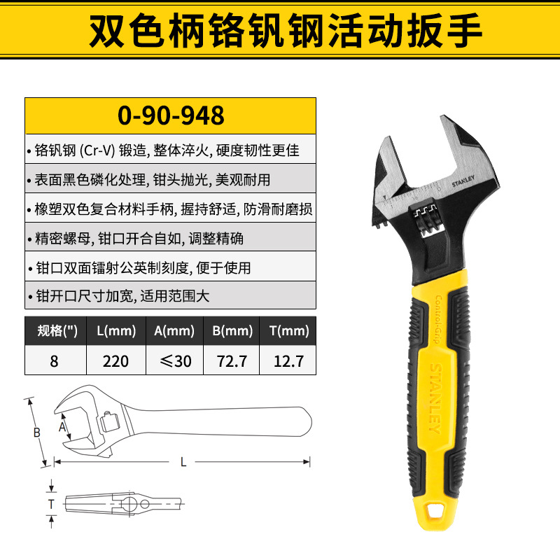 스탠리 2색 핸들 크롬 바나듐 강철 조절식 렌치 6inch / 8inch / 10inch / 12inch 가정용 범용 렌치스토어 가기