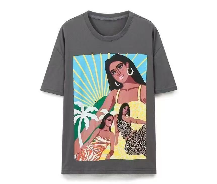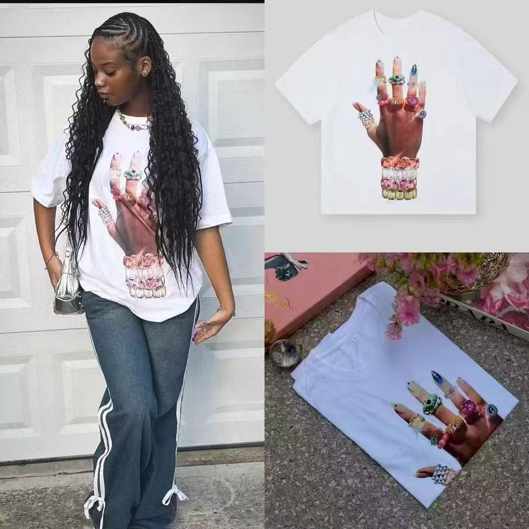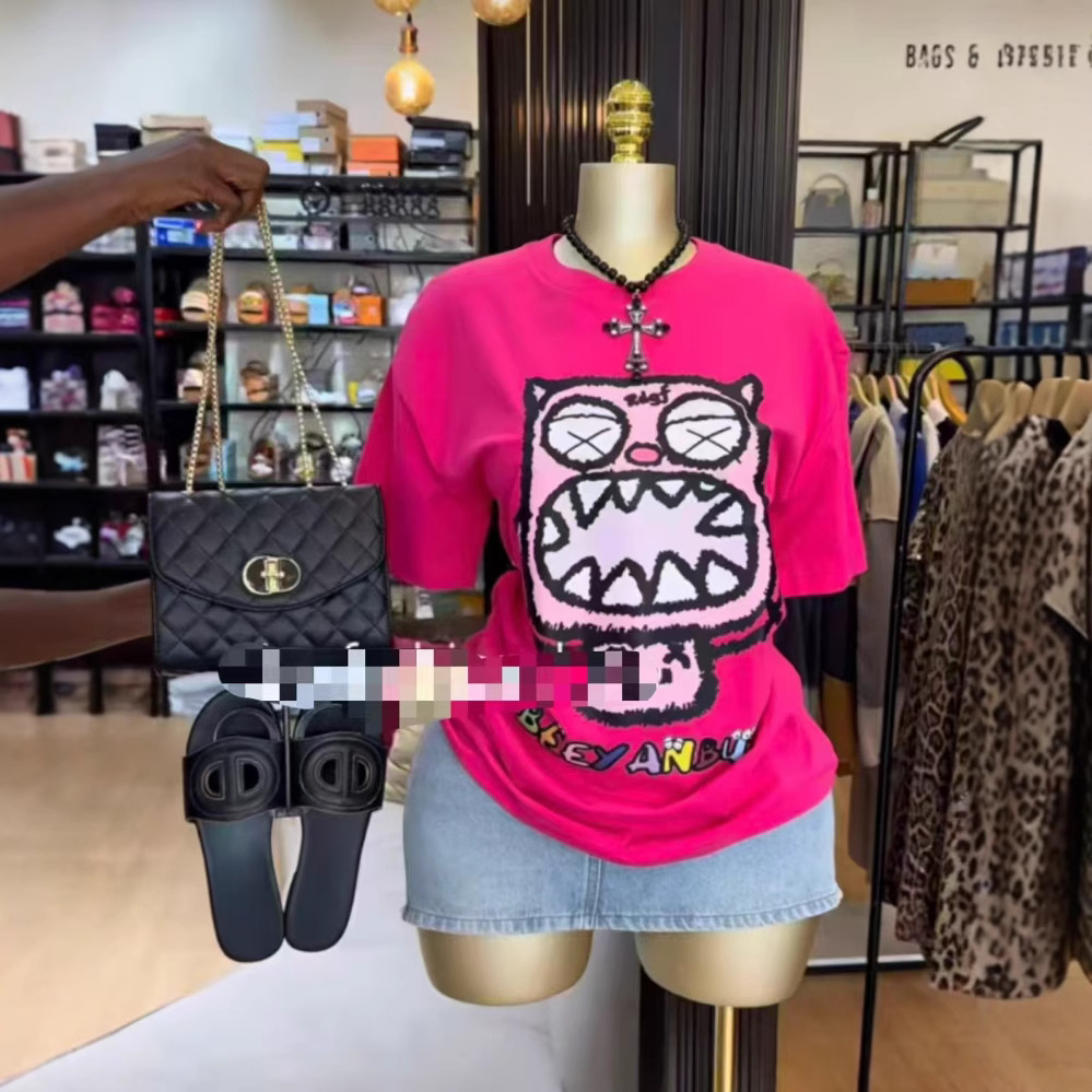 유럽 및 미국 스타일 300g 트렌디 브랜드 티셔츠 라운드넥 루즈핏 헤비 코튼 반팔 다양한 색상 선택 가능 패션 트렌디 여성복