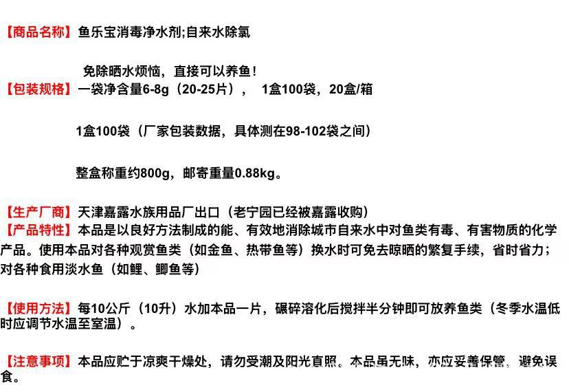 정품 Ningyuan 브랜드 Yulebao 특수 수돗물 염소 제거 수조 수질 정화제는 물을 유지하고 물을 건조시키는 것을 방지합니다.