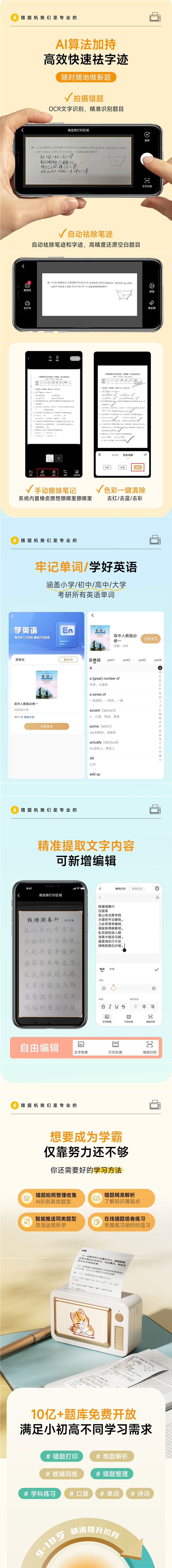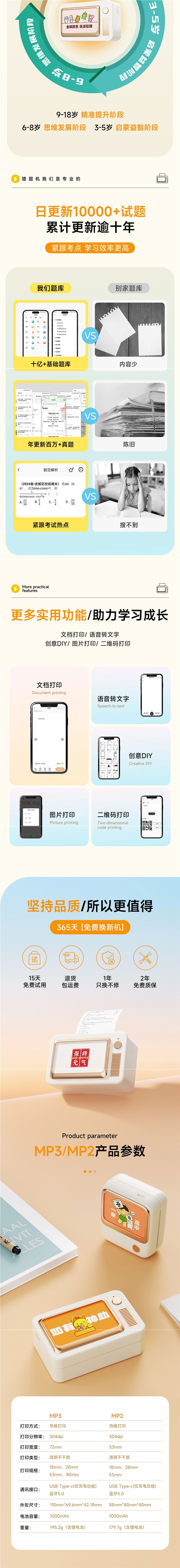 초등학생, 중학생, 고등학생을 위한 MP3 초선명 와이드 80개 오류 문제 프린터, 복사 없이 오류 문제를 정리할 수 있는 마법의 기능