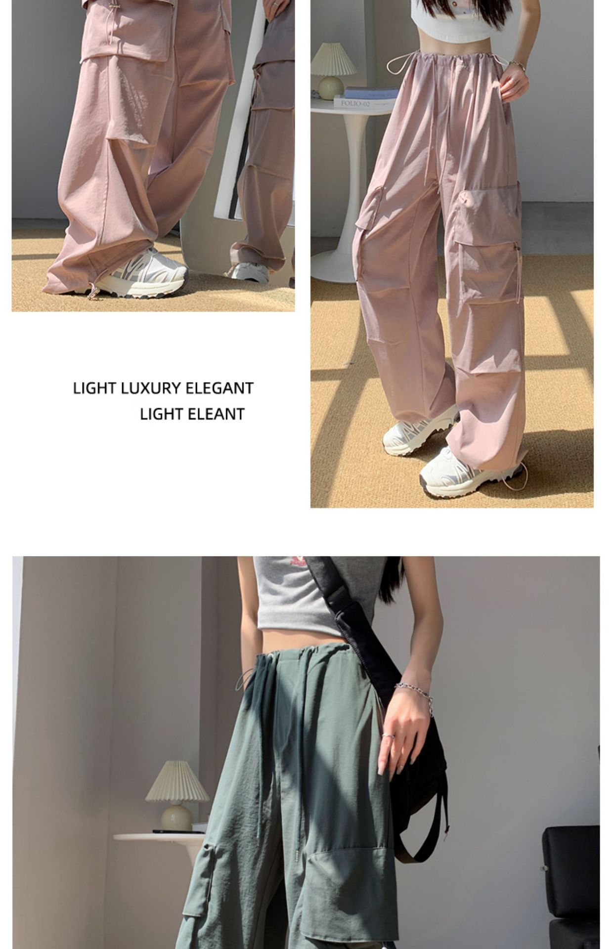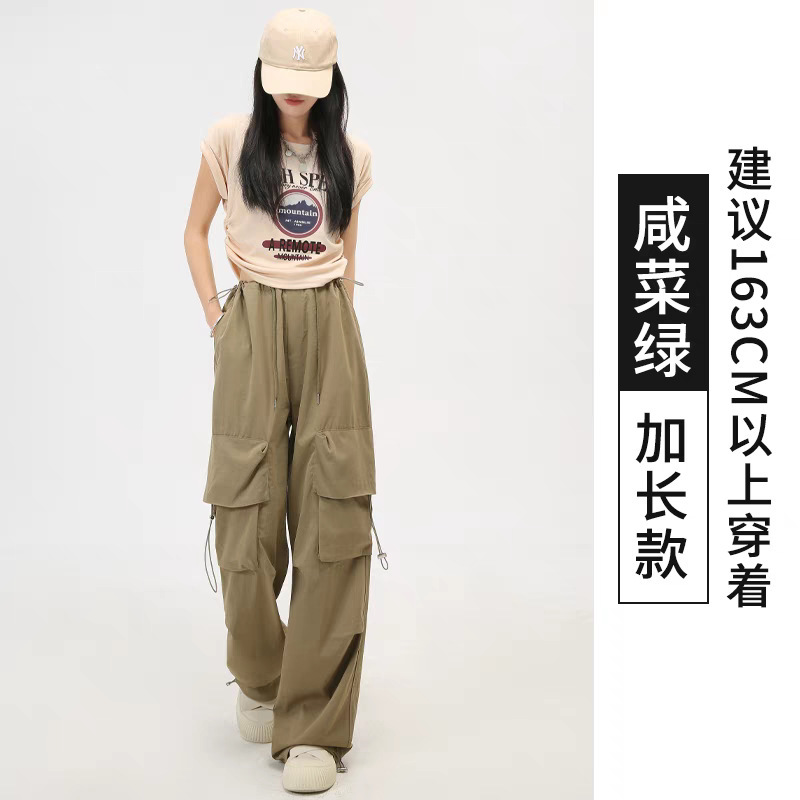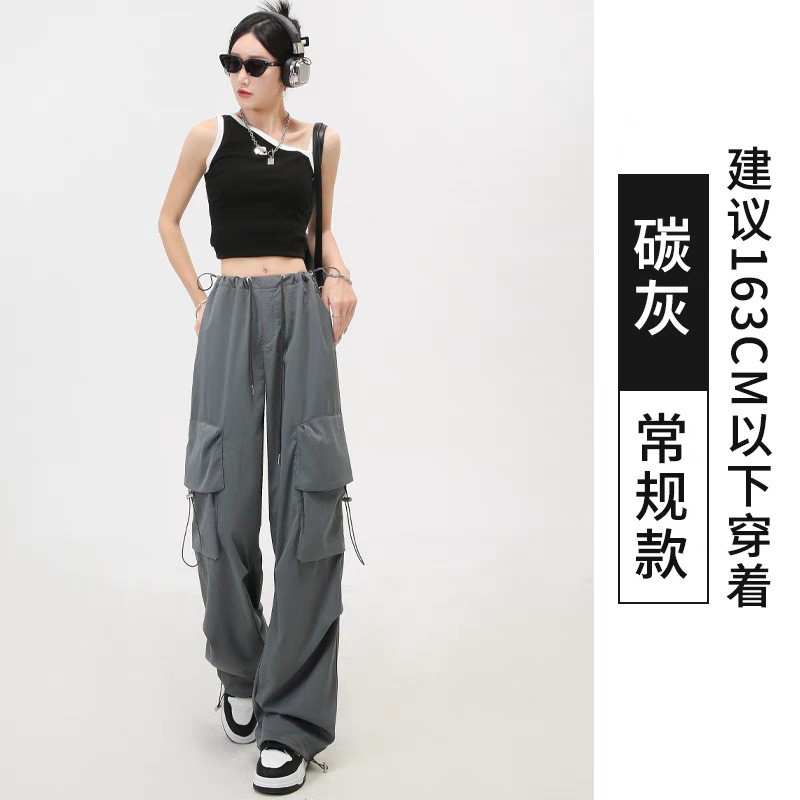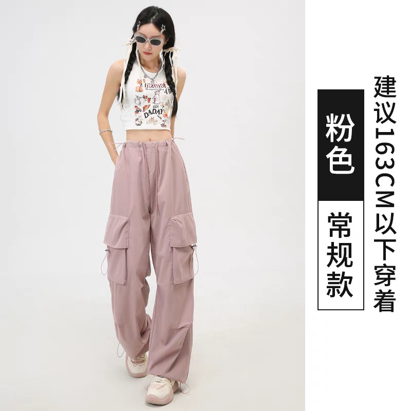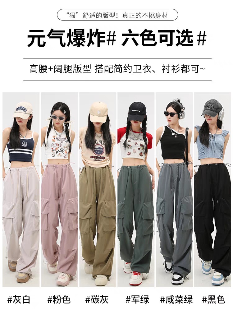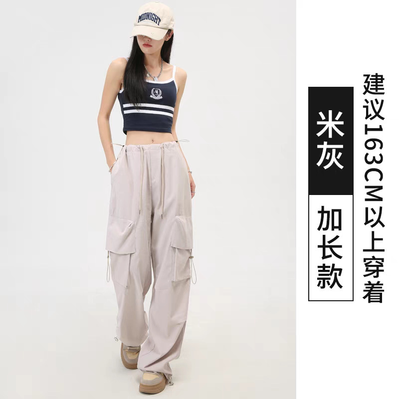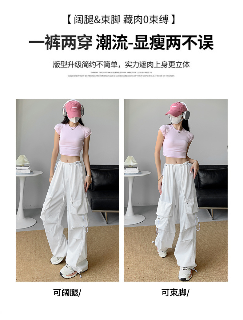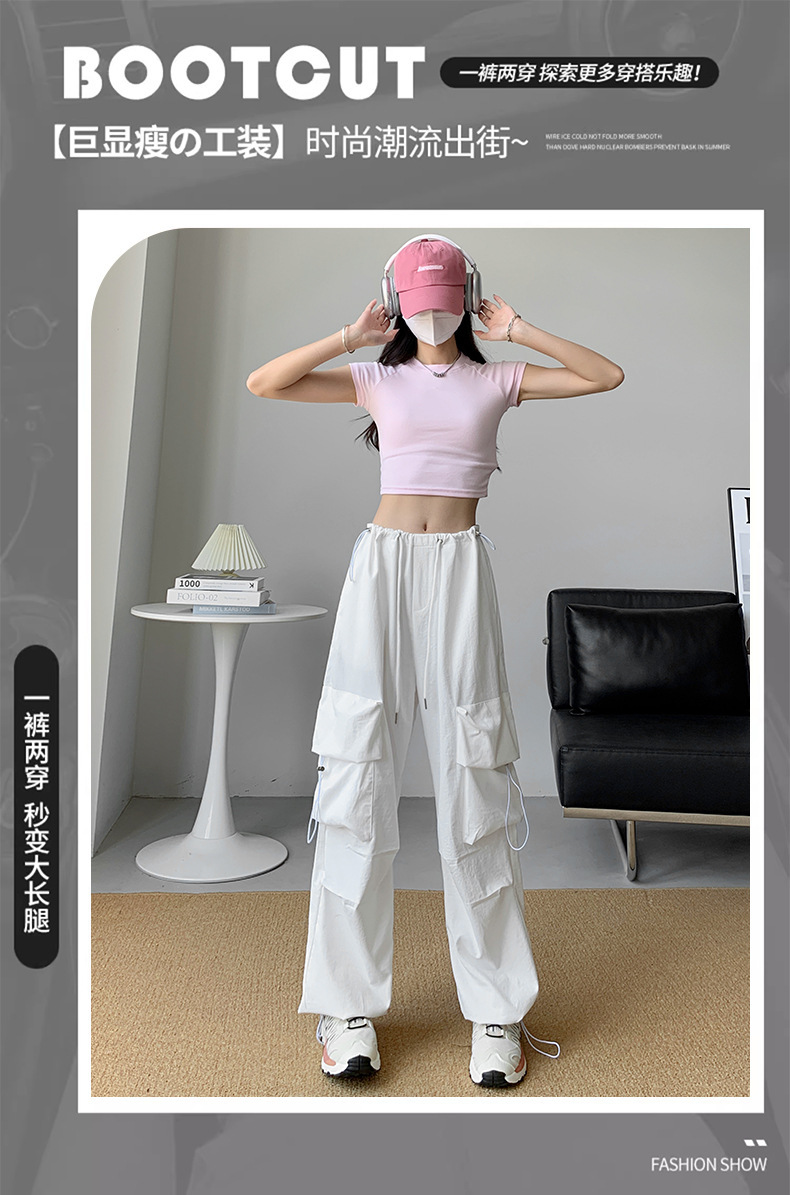 여성을위한 흰색 미국 작업복 여름 얇은 2025 새로운 하이 웨이스트 스트레이트 캐주얼 와이드 레그 속건성 하이킹 스포츠 바지스토어 가기