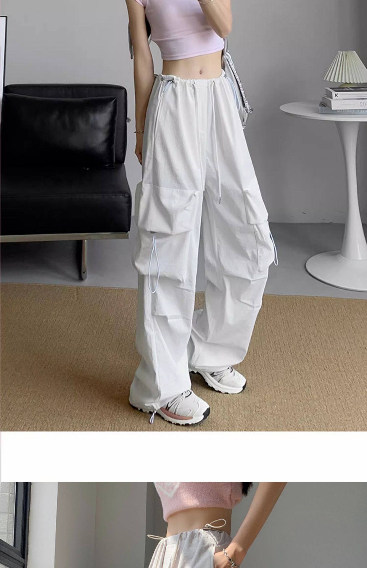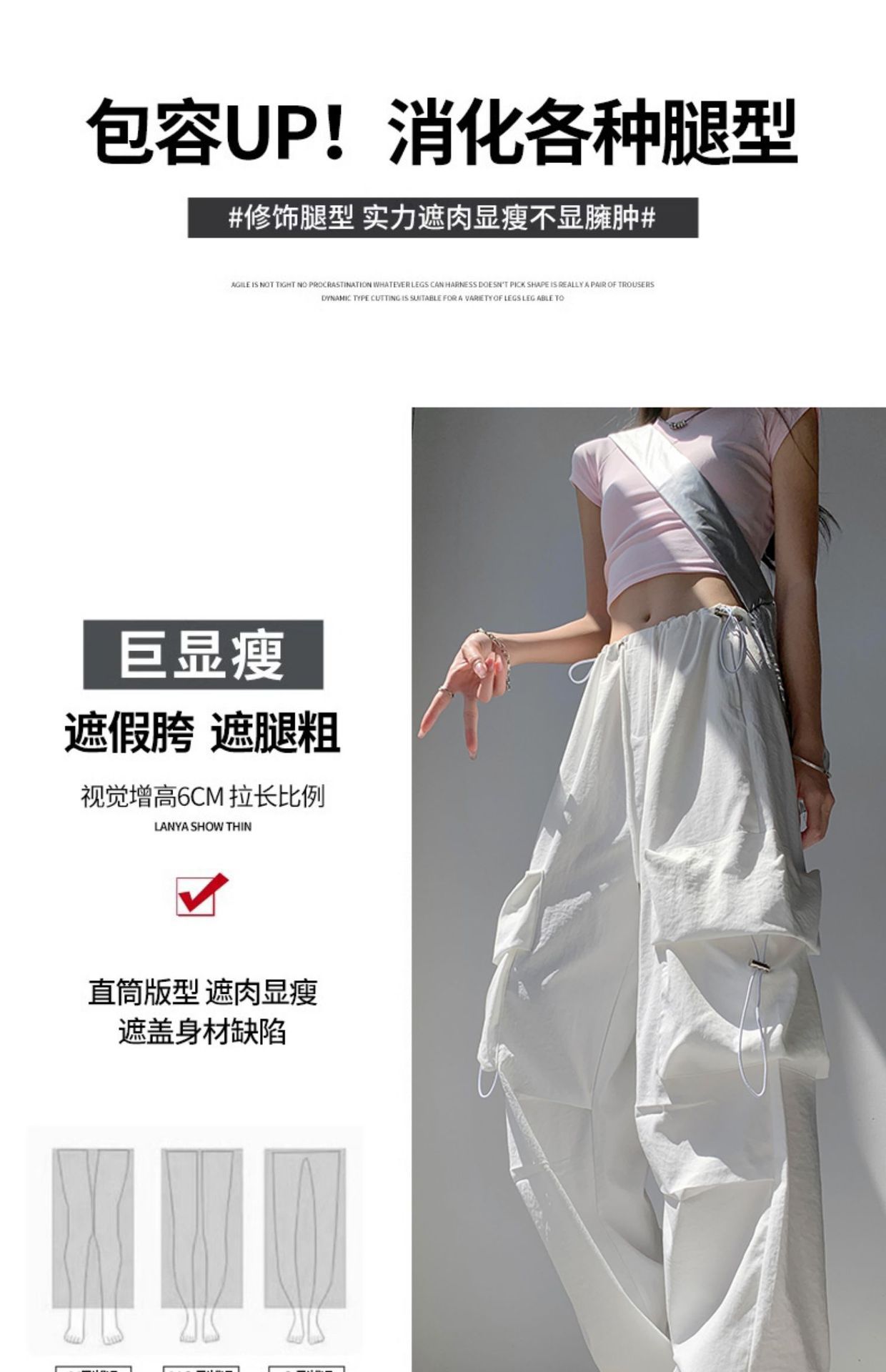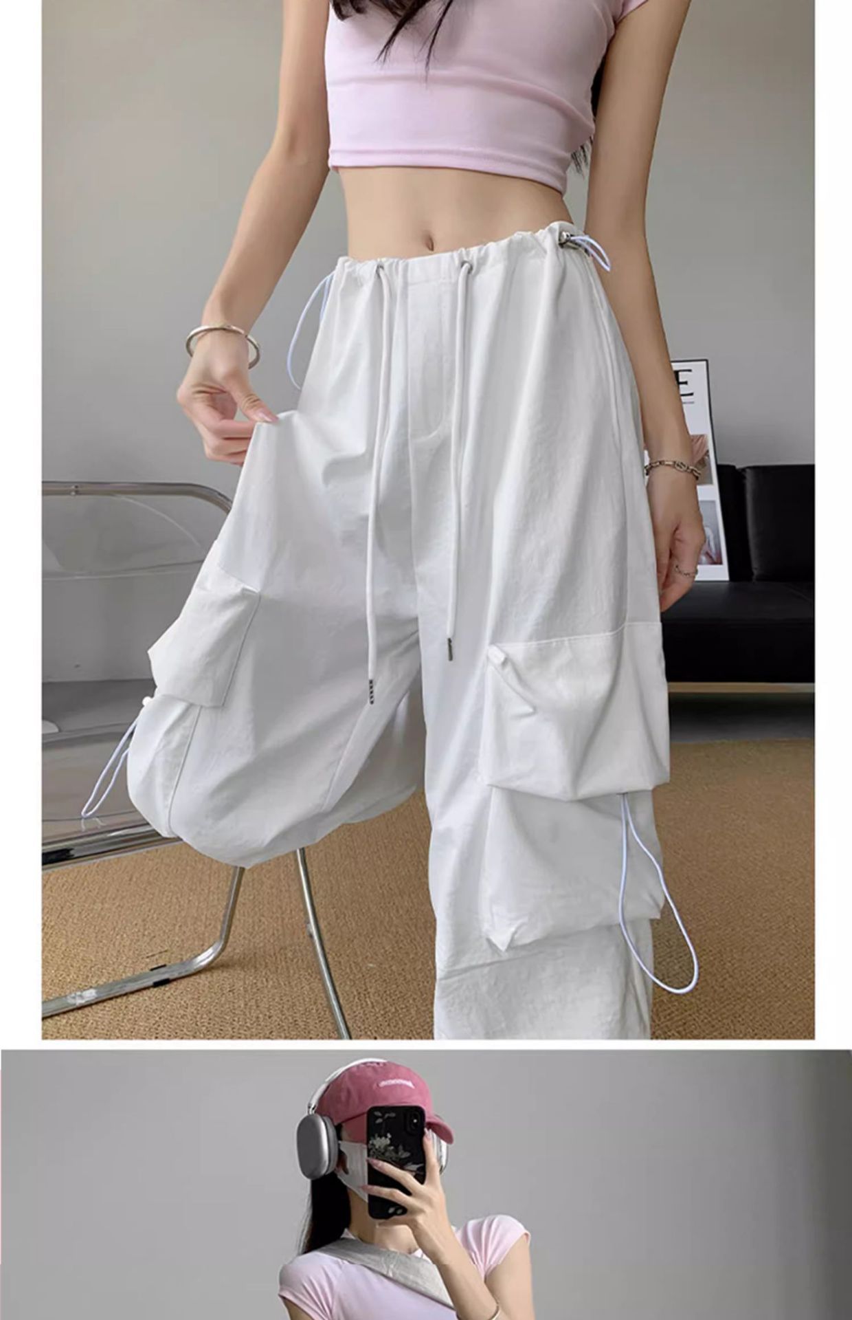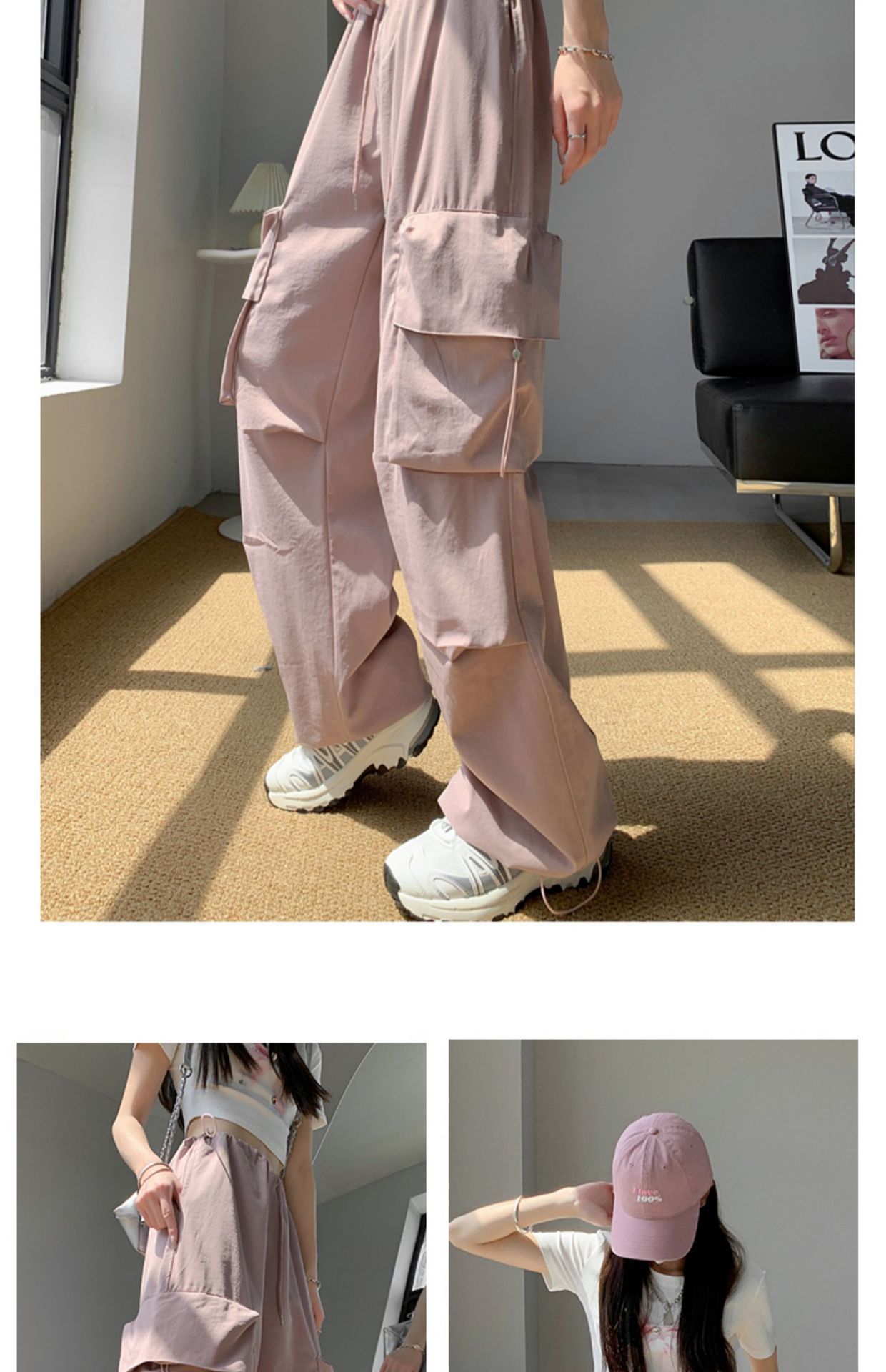 여성을위한 흰색 미국 작업복 여름 얇은 2025 새로운 하이 웨이스트 스트레이트 캐주얼 와이드 레그 속건성 하이킹 스포츠 바지스토어 가기