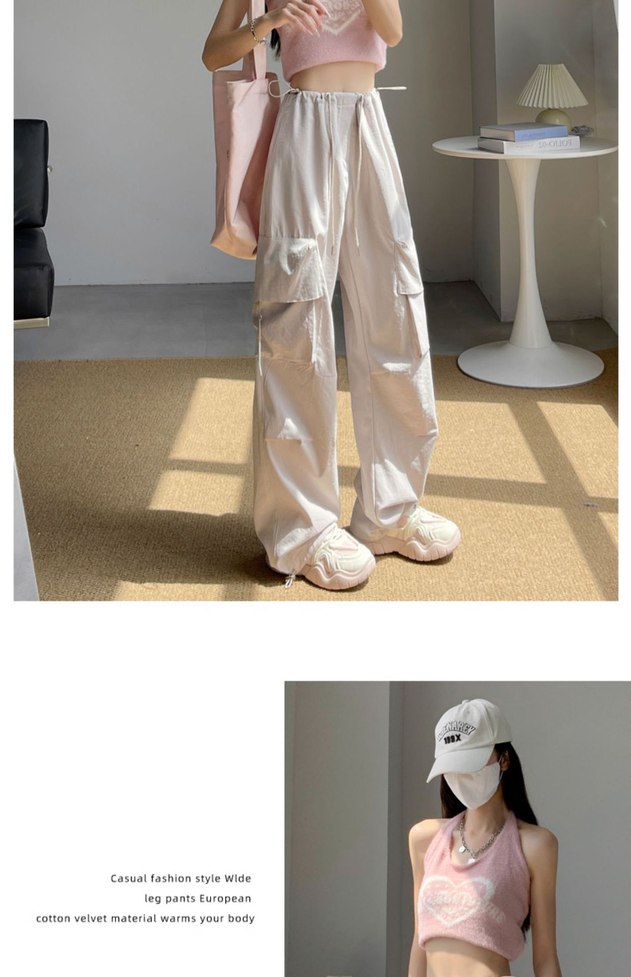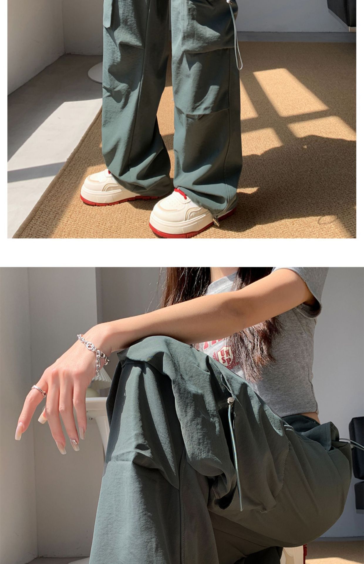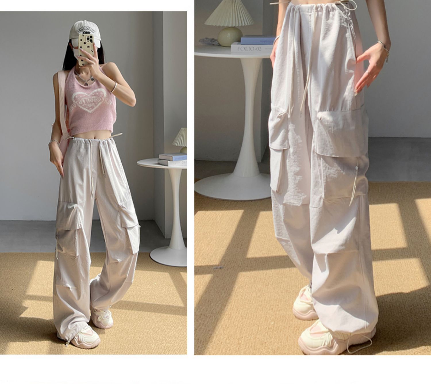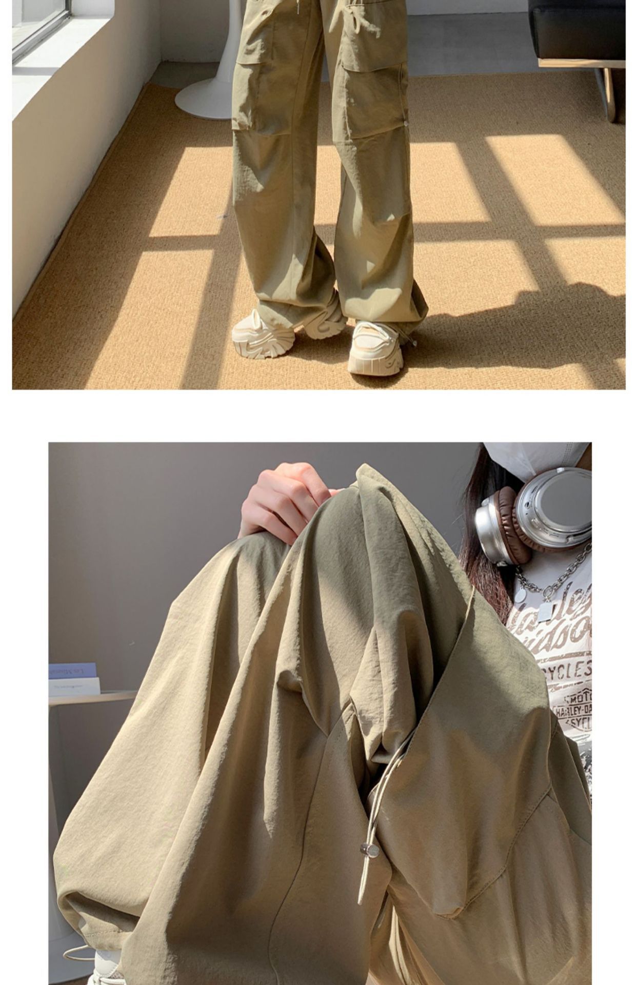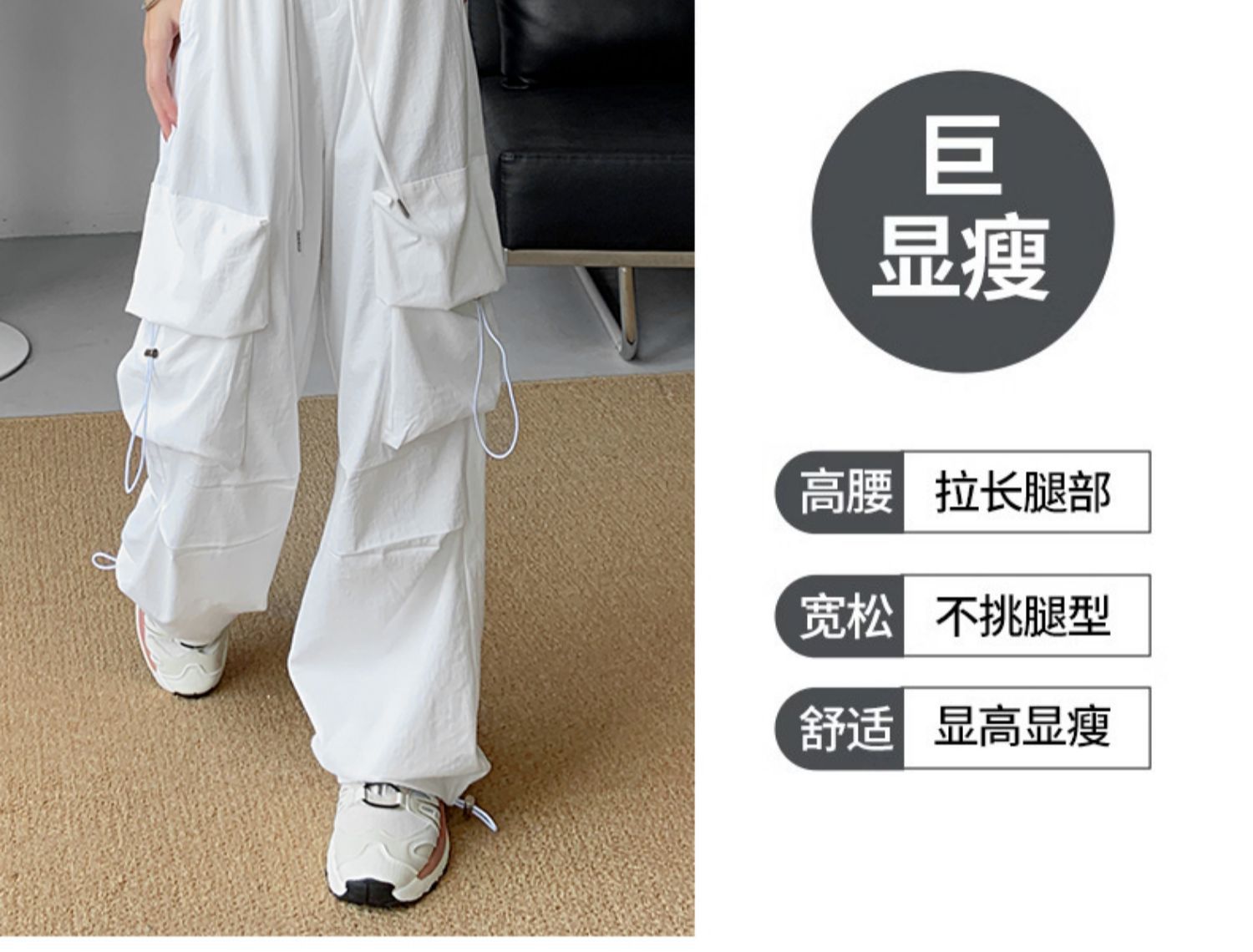 여성을위한 흰색 미국 작업복 여름 얇은 2025 새로운 하이 웨이스트 스트레이트 캐주얼 와이드 레그 속건성 하이킹 스포츠 바지스토어 가기