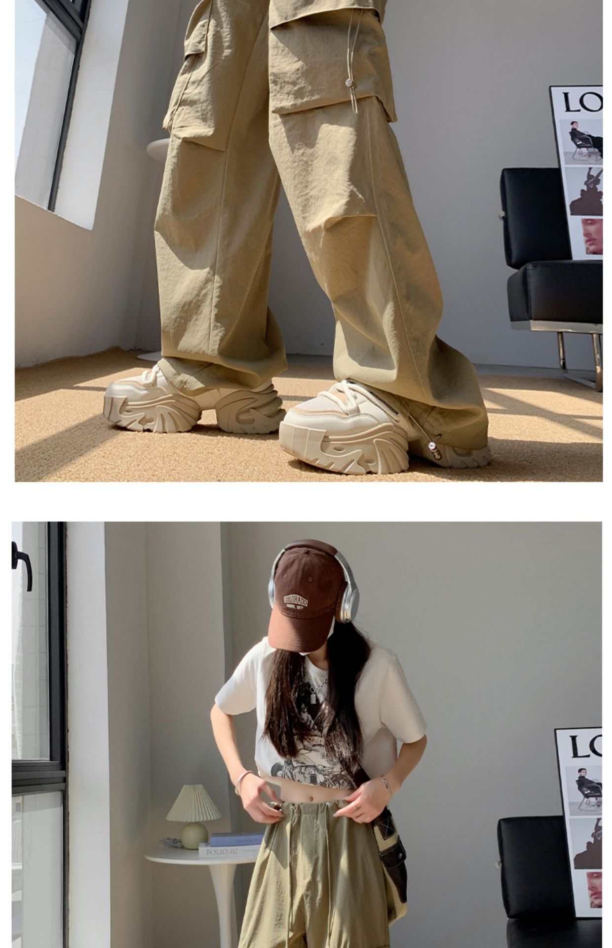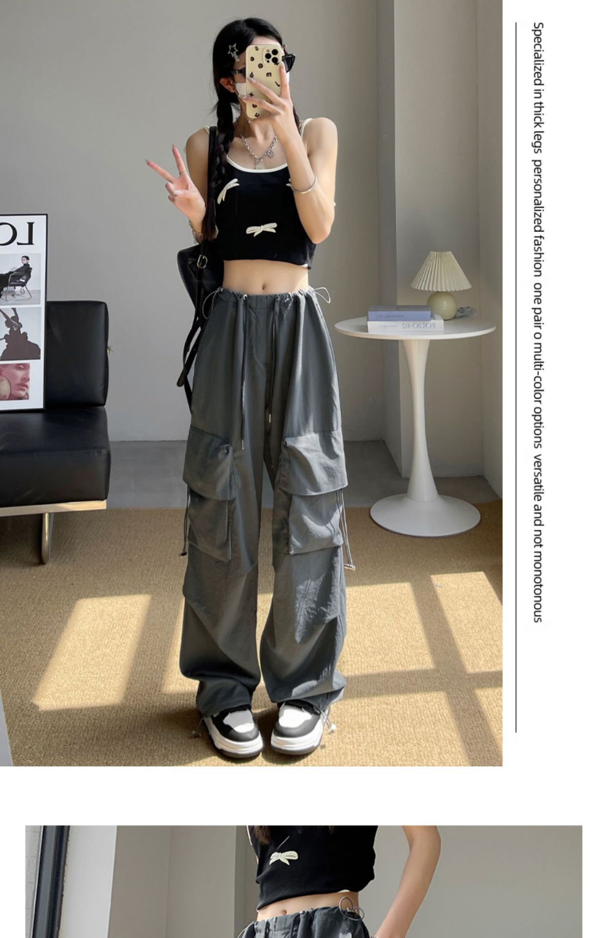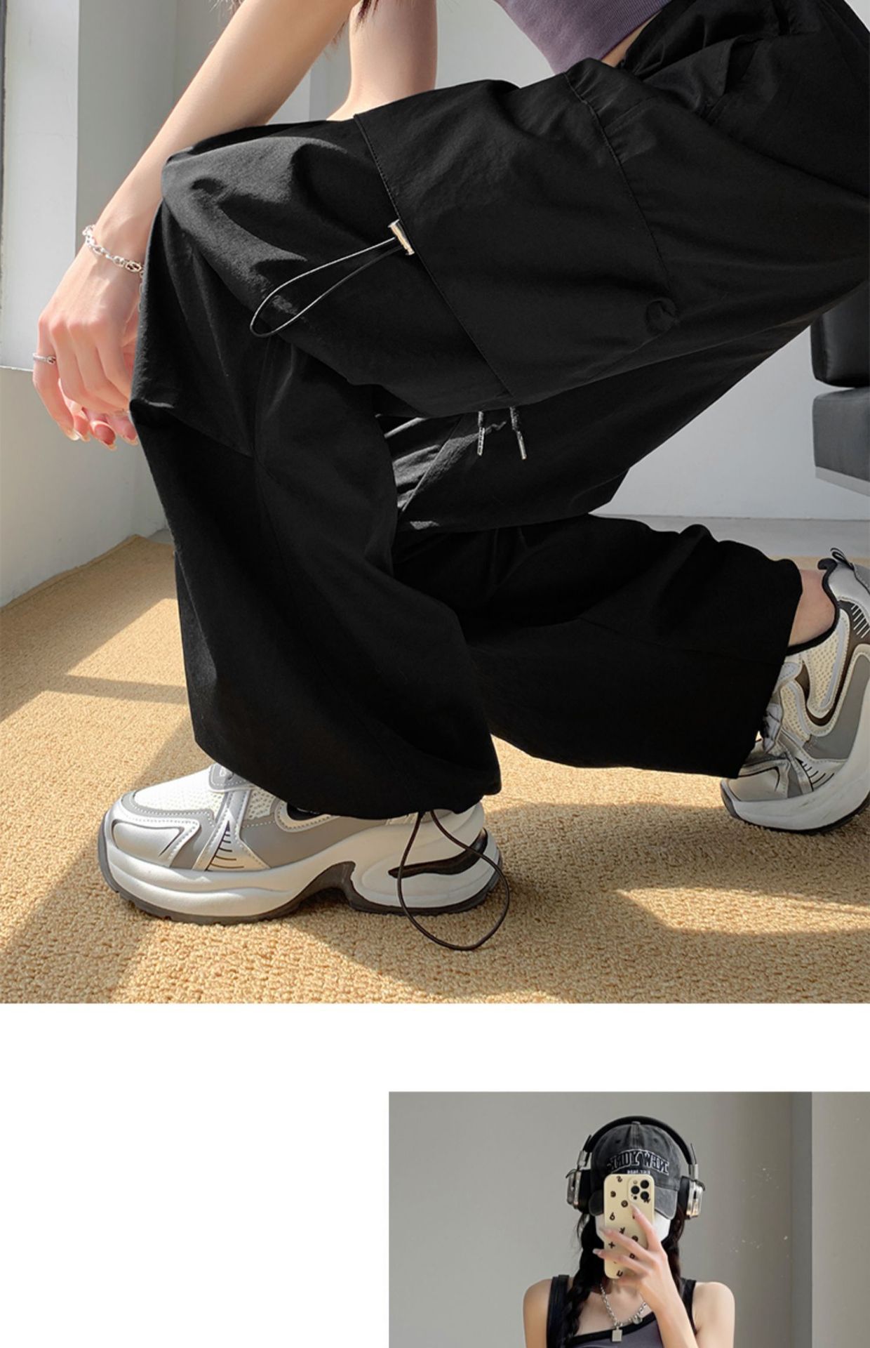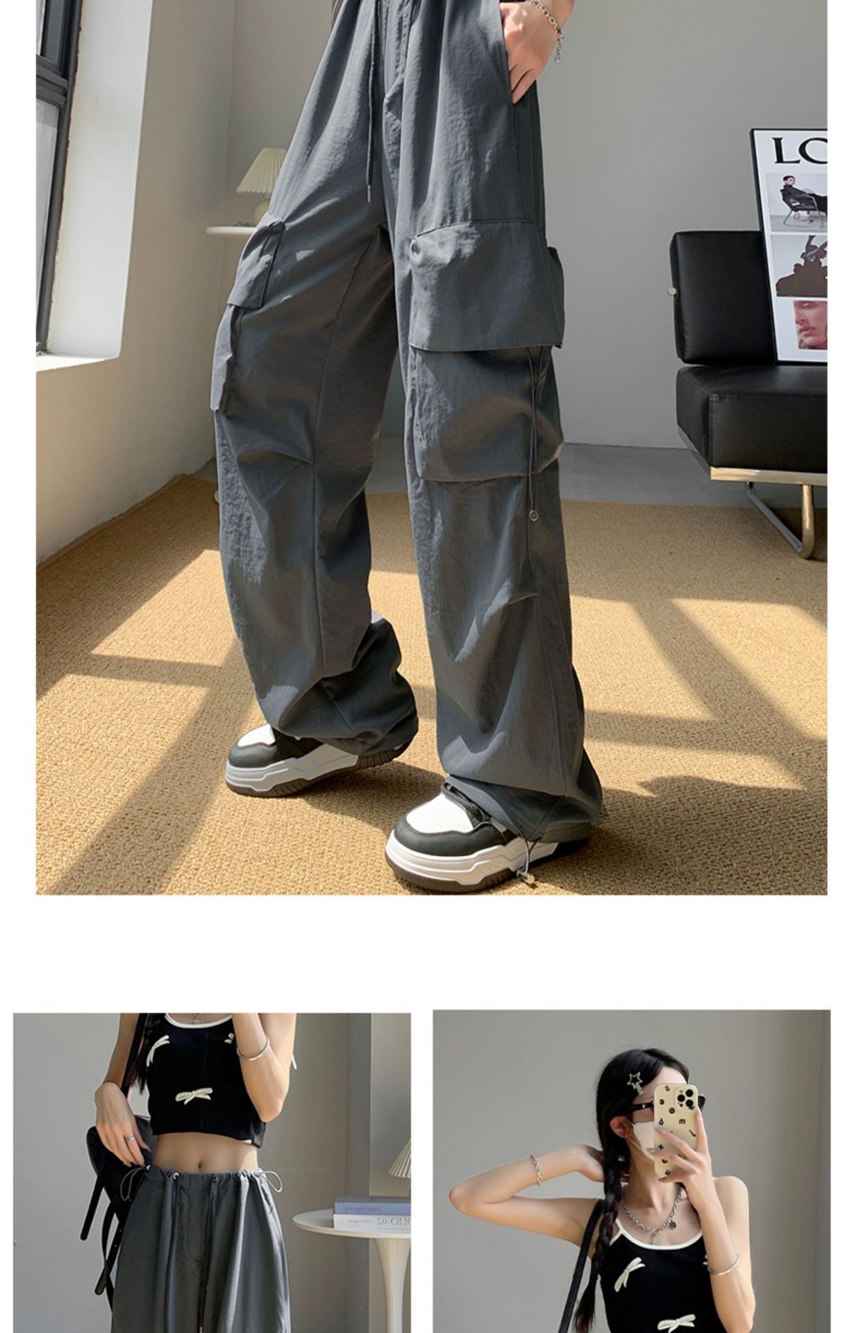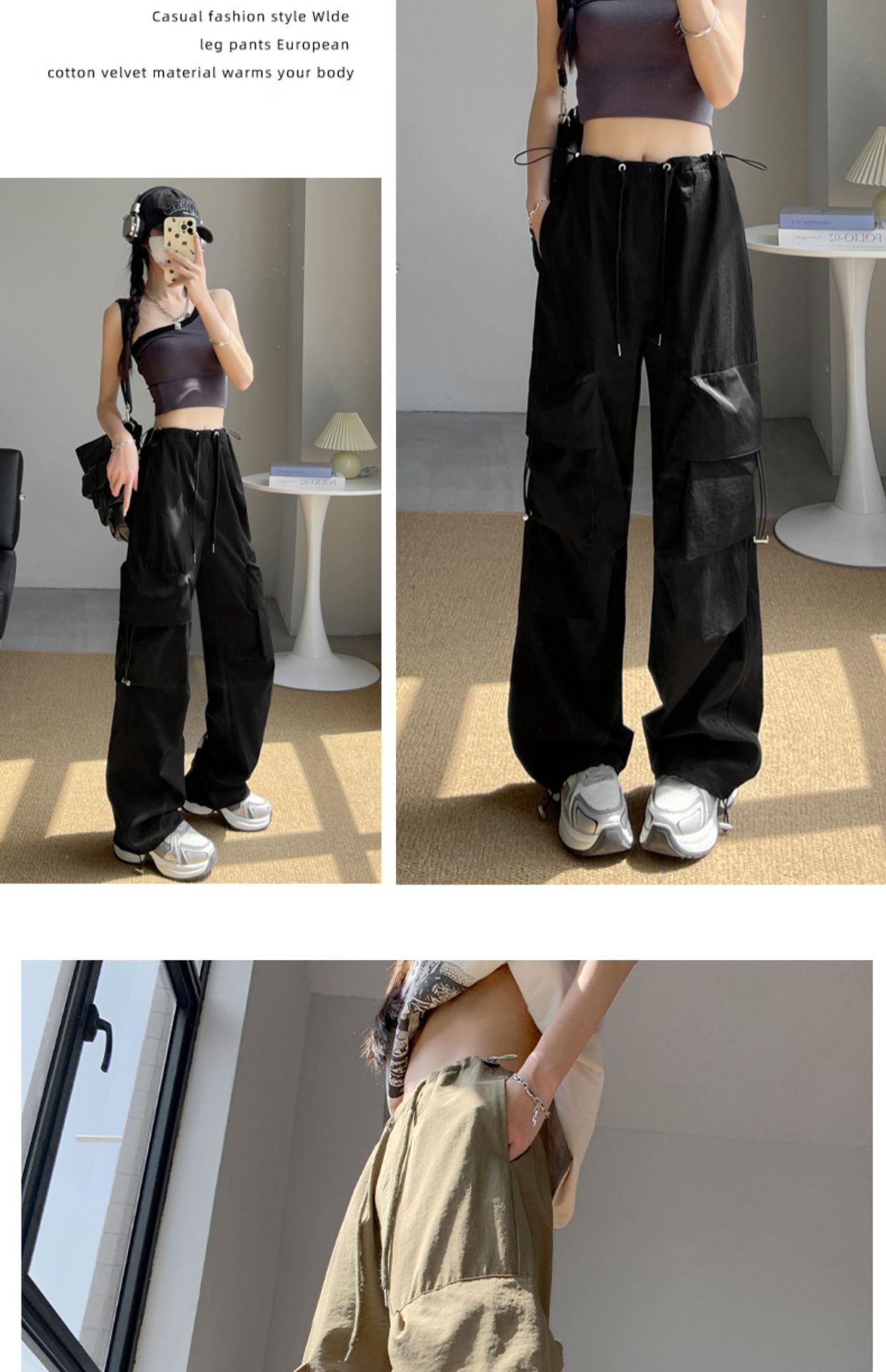 여성을위한 흰색 미국 작업복 여름 얇은 2025 새로운 하이 웨이스트 스트레이트 캐주얼 와이드 레그 속건성 하이킹 스포츠 바지스토어 가기