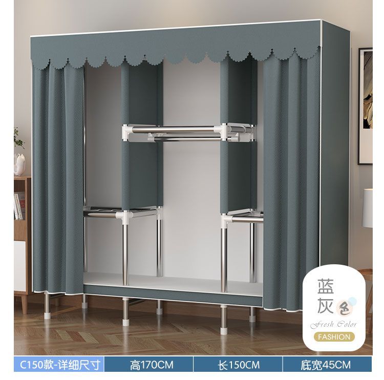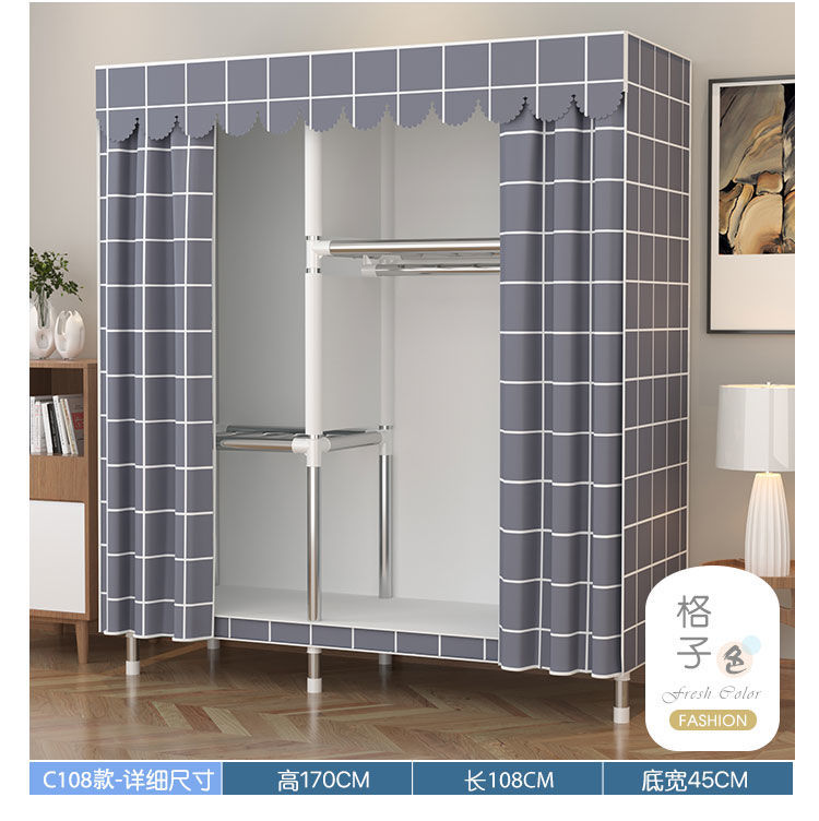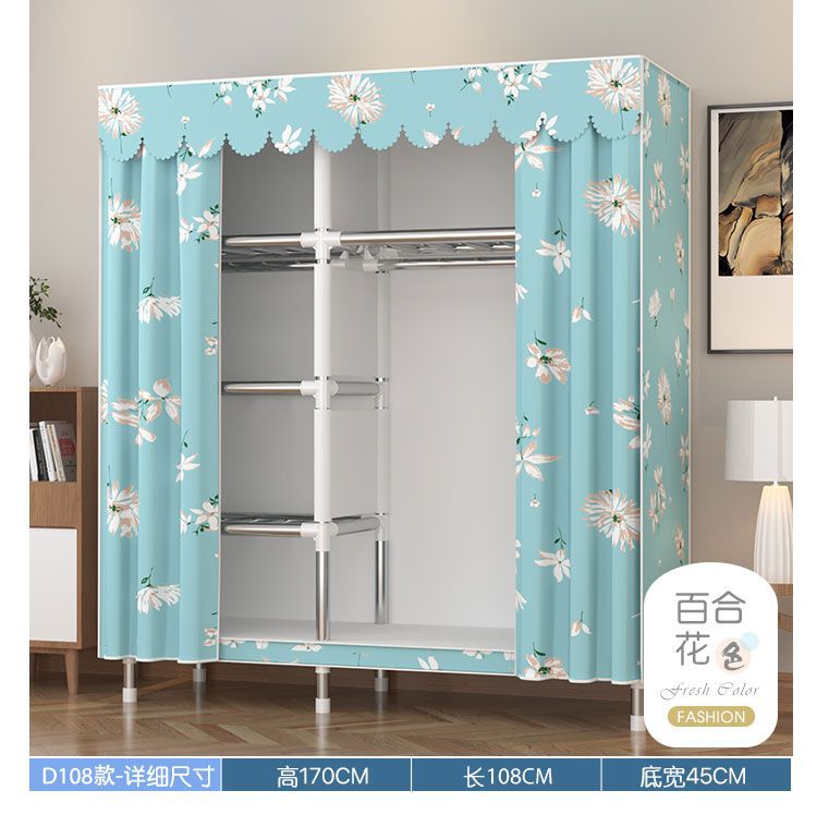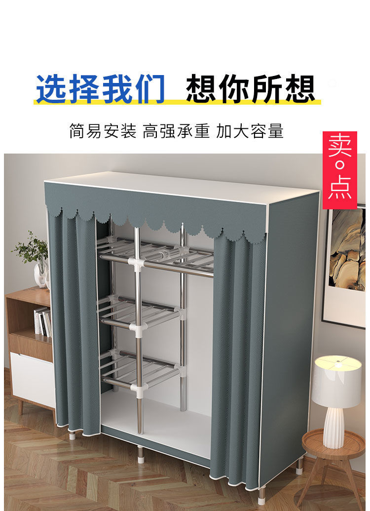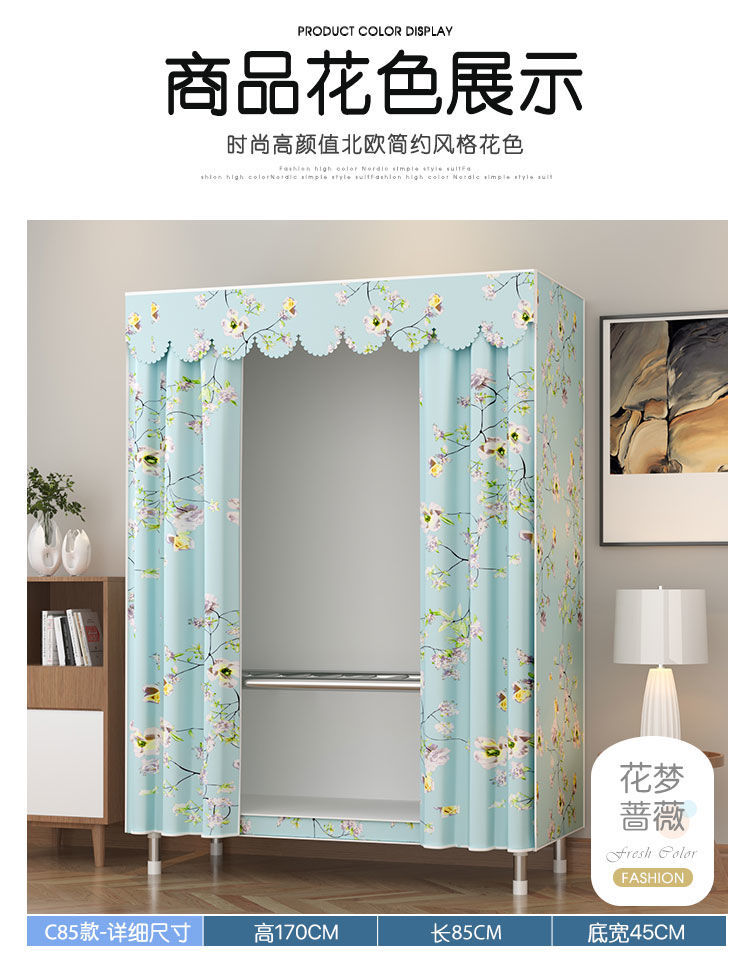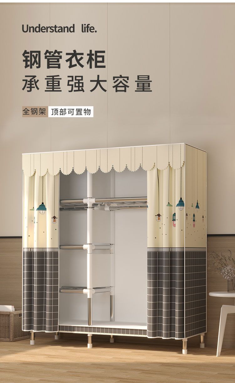 임대 주택용 캐비닛, 옷장, 조립식 수납 선반, 강철 파이프 및 두꺼운 천 옷장, 가정용 침실 간단한 보강