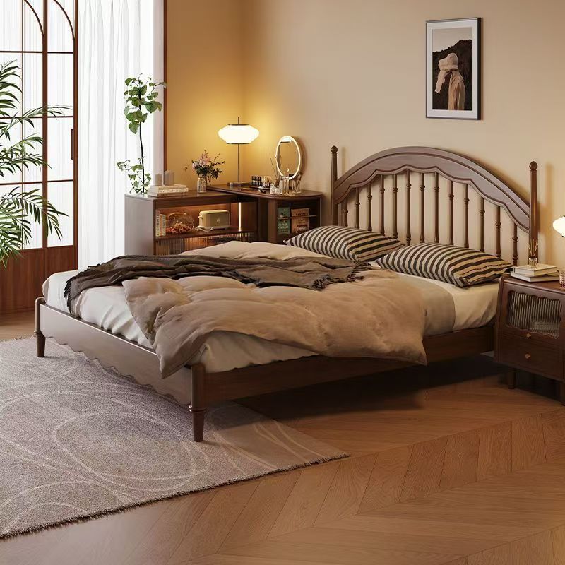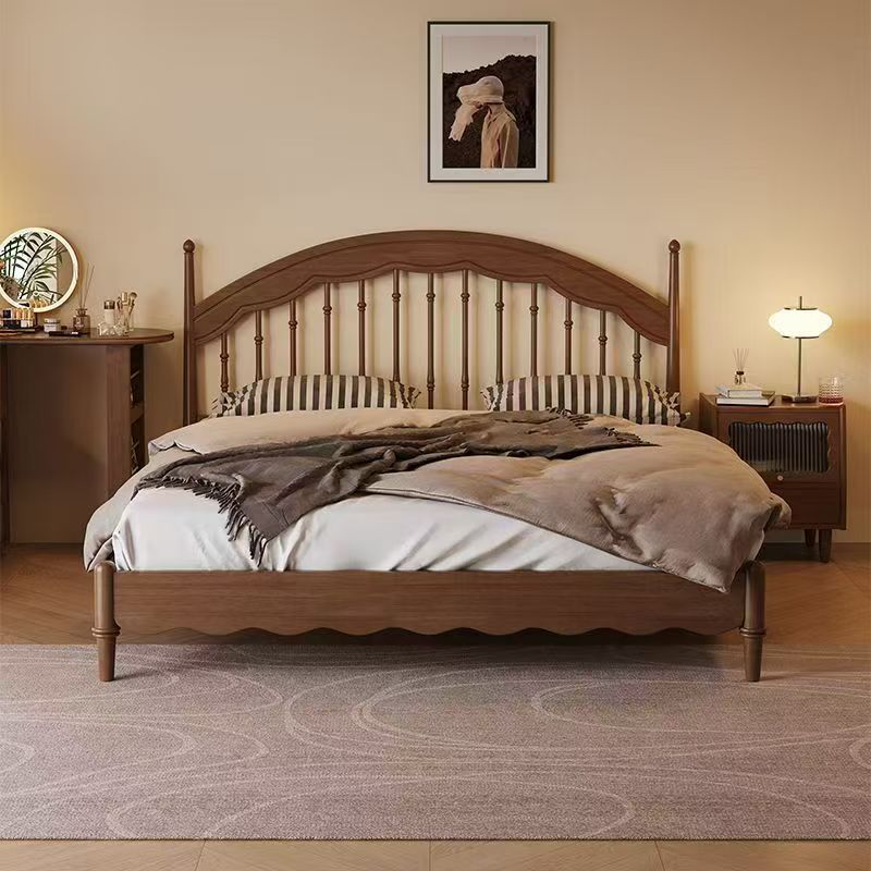 모든 원목 윈저 침대, 중세 스타일 마스터 침실, 아름다운 프랑스 복고풍 더블 침대, 새로운 중국 스타일 호두색 하프 대형 침대
