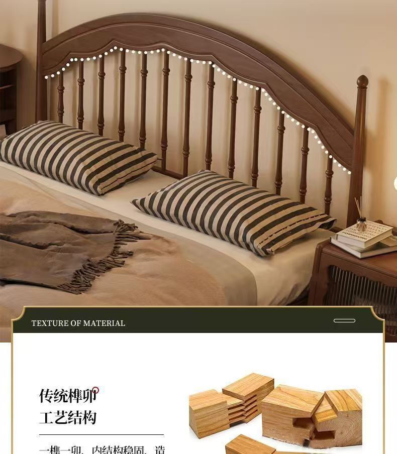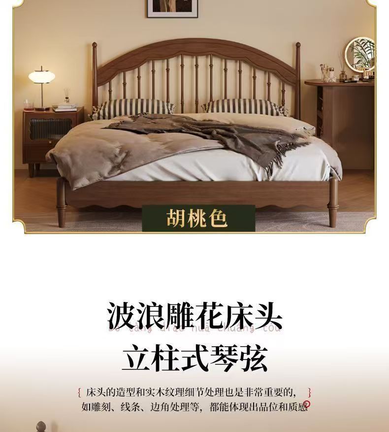 모든 원목 윈저 침대, 중세 스타일 마스터 침실, 아름다운 프랑스 복고풍 더블 침대, 새로운 중국 스타일 호두색 하프 대형 침대스토어 가기