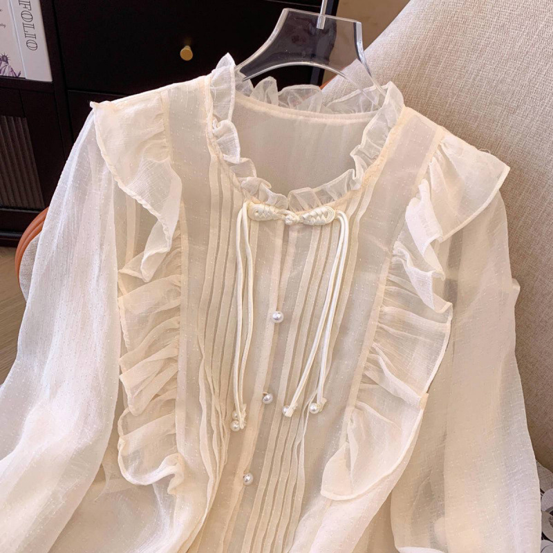 여성을 위한 프렌치 러플 레이스 젠틀 쉬폰 셔츠, 봄, 가을 새로운 디자인, 시크한 셔츠, 서양식 탑스토어 가기