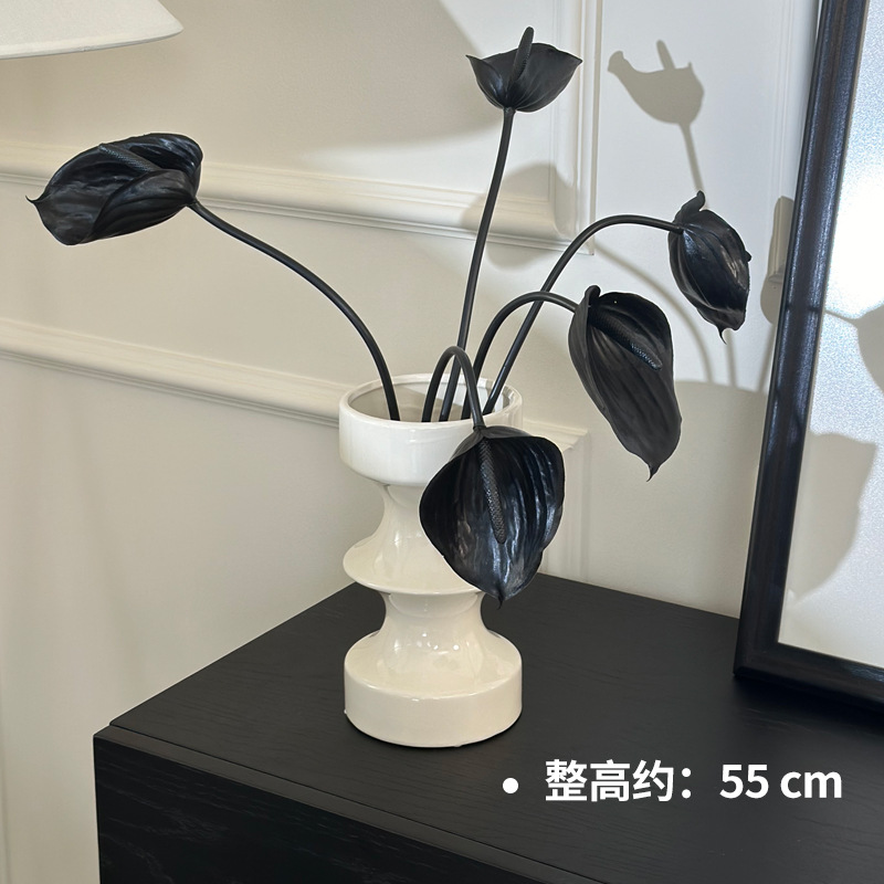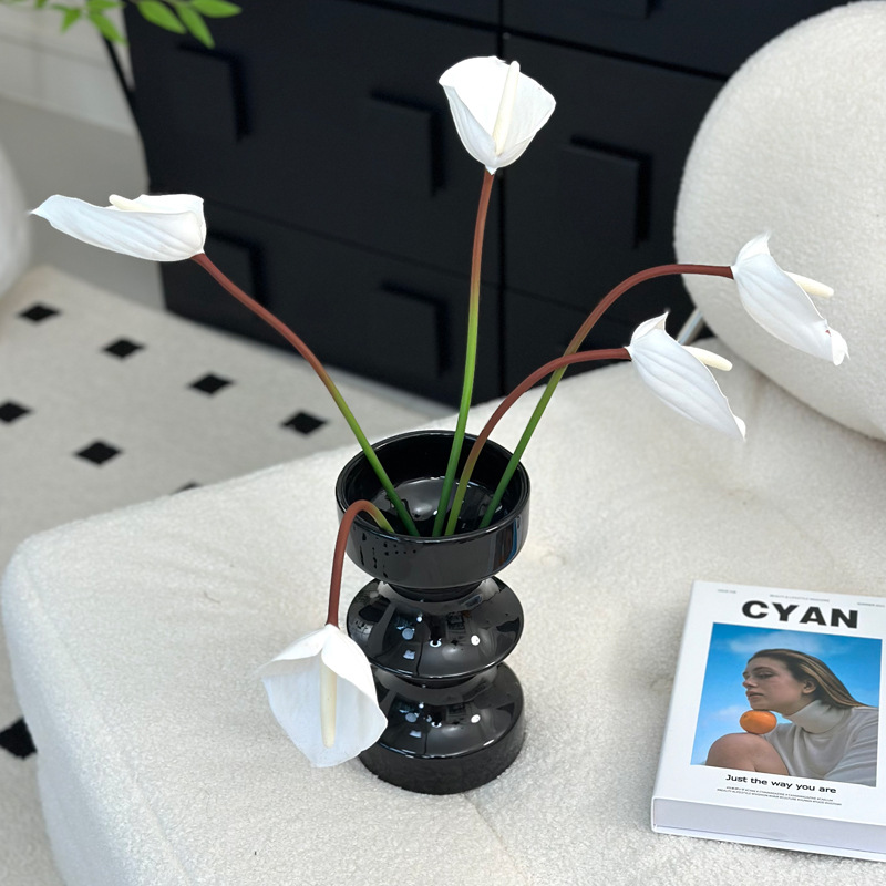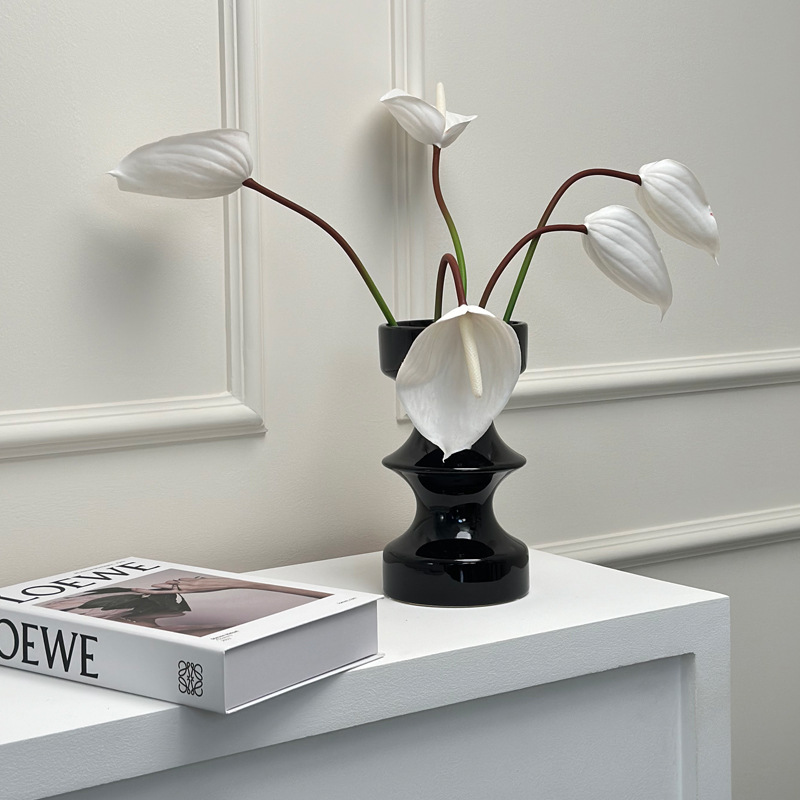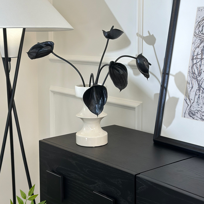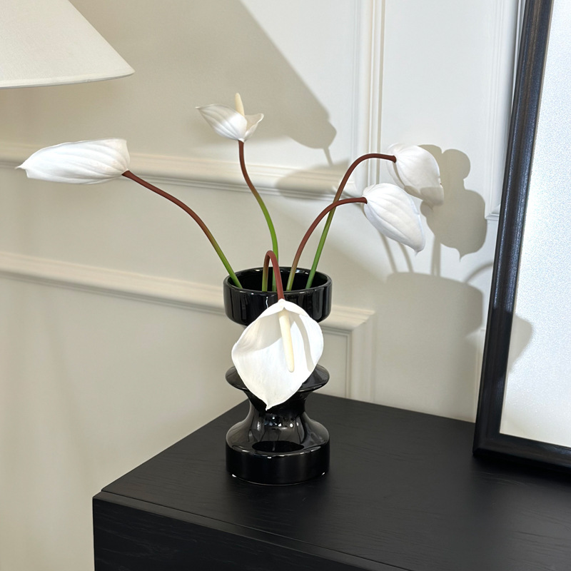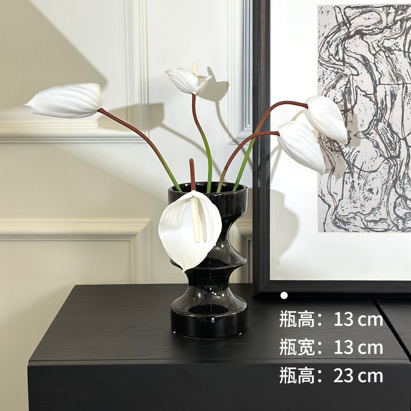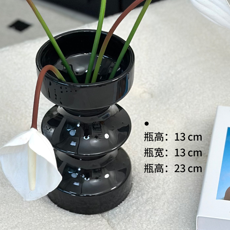 디자인된 중세 검은색 세라믹 꽃병, 가벼운 고급 거실 꽃꽂이, 물 꽃 재배 장치, 새해 장식 장식품스토어 가기