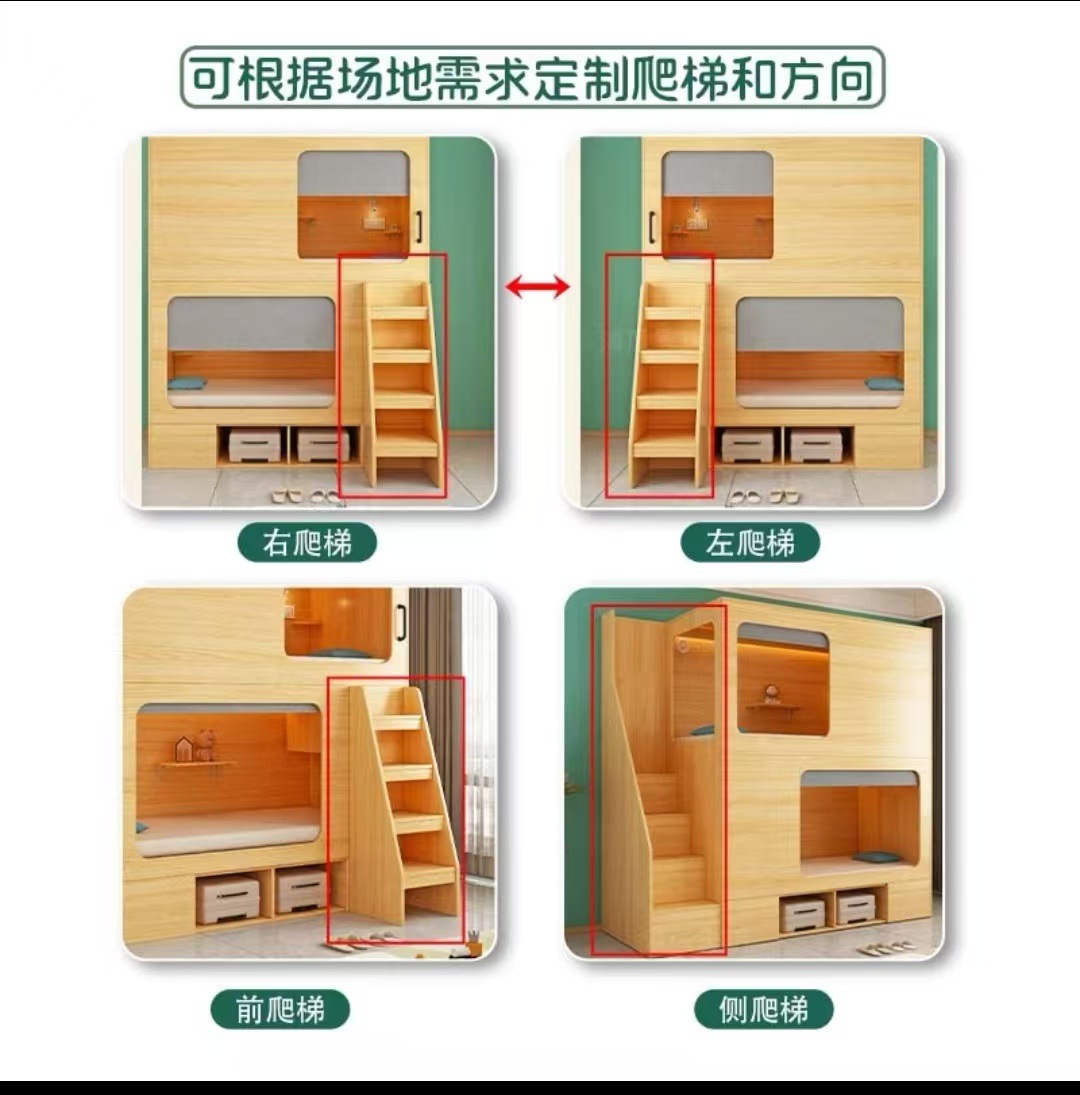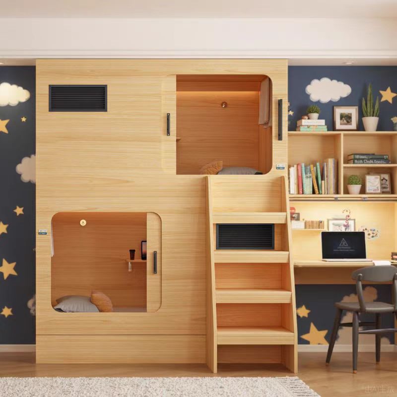 미닫이문 우주캡슐 이층침대 성인기숙사 하이앤로우 침대 청소원 e스포츠 호텔 이층침대 고급 아파트 침대