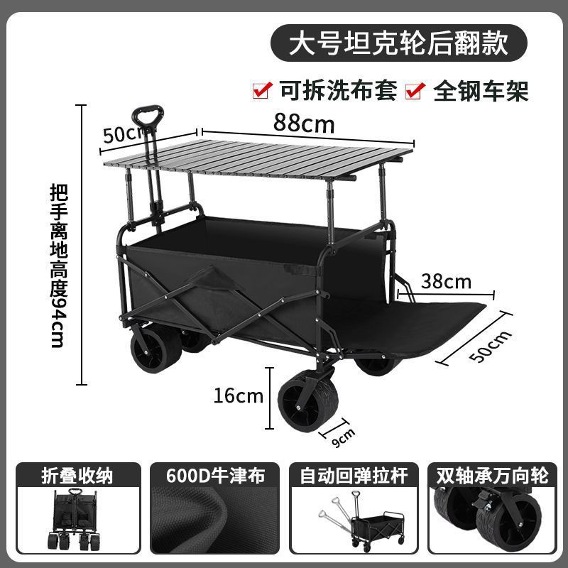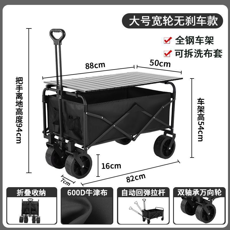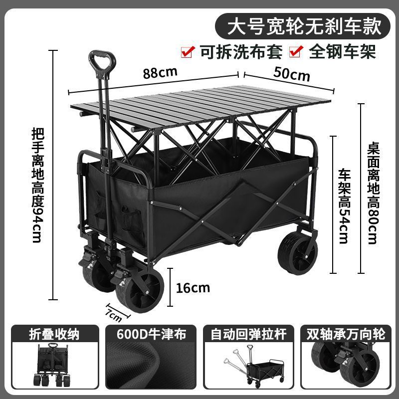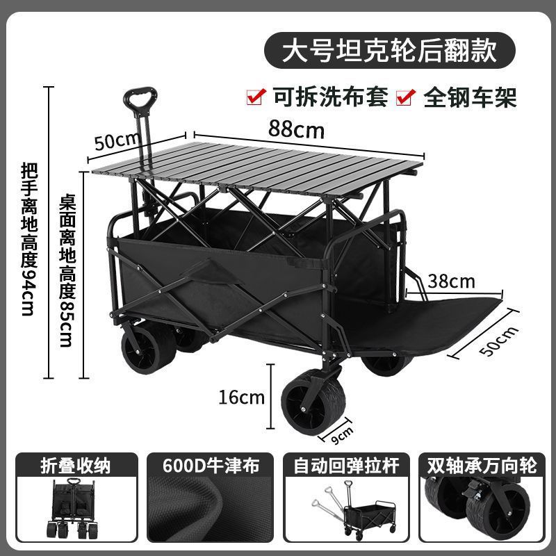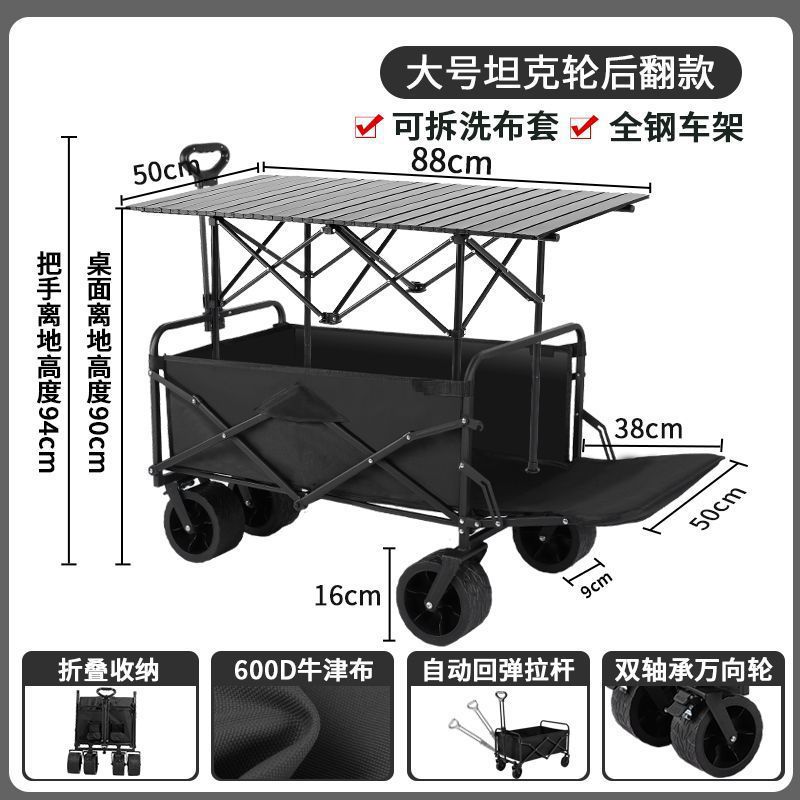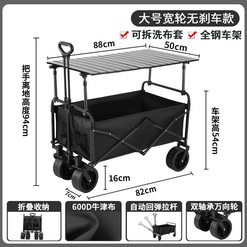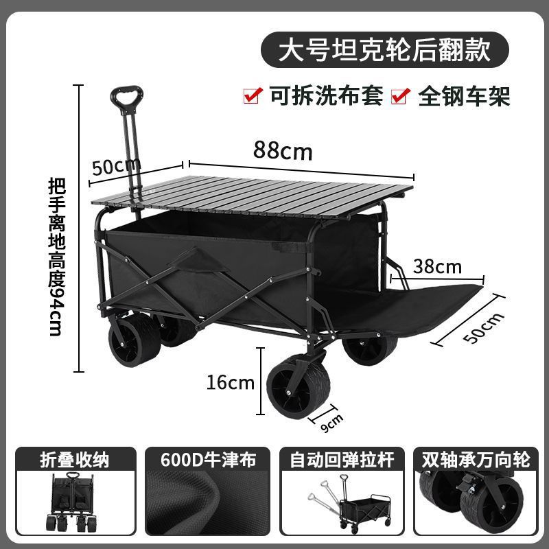• 캠퍼밴 + 리프팅 로드 + 테이블 - 뒤로 젖힐 수 있는 브레이크가 있는 대형 와이드 휠(검은색)