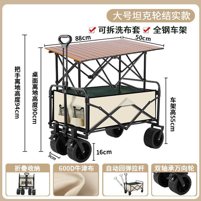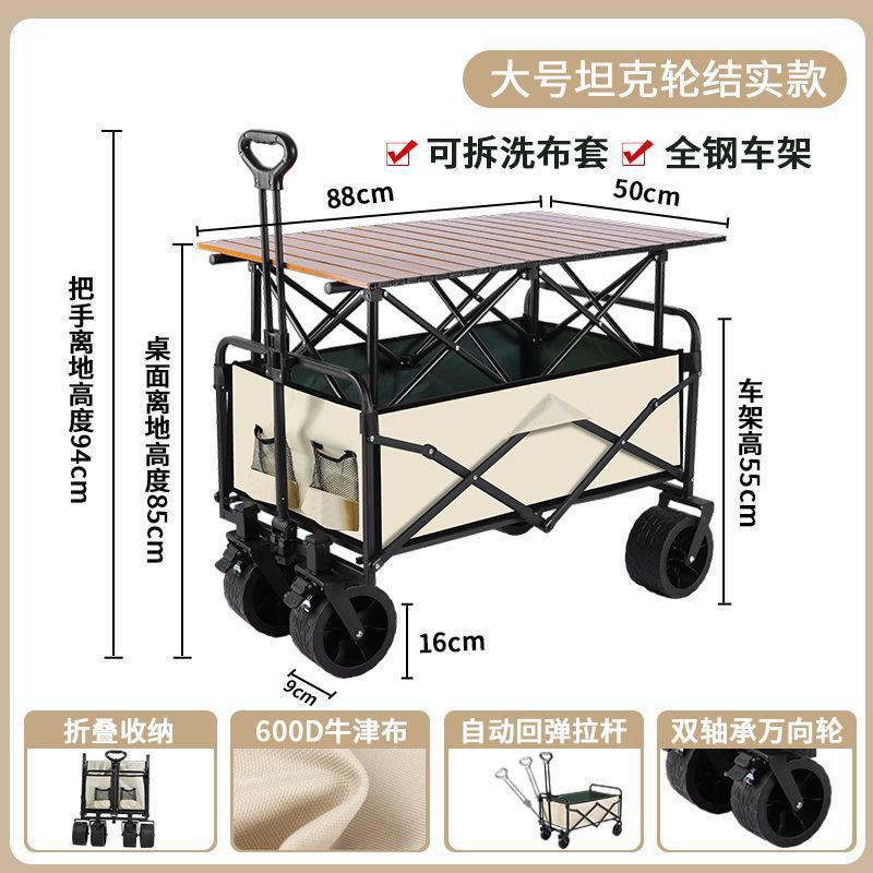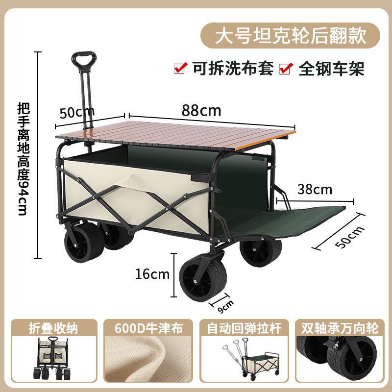 • 캠퍼밴 + 리프팅 로드 + 테이블 - 뒤로 젖힐 수 있는 브레이크가 있는 대형 와이드 휠(카키색)