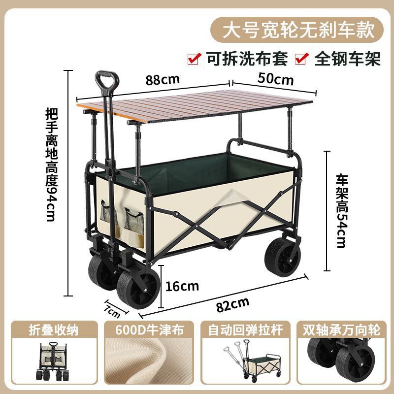 • 캠퍼밴 + 리프팅로드 + 테이블 - 브레이크 없는 대형 와이드 휠(카키)