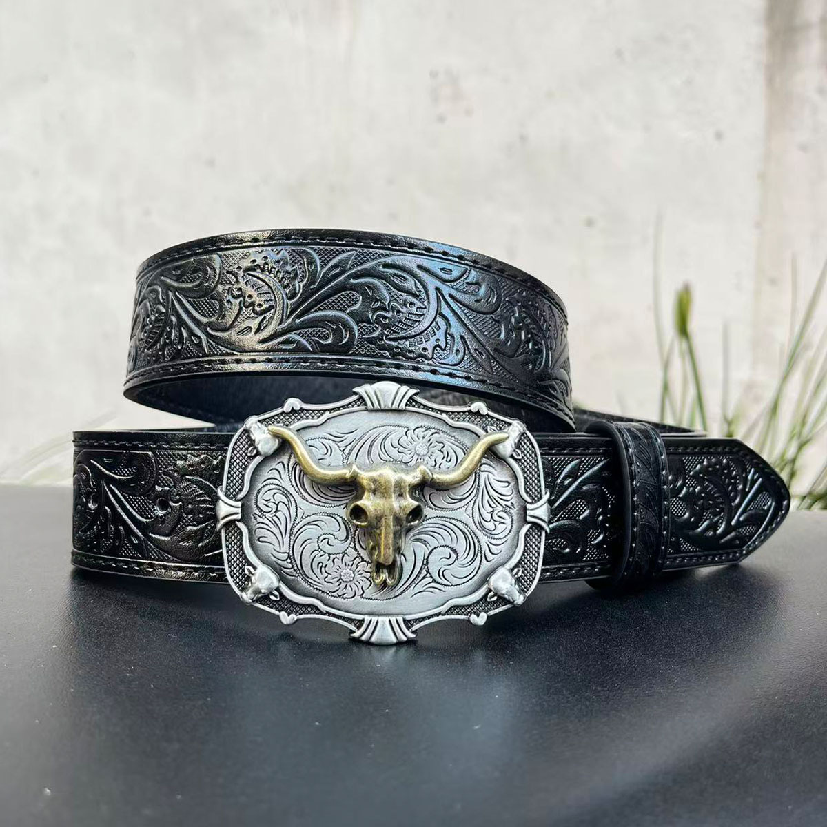 크로스보더 웨스턴 데님 레트로 소머리 남성용 벨트 엠보싱 아메리칸 트렌디 청바지 벨트 공장 스팟 배치스토어 가기