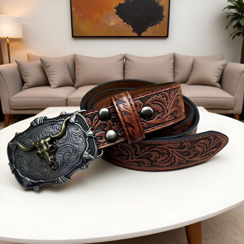 크로스보더 웨스턴 데님 레트로 소머리 남성용 벨트 엠보싱 아메리칸 트렌디 청바지 벨트 공장 스팟 배치