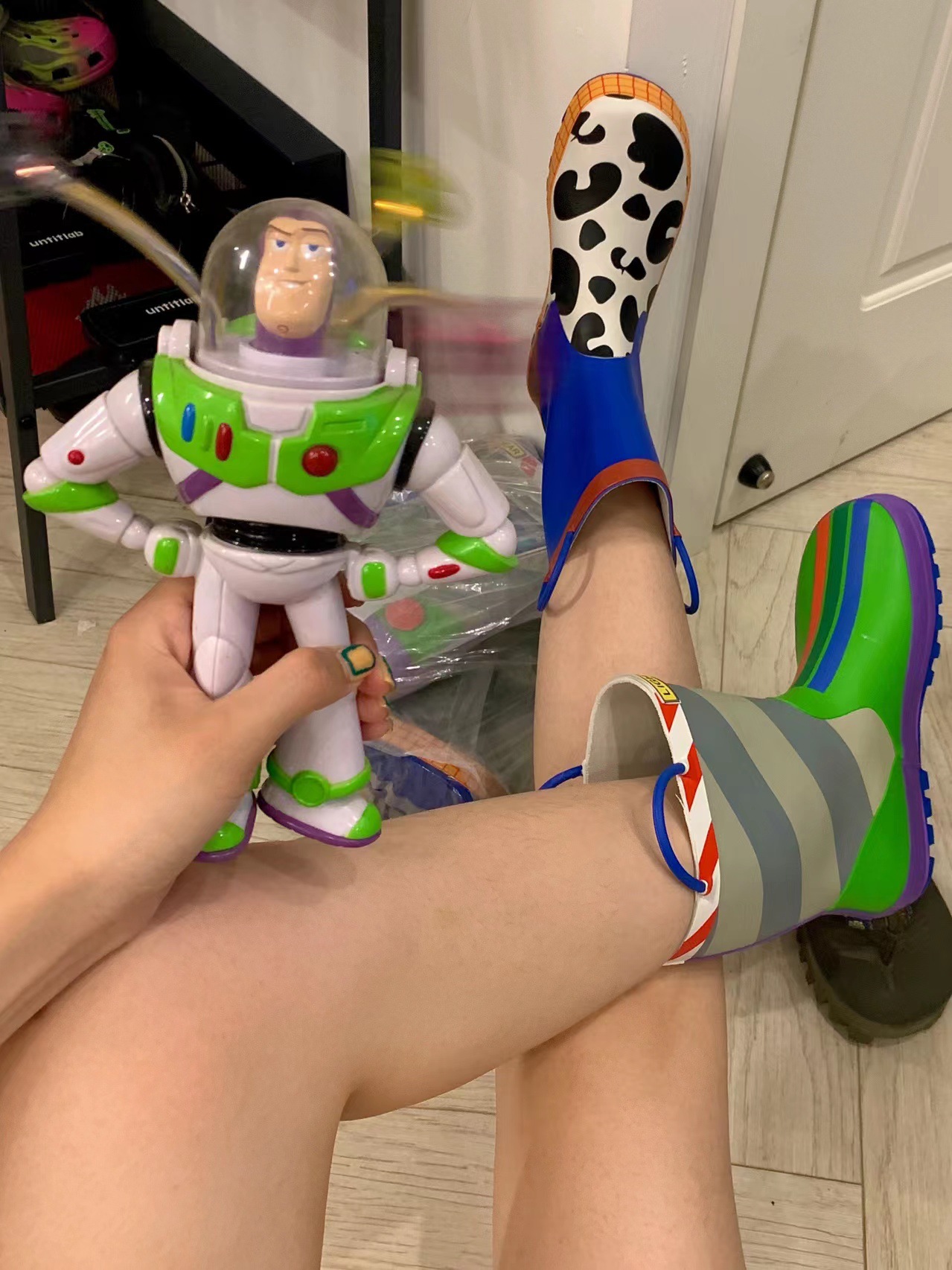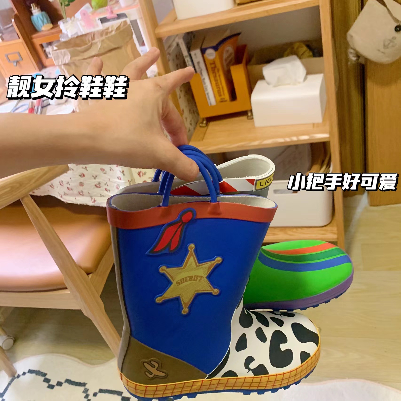 버즈 라이트이어 레인부츠, 여성용 종아리 중간 레인부츠, 멋지고 패셔너블한 아우터, 귀여운 일본식 대외 무역 통근 방수 및 미끄럼 방지스토어 가기